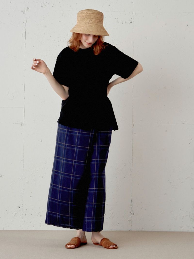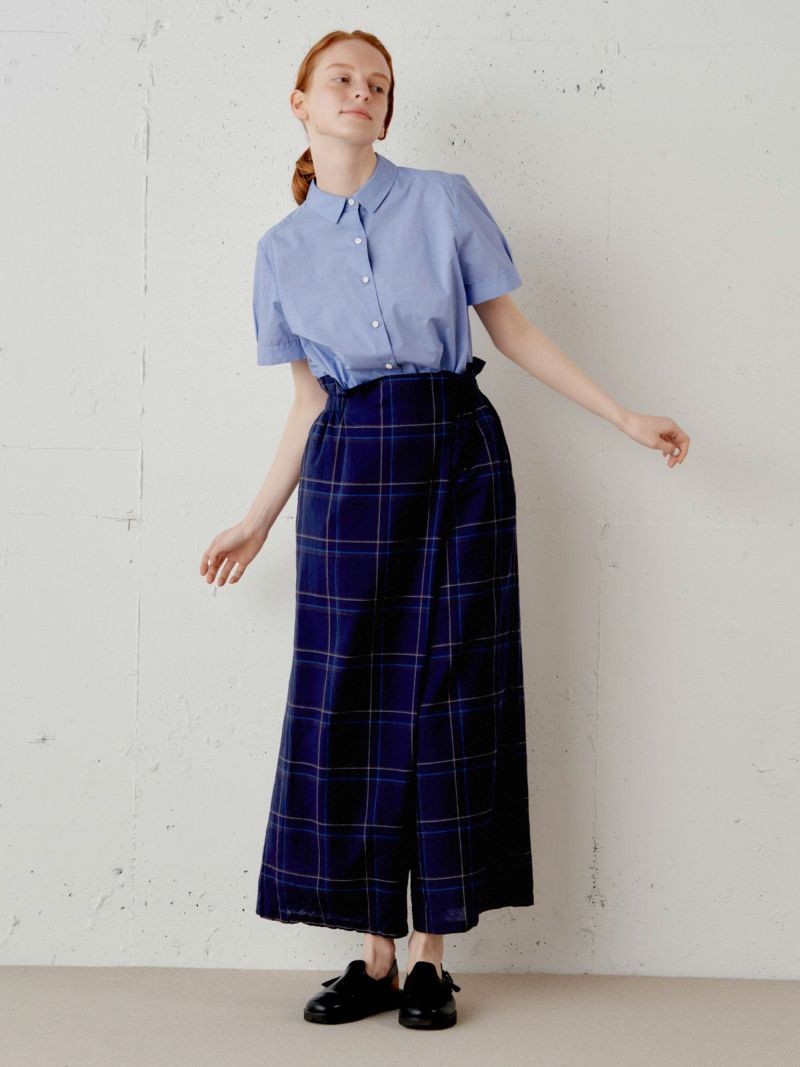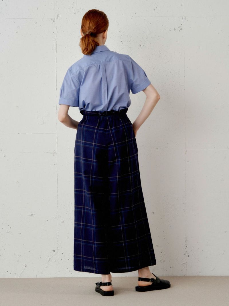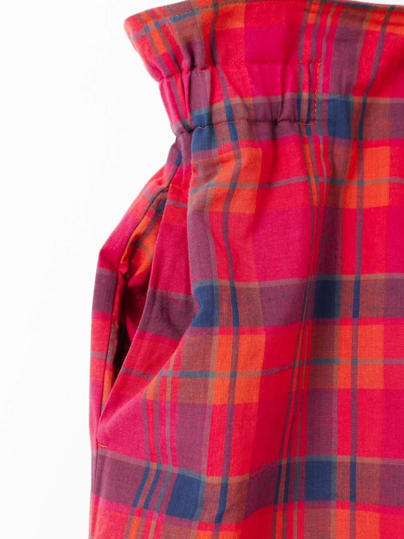 オーガニックコットンのマドラスチェックシリーズでもあるラップライクパンツです。落ち着いた配色のチェック柄でナチュラルなリゾート感を演出。スカート見えする巻きパンツとなっています。ウエスト2か所にボタン、後ろはゴムのラクに穿いていただけるデザインに仕上がっています。カジュアルにTシャツで合わせても素敵です。印象の異なるレッドとネイビーの2色展開。