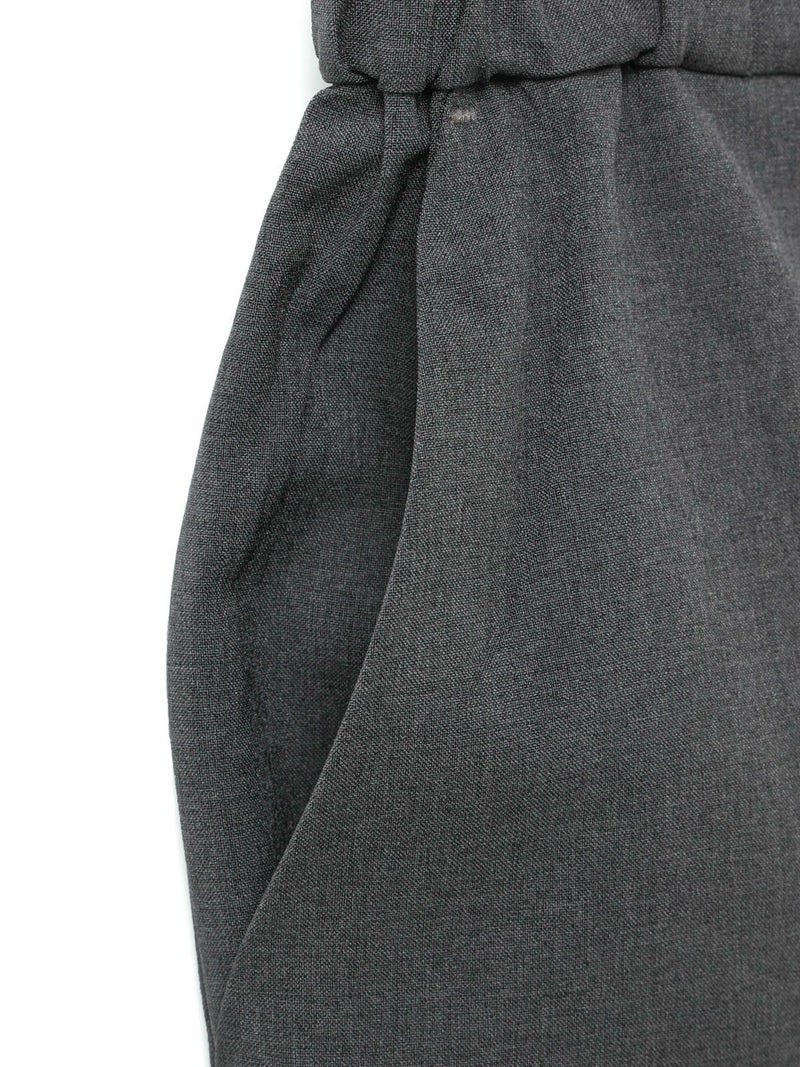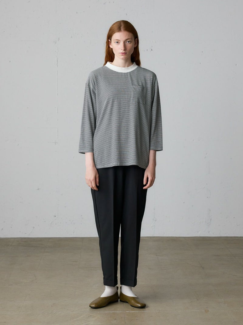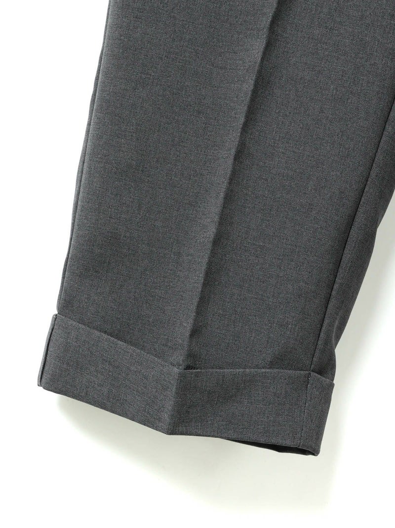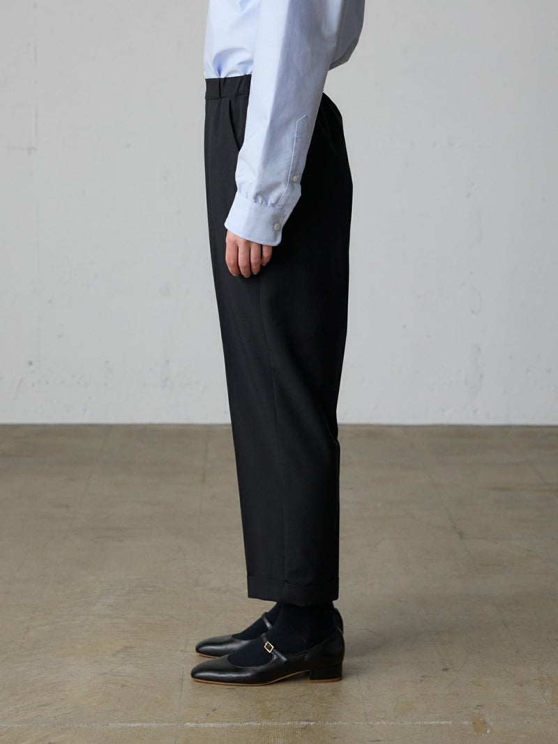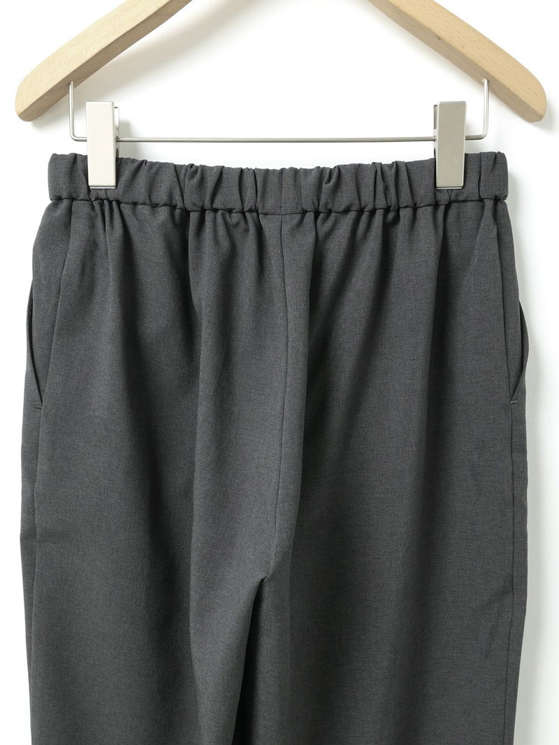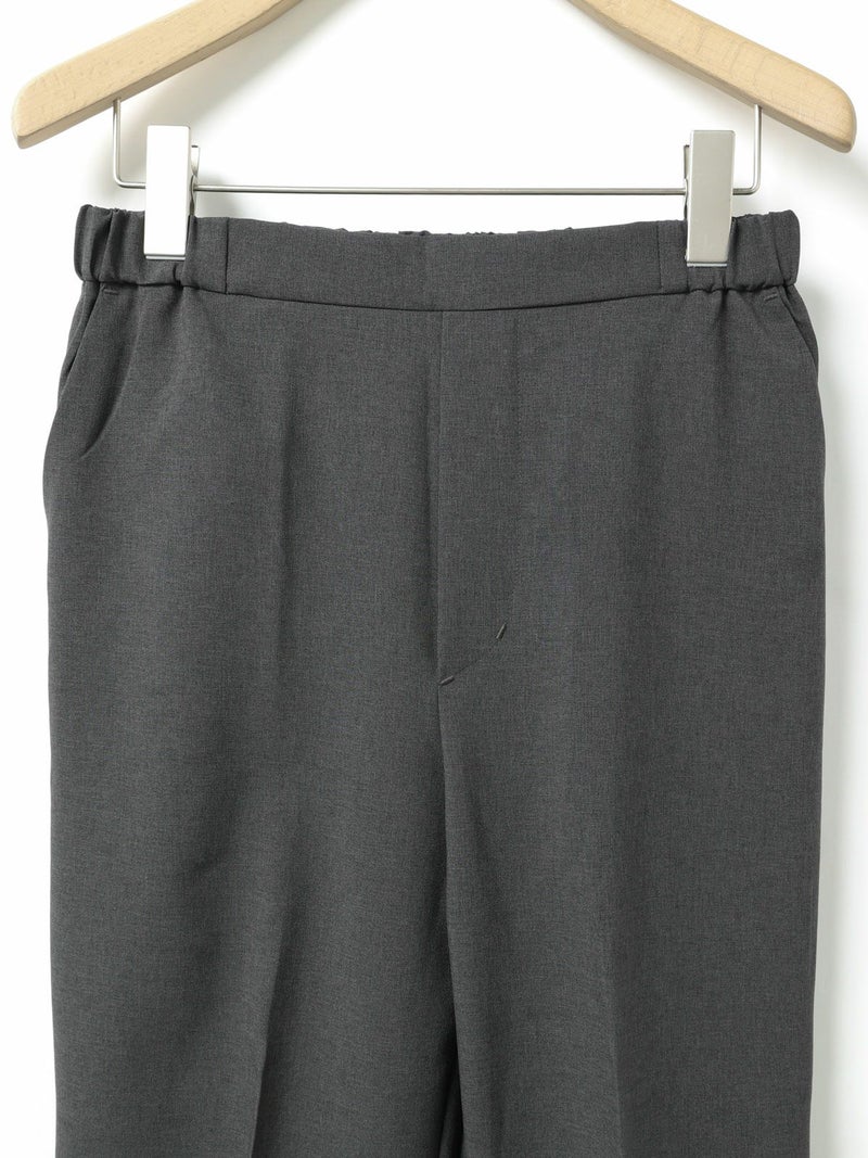 リサイクルポリエステルを100%使用したセンタープレスストレートパンツです。梳毛ライクで落ち感のある生地が特徴。洗ってもシワになりにくいのがポイント(※手洗い可能)。センタープレスの入ったストレートパンツでスッキリときれい目カジュアルなコーディネートを演出します。ウエストはバックゴム仕様になっており、裾がダブルになったデザイン仕上げ。ベーシックな3色展開に絞っており、着回しもしやすくどなたにも穿きやすいストレートパンツを提案した1枚です。 同シリーズ3-769984/ワイドスラックスパンツも展開。