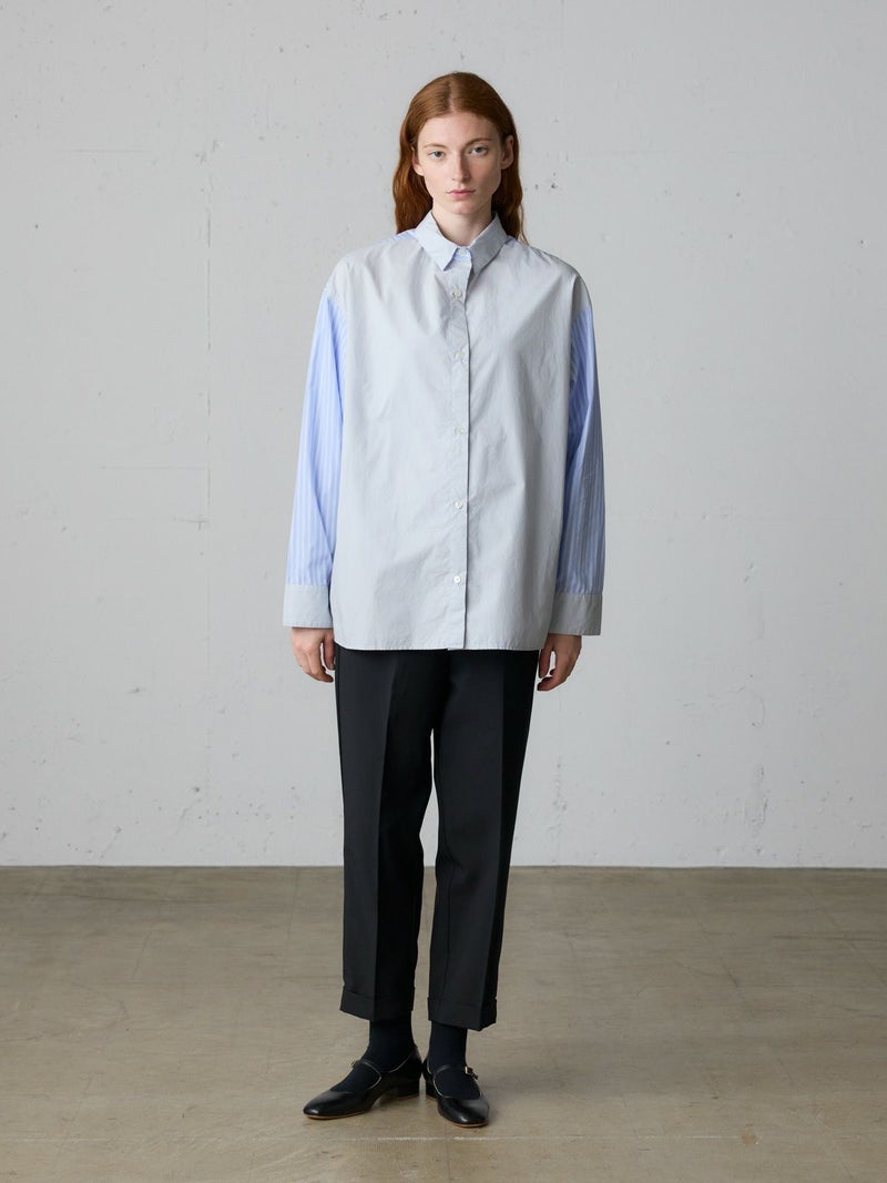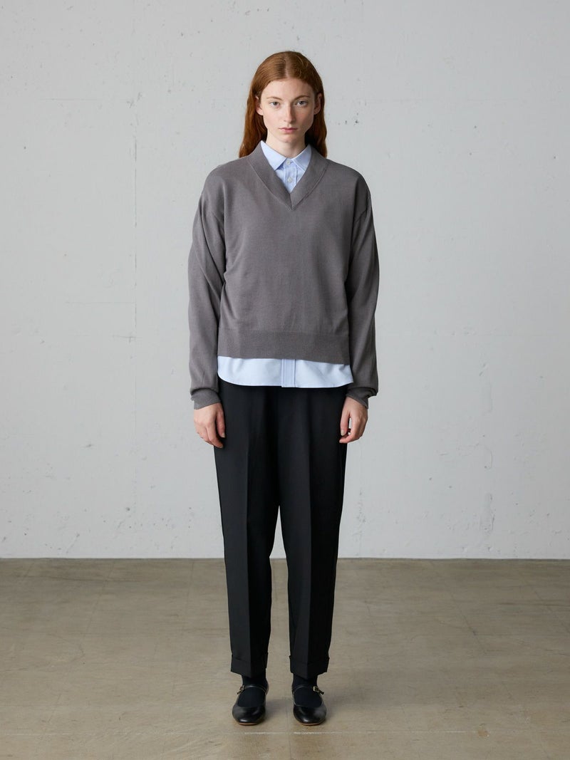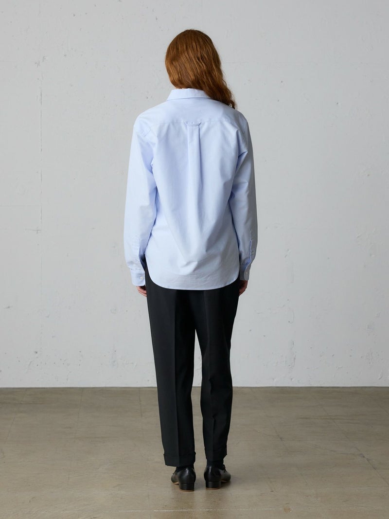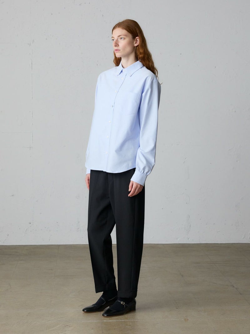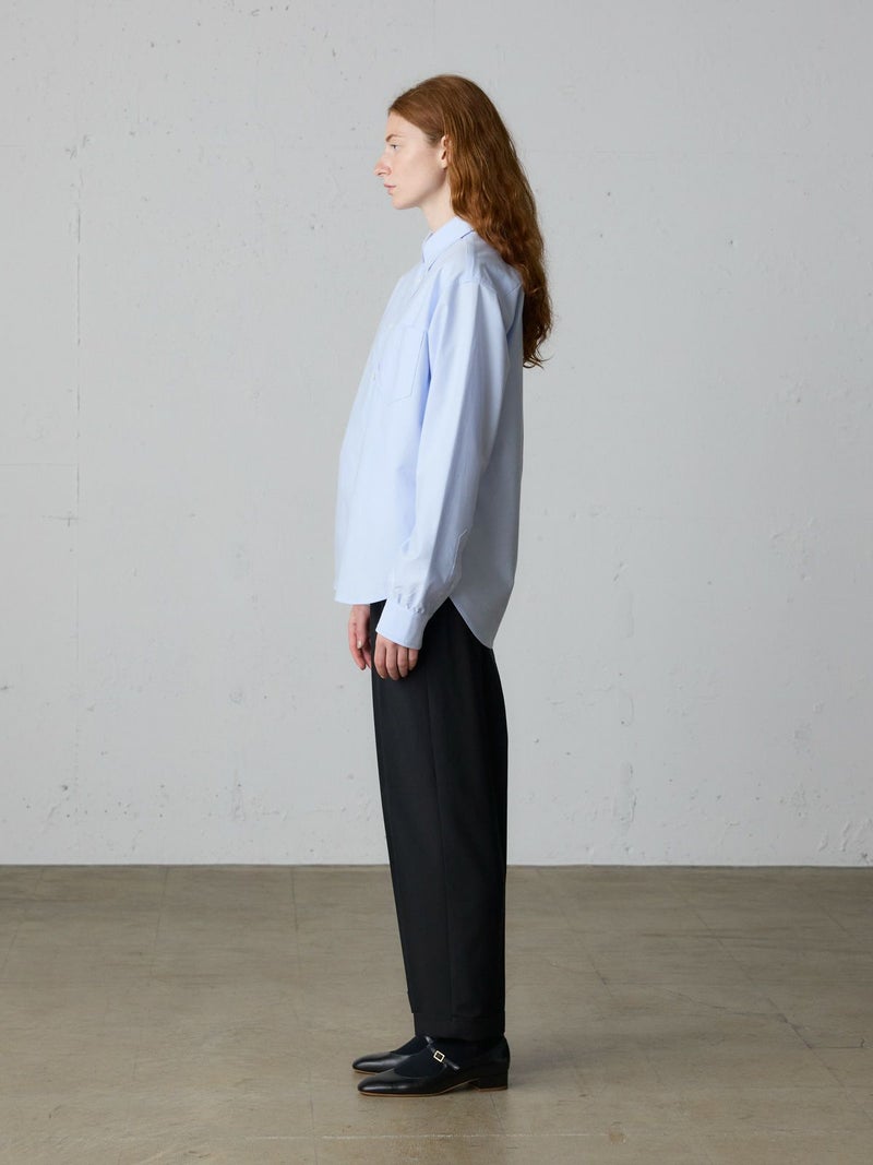 リサイクルポリエステルを100%使用したセンタープレスストレートパンツです。梳毛ライクで落ち感のある生地が特徴。洗ってもシワになりにくいのがポイント(※手洗い可能)。センタープレスの入ったストレートパンツでスッキリときれい目カジュアルなコーディネートを演出します。ウエストはバックゴム仕様になっており、裾がダブルになったデザイン仕上げ。ベーシックな3色展開に絞っており、着回しもしやすくどなたにも穿きやすいストレートパンツを提案した1枚です。 同シリーズ3-769984/ワイドスラックスパンツも展開。