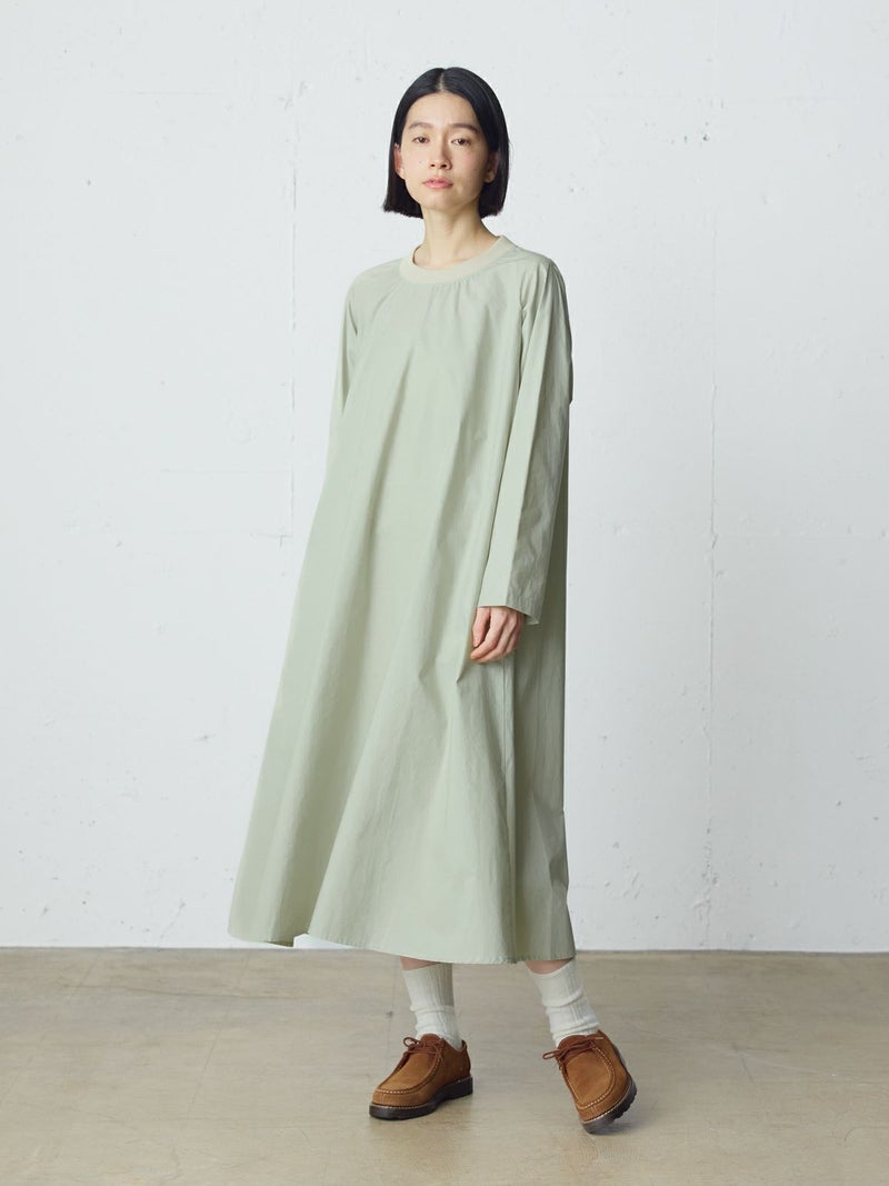40タイプライターを使用したロングスリーブプレンティワンピースです。MidiUmiの人気のワンピースが今季も再入荷しました。ハリコシがしっかりある素材感で仕上げた、Aラインに広がるきれいなフレアラインが特徴。女性らしく魅力的な雰囲気の着こなしを表現できる1枚。クルーネックの首元にはリブを施したデザインになっており、頭が入りやすく着脱がしやすいのもポイント。襟ぐりのリブとは微配色になります。ファンの方も大変多いワンピースです。