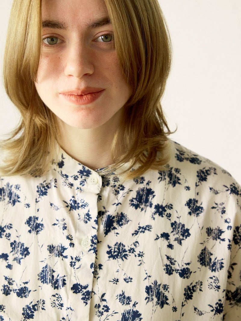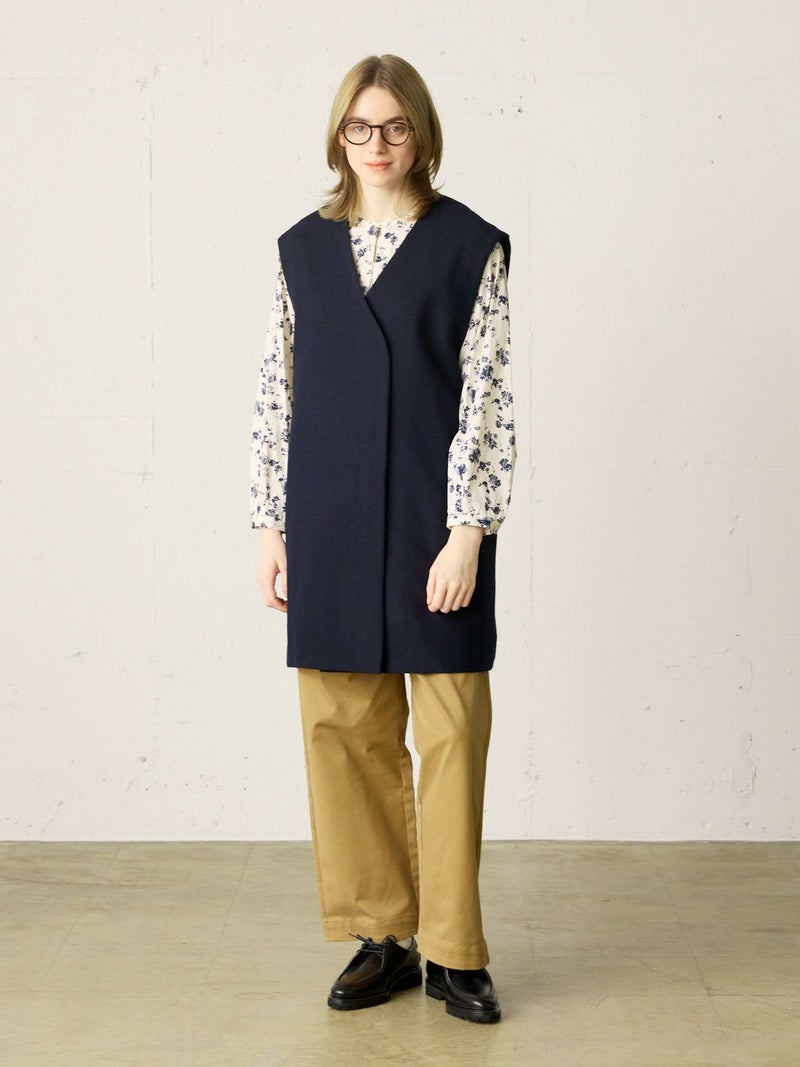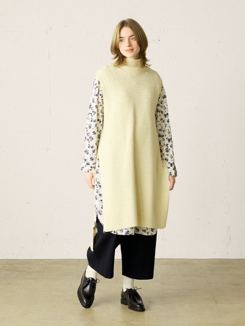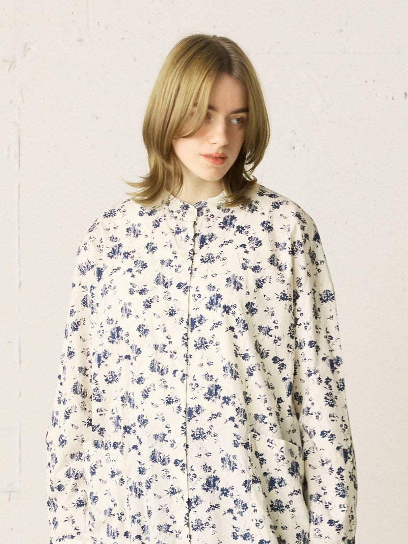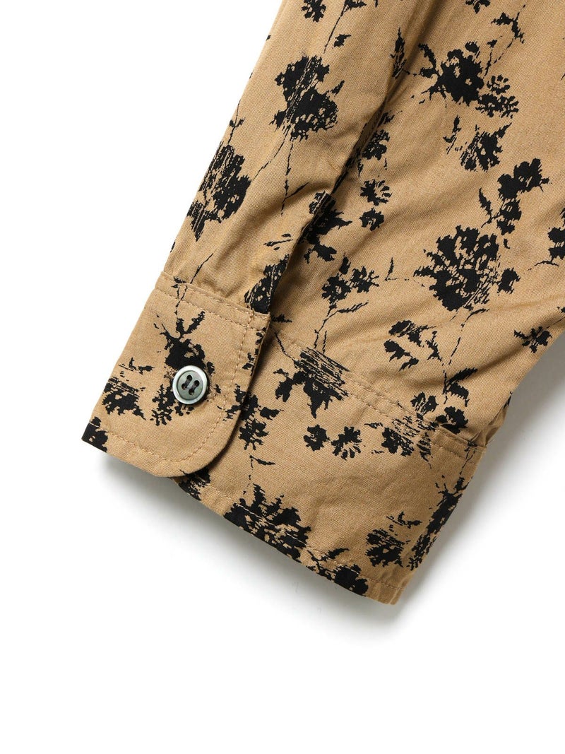 温かみのあるウールの生地にプリントしたような掠れのある花柄をシャツ地に落とし込んだオリジナルプリントシリーズ、プリントワークワンピースです。大きめのポケットがついたワークディティールのシャツワンピース。フロントボタン仕様なので好みでボタンを開けアレンジしてもらえます。タートルネックを入れたりパンツを重ねたりして暖かく着用するのがオススメ。雰囲気の異なる2色展開。 同シリーズ4-739732/プリントスキッパーチュニックも展開。