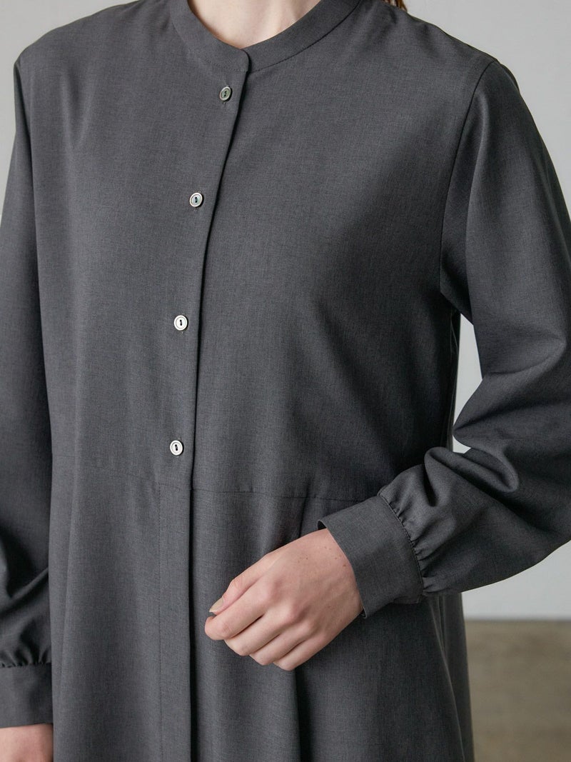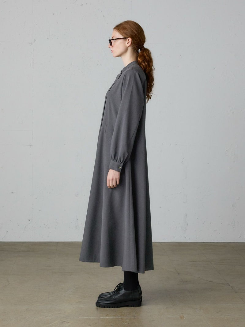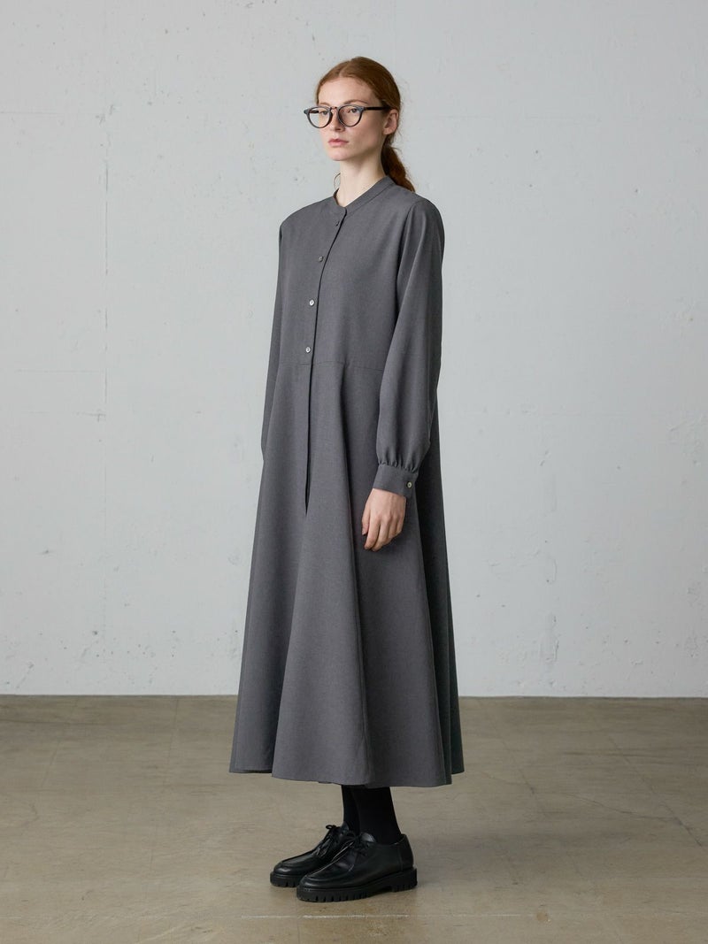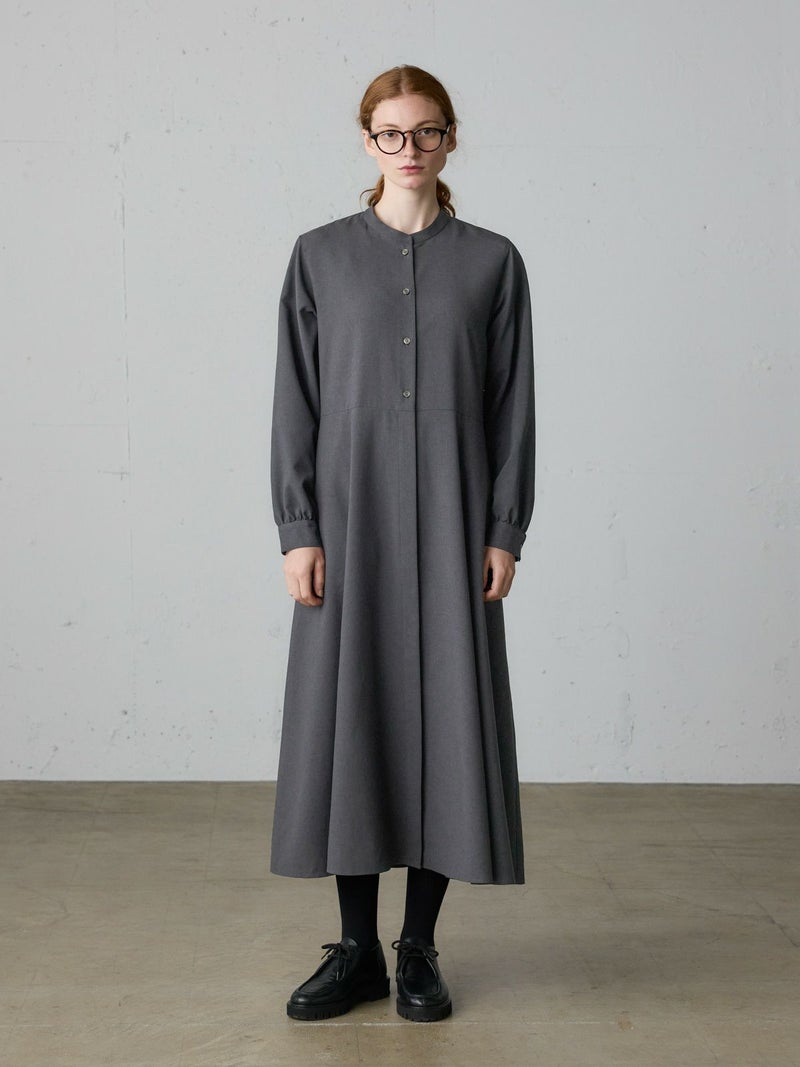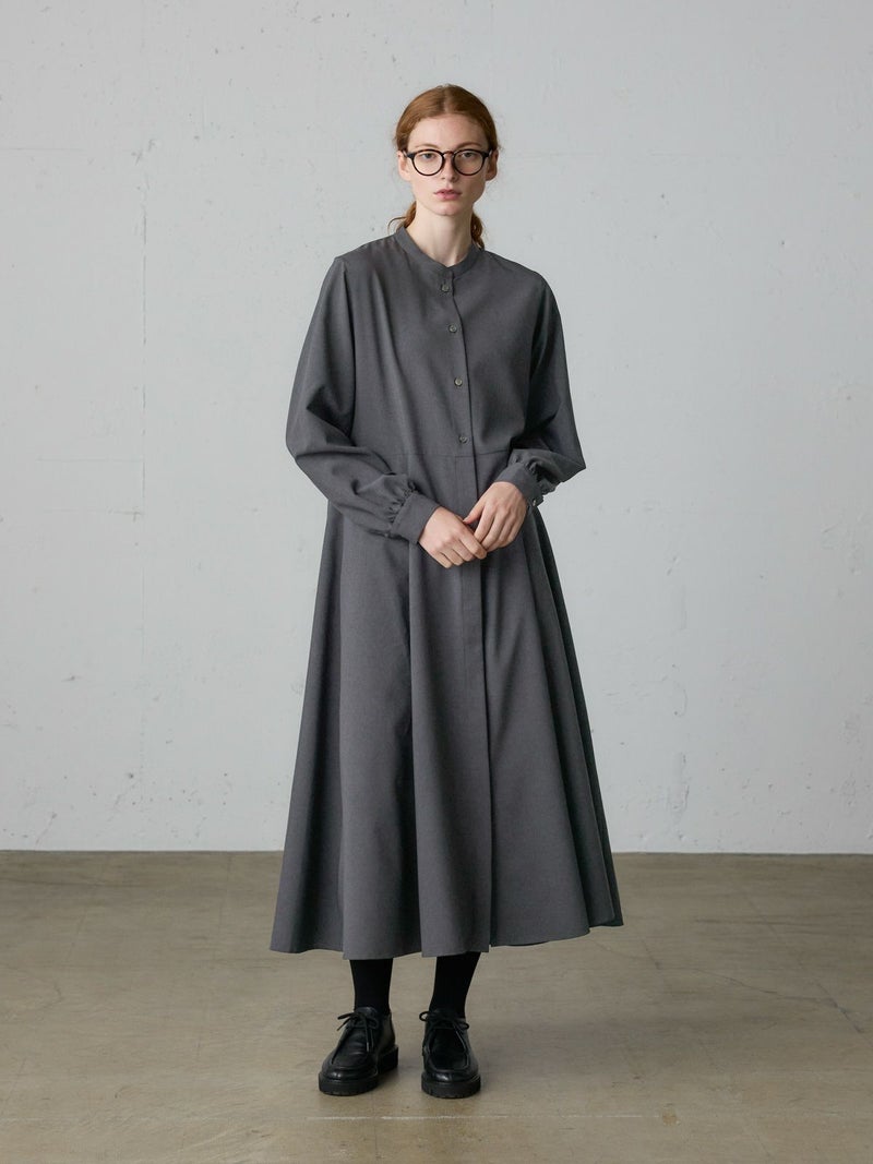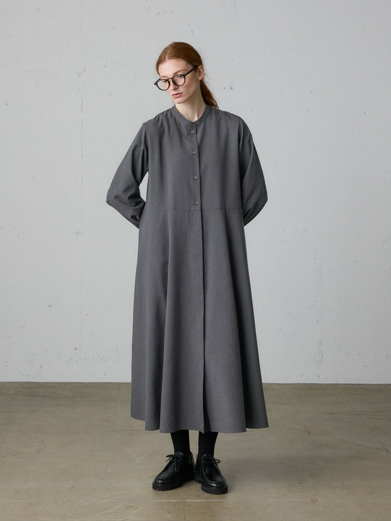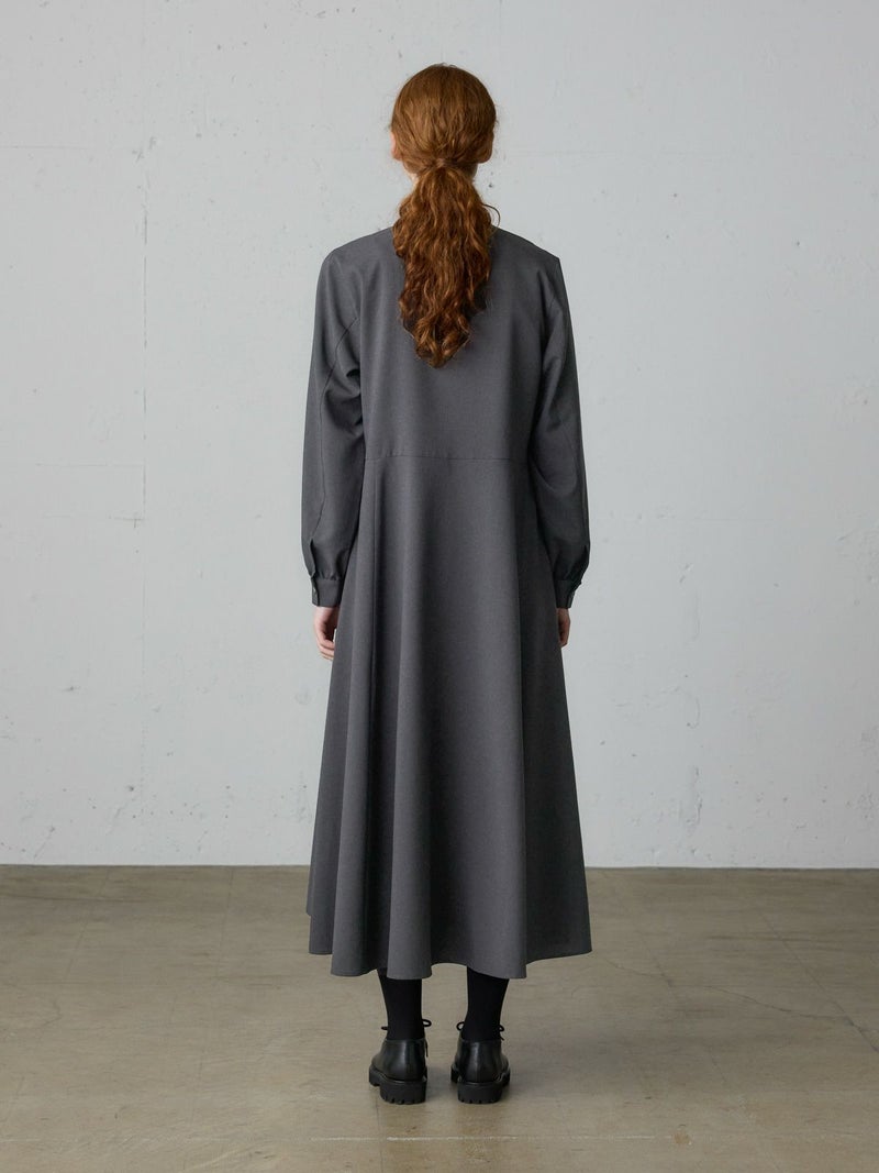 リサイクルポリエステルを100%使用したウエスト切り替えロングワンピースです。梳毛ライクで落ち感のある生地が特徴。洗ってもシワになりにくいのがポイント。上見頃は肩周りをコンパクトめに、スカート部分はボリュームをたっぷり使用したバランスのとれたデザインです。ベーシックな3色展開に絞っており、落着きがあり上品でクラシカルな雰囲気を提案した1枚です。