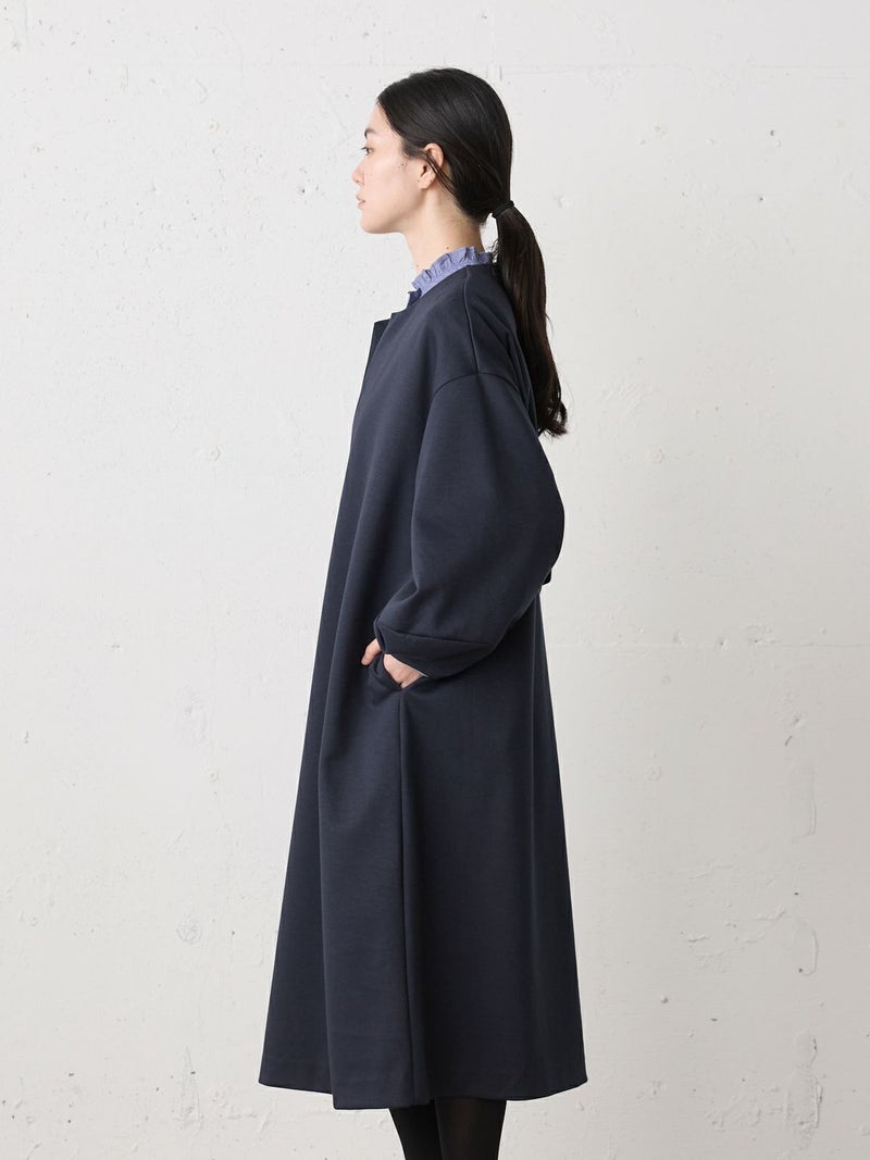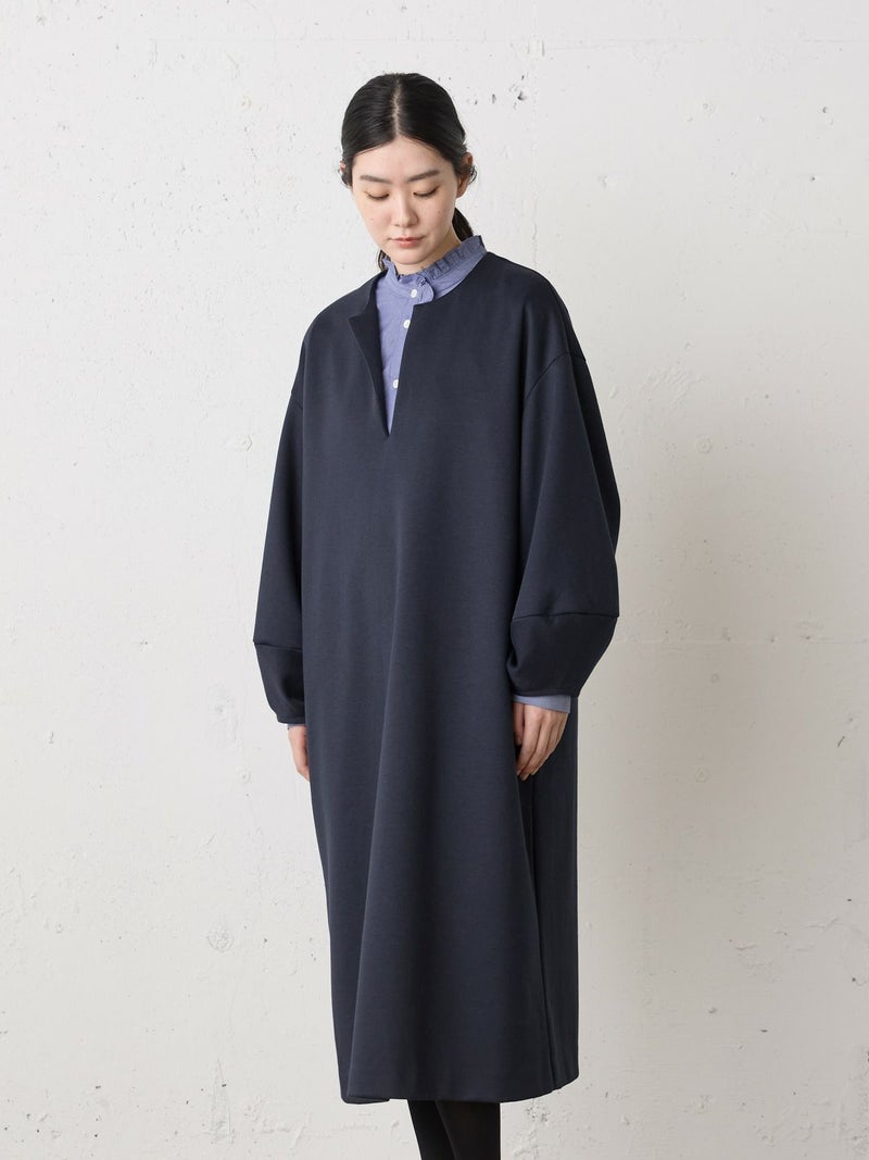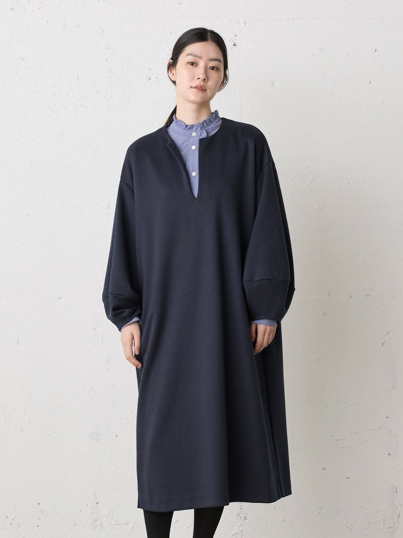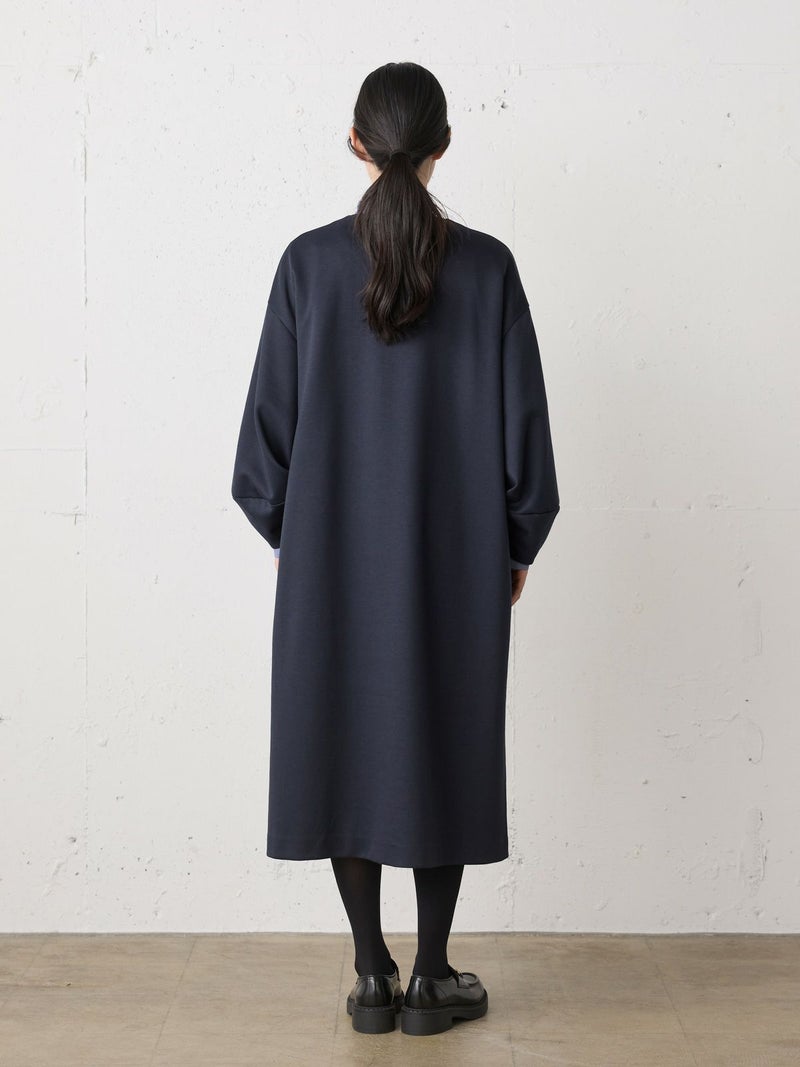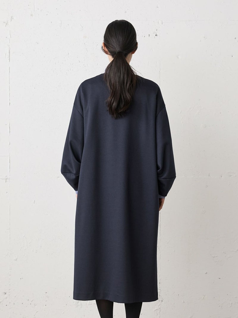 オーガニックコットンとリサイクルポリエステルを使用したスムースダブルニットスキッパーワンピースです。人気のダンボール素材を使用した軽くて温かな1枚。程よいツヤ感ともちもち感が魅力的。コクーン袖がポイントで女性らしい雰囲気のきれいめに使えるワンピースです。透けないので1枚でも着用いただけます。インナーはシャツやタートルなど重ね着もしやすく、首元のオシャレを楽しんでいただきやすいデザインです。シックなカラー展開で、気軽に着用できることもあり1枚あると大変重宝していただけるワンピースです。