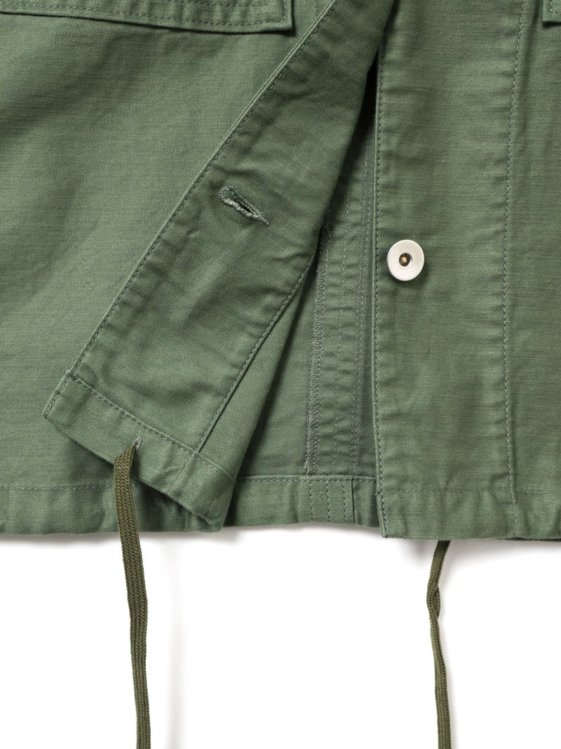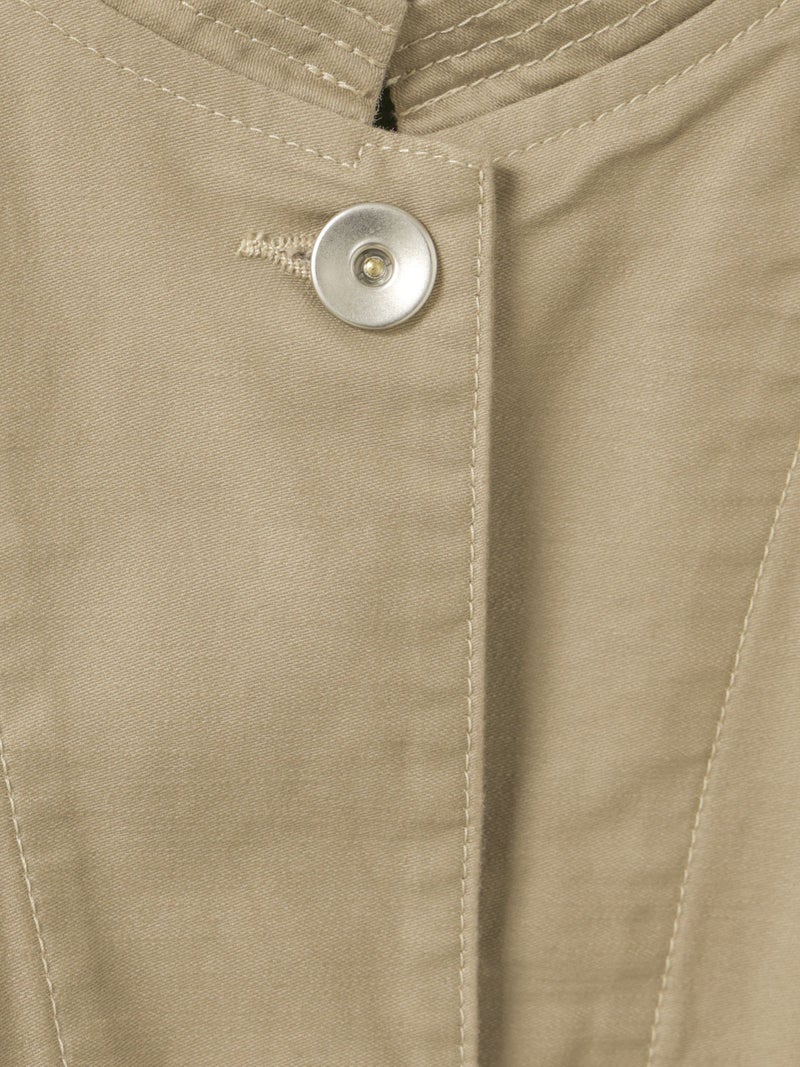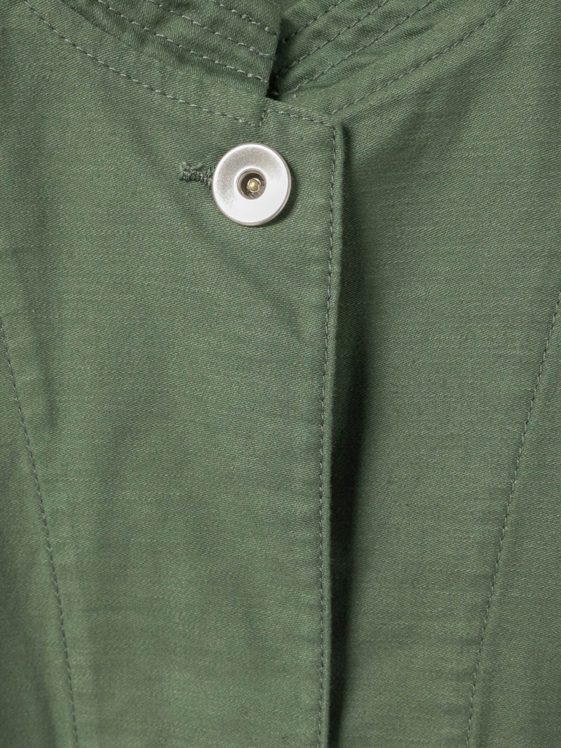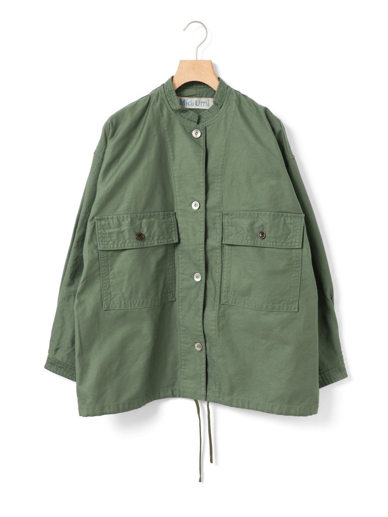 染料染と天然顔料染めのダブル染色加工を施したユーティリティカバーオールです。洗いによるシワ感や粗野感、味のある風合いにバックサテン由来のツヤがミックスされた1枚。大きなポケットとステッチワークが魅力のカバーオール。大きめのボタンや裾に紐を付けたりと、ディティールにメンズっぽい雰囲気を表現。レースアイテムと合わせて、コーデの外しにするのもオススメです。少しハリのあるしっかりとした素材感なので、ジャケット自体のシルエットが崩れにくいのも特徴。ベーシックさもありながら素材の雰囲気を感じさせる1枚です。同シリーズ1-760138/ユーティリティーカーゴパンツも展開。