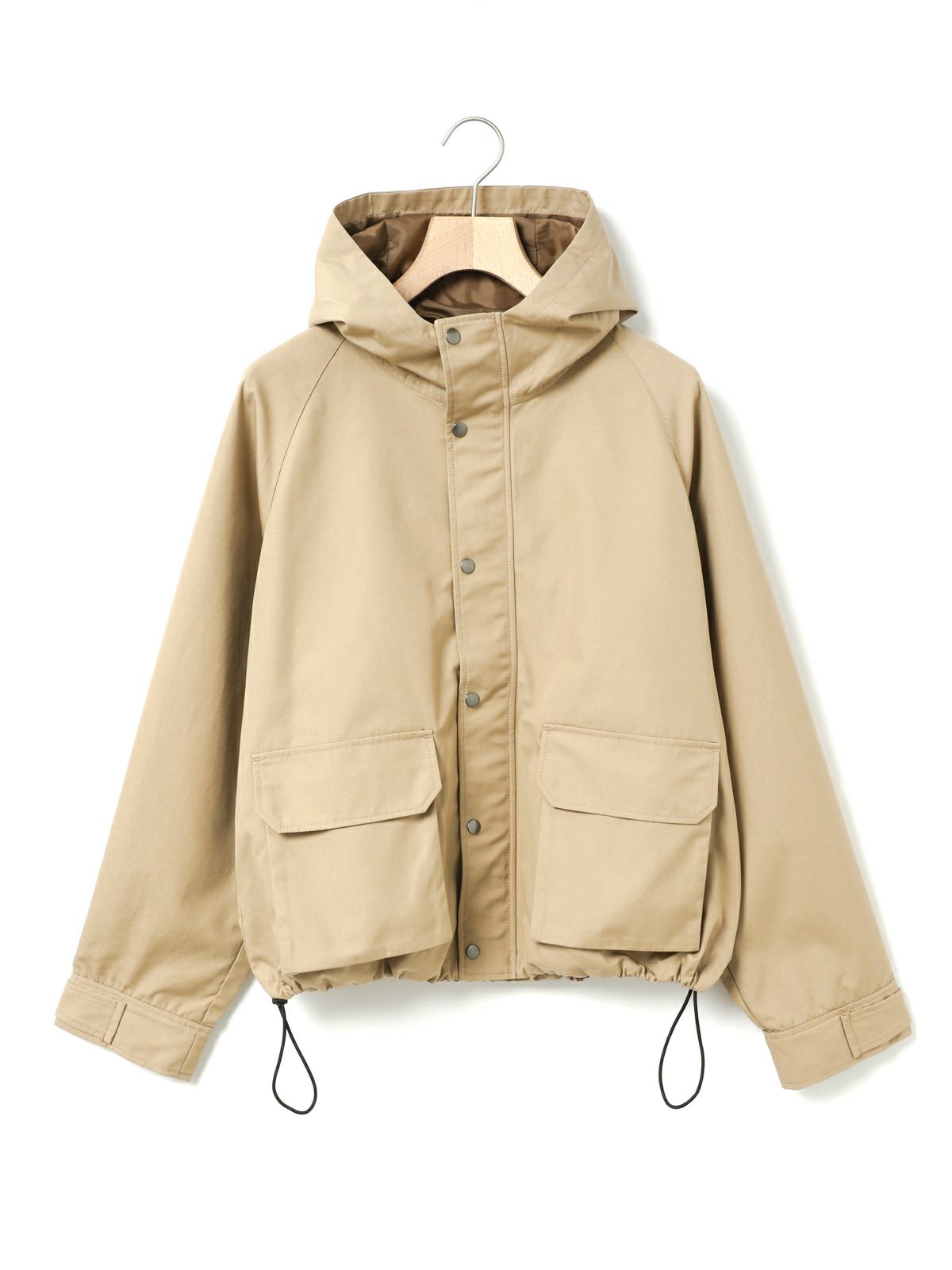 撥水性のあるポリエステルコットン素材を使用したマウンテンパーカーです。ボックスシルエットを表現したデザインと立体感のあるポケットがポイント。裾にはドロストコード付きなのでシルエットを変化することも可能。長すぎず短すぎないジャスト丈で提案しました。レイヤードも楽しんでいただけます。アウトドアに最適ですがカジュアルな着こなしにお勧めのアウターとなっています。
