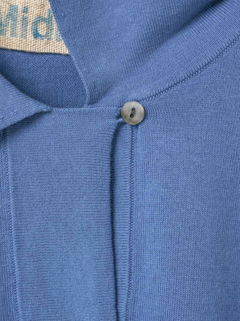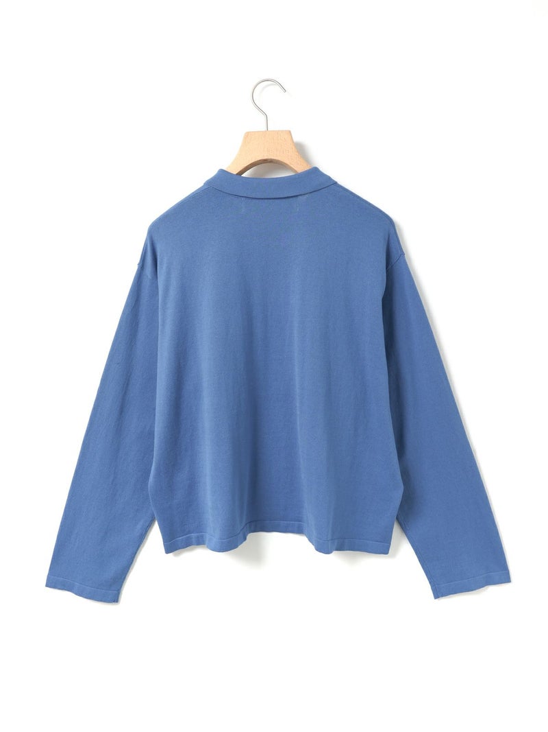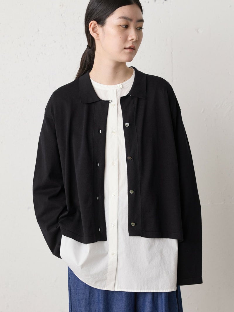 ガス焼+シルケット加工を施したニットシャツカーディガンです。コットン糸を編立てた、キレイな目面のハイゲージニットを使用。春先に重宝するシャツ襟付きのニットカーデ。優しいミントやブルーの爽やかな色目が印象的。ゆったり感のある身頃で袖を長めにデザインしています。フロントボタン仕様で気軽に羽織っていただける1枚です。同シリーズ1-720075/ニットチュニックプルオーバーも展開。