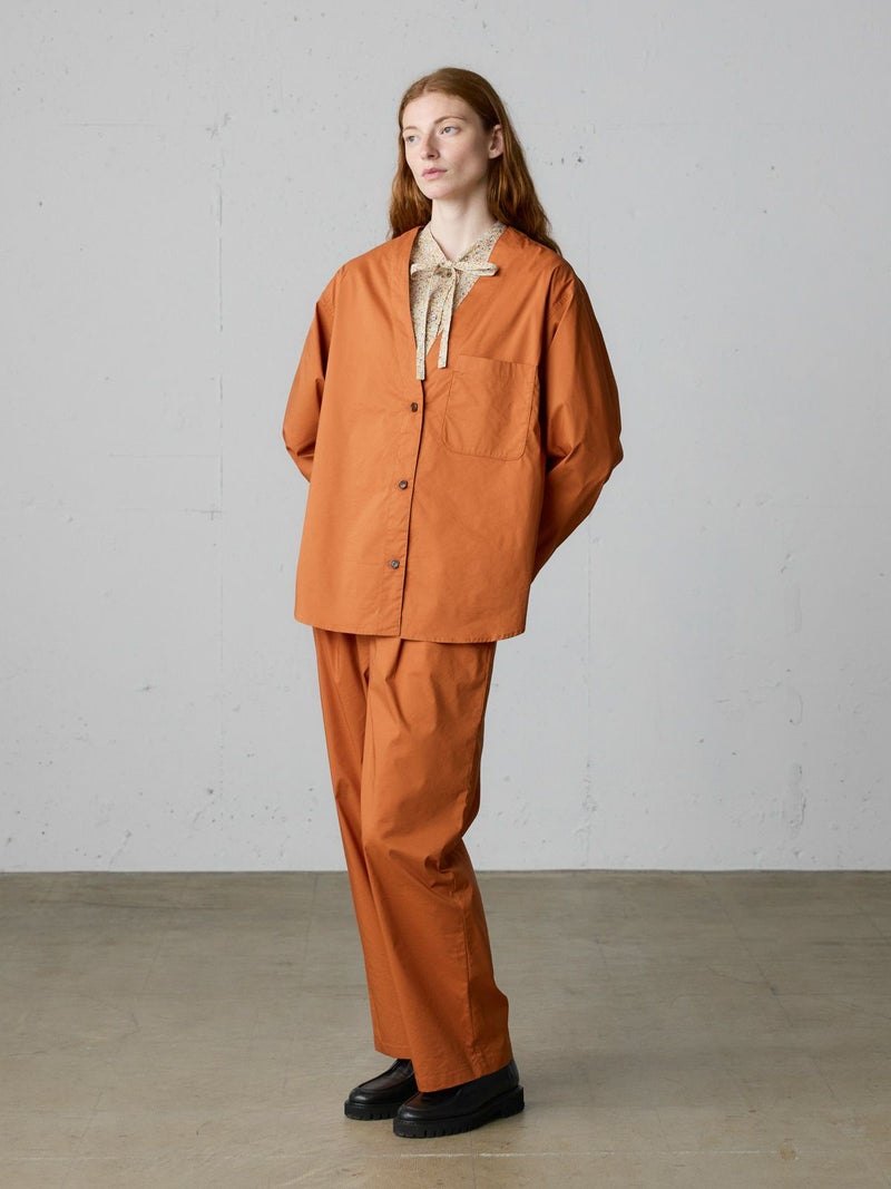 すっきり目なシルエットに仕上げたカーディガンジャケットです。室内でのカーディガンとして重宝します。同シリーズ3-769967/ストレートパンツとオールインワン風に着用いただくのもオススメ。限定枚数のテラコッタはカラーインパクトのある魅力的なジャケットに仕上がっており、深みのあるオシャレなカラーが魅力的。ノーカラーのすっきりとしたVネックのデザインでストレッチがよくきいています。生地が薄手のワイドなシルエットなのでレイヤードがしやすいのもポイントです。