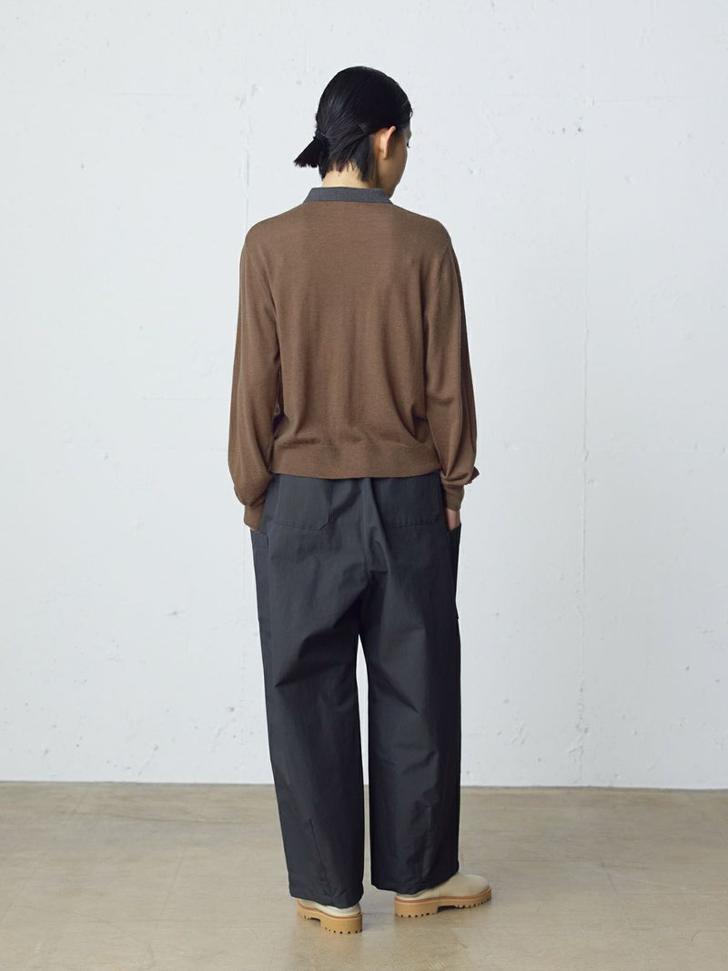 リサイクルウールを使用したハイゲージニットシリーズ、バイカラーポロカーディガンです。バイカラーの襟が今年らしいデザイン仕上げ。程よくゆったりとしたサイズ感です。カーディガンでもトップスとしても着こなせます。春先の季節の変わり目に大変重宝するアイテムで長く着こなせる1枚です。同シリーズ 4-720046/ロングニットベストも展開。