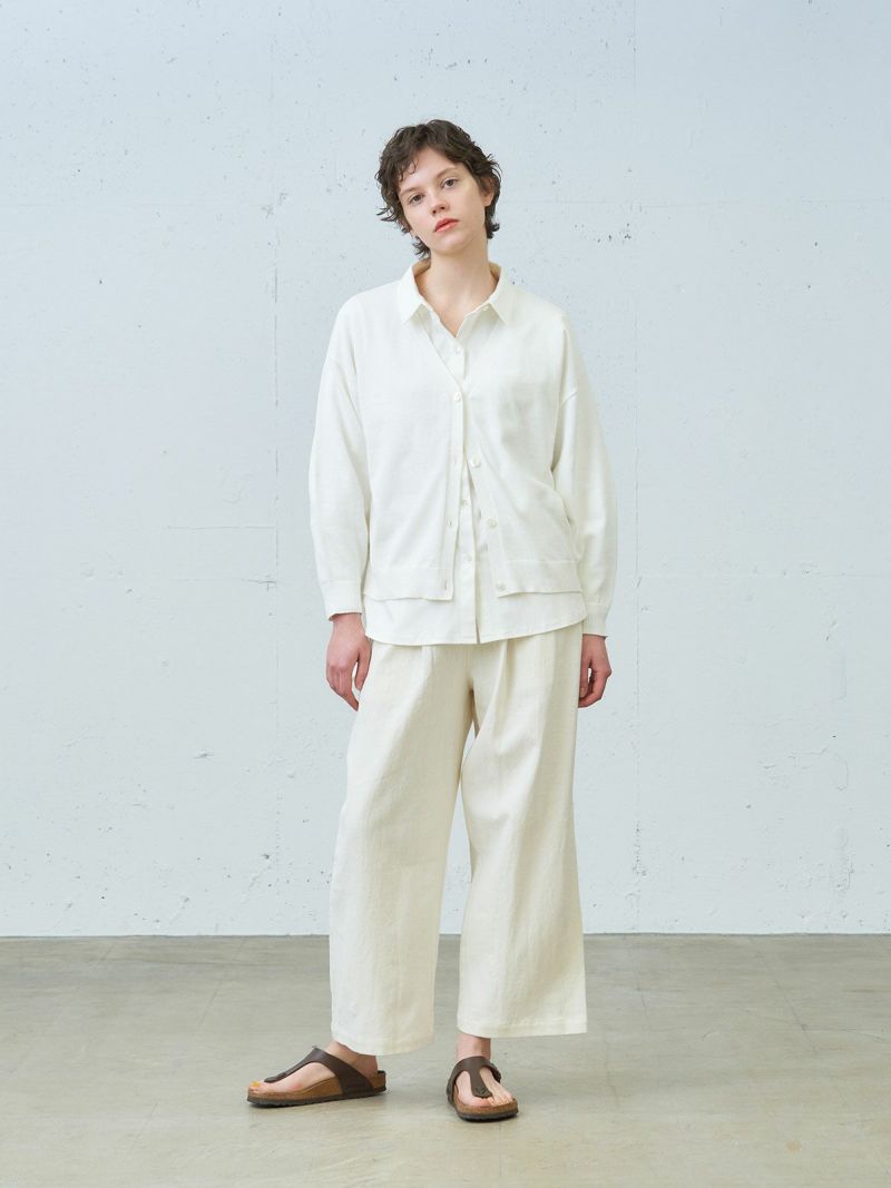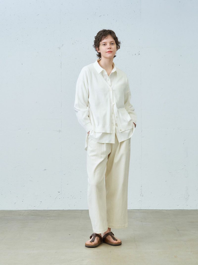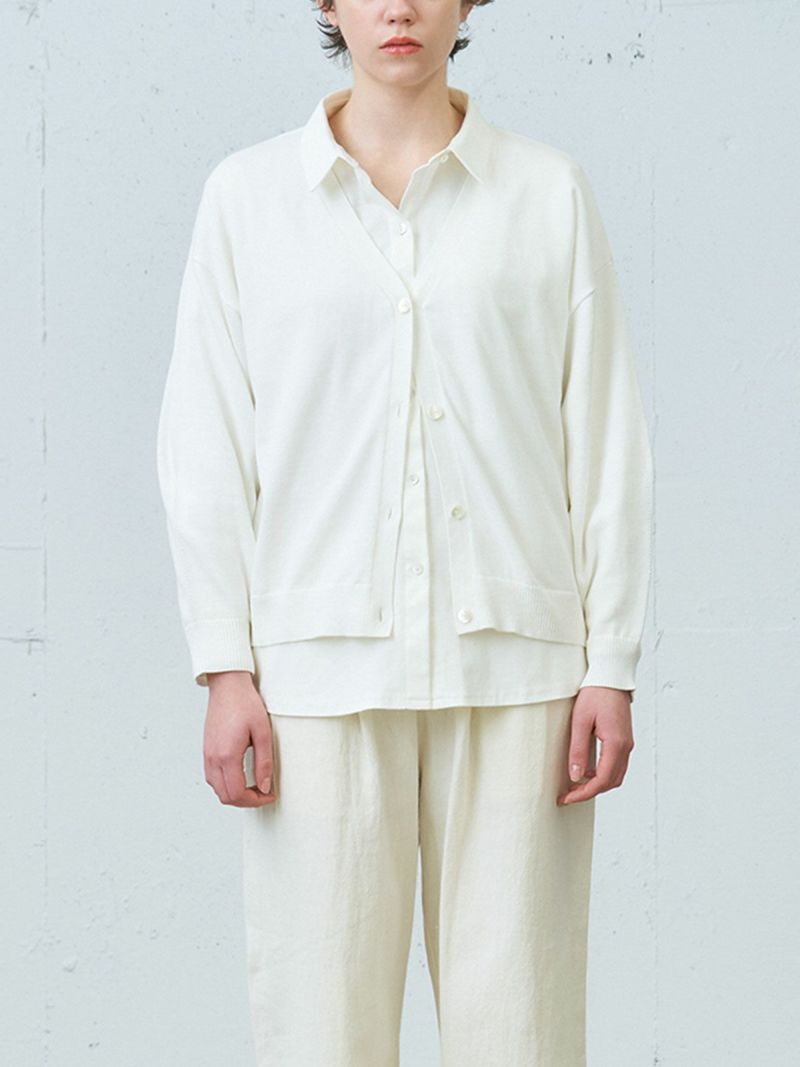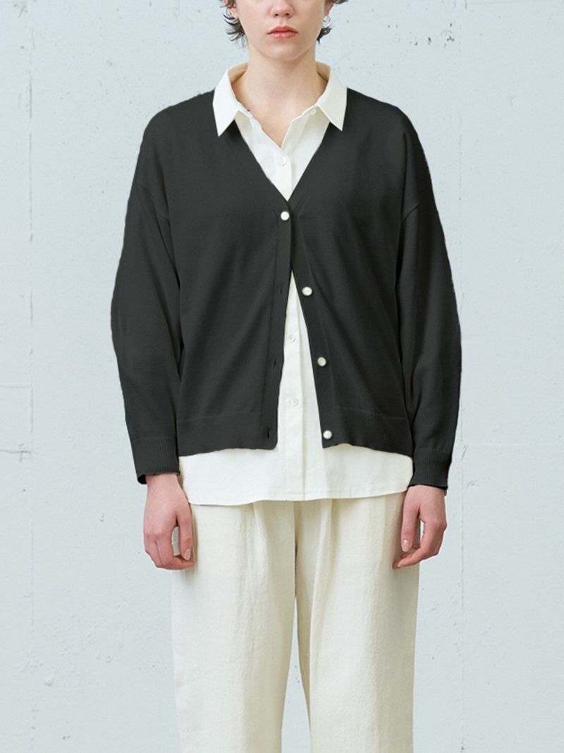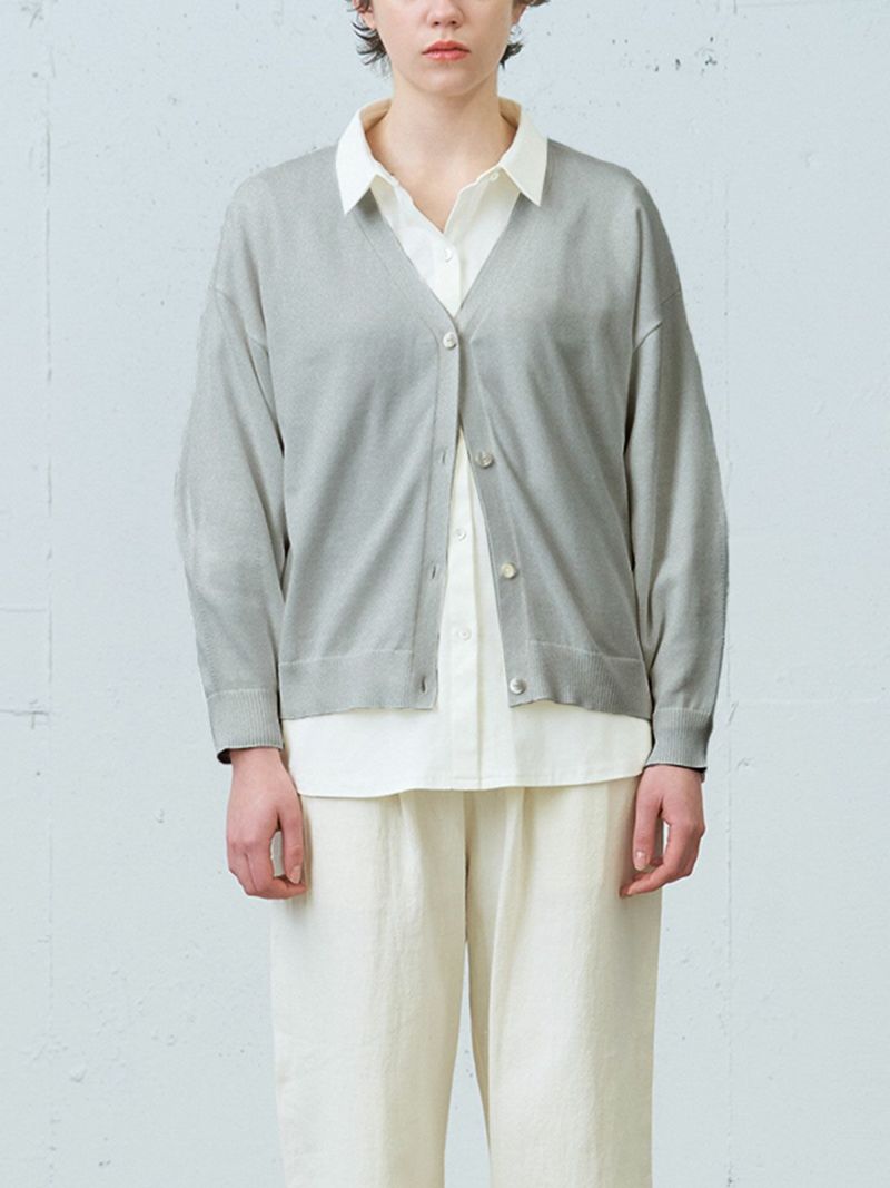 昨年に引き続きMidiUmiのオーガニックコットン、ウォッシャブルニットシリーズでもあるVネックカーディガンです。ハイゲージで上品な雰囲気に仕上がったベーシックな1枚。自然と袖が膨らむデザインが特長で、ワンピースやワイドなボトムスに合わせやすい丈感に仕上がっています。コーディネートしやすいカラー展開で長く愛用できるのもポイントです。春先の季節の変わり目にとても重宝します。