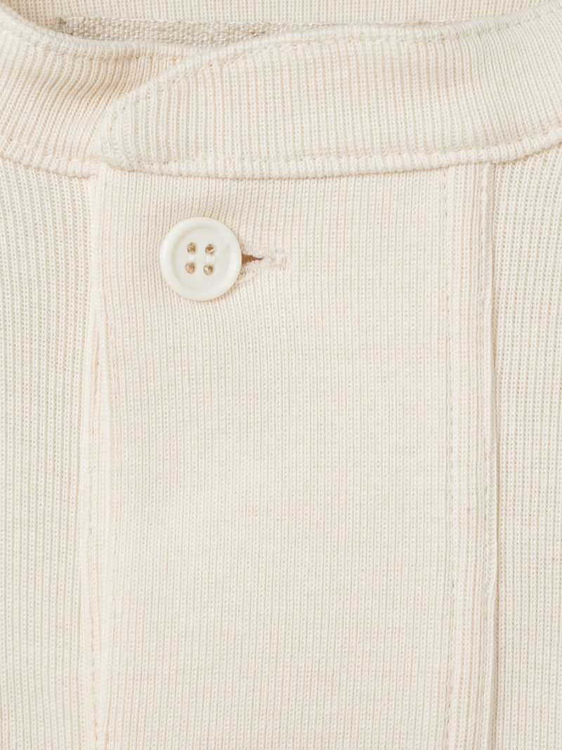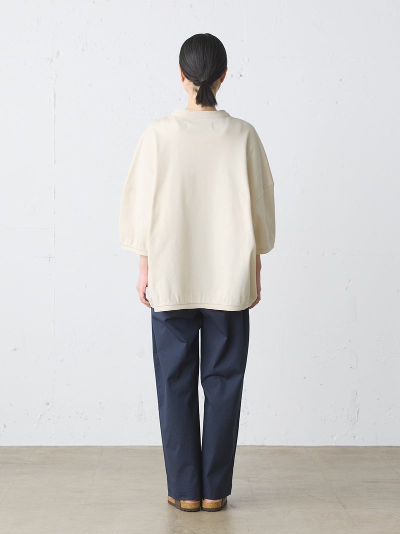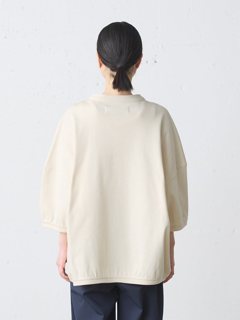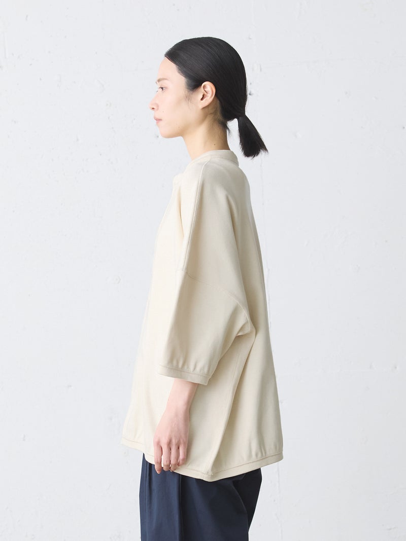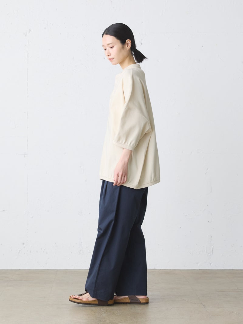 シルケット加工を施したヘンリーネックプルオーバーです。艶のある滑らかな生地にサラッとした肌触りが特徴。毛羽が少なく吸収性が高いのもポイント。カジュアルなデザインですがきれい目な着こなしを印象付けてくれます。ヒップの隠れる少し長めの丈はメンズでも着用できるほど。袖は緩い絞りになっており、ゆったり感もありながら細部に拘りのあるデザインに仕上げています。ヘンリーネックのカジュアルなデザインに、優しい色合いのナチュラルな風合いを兼ね備えた、着回しやすいアイテムです。