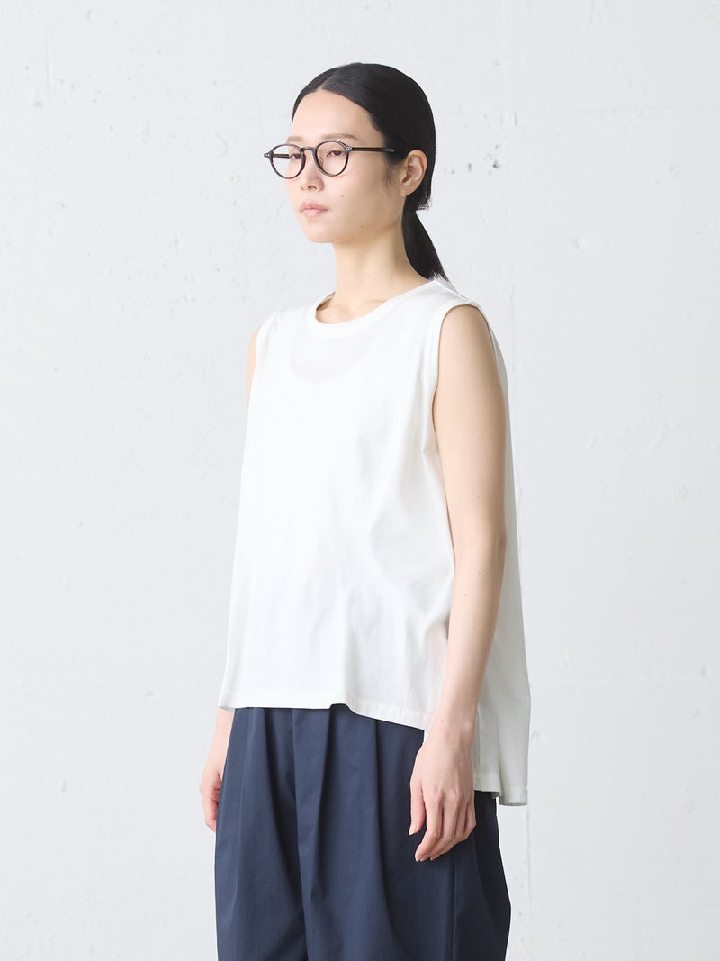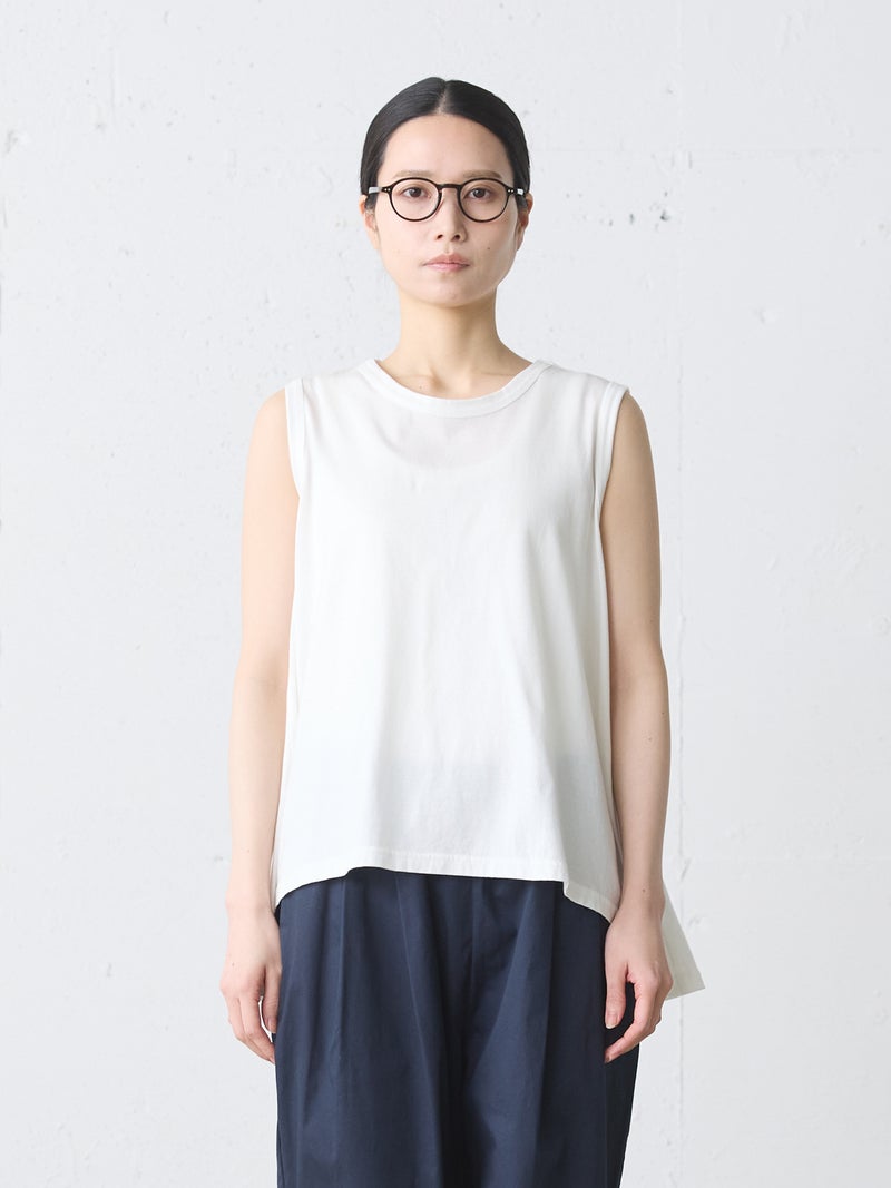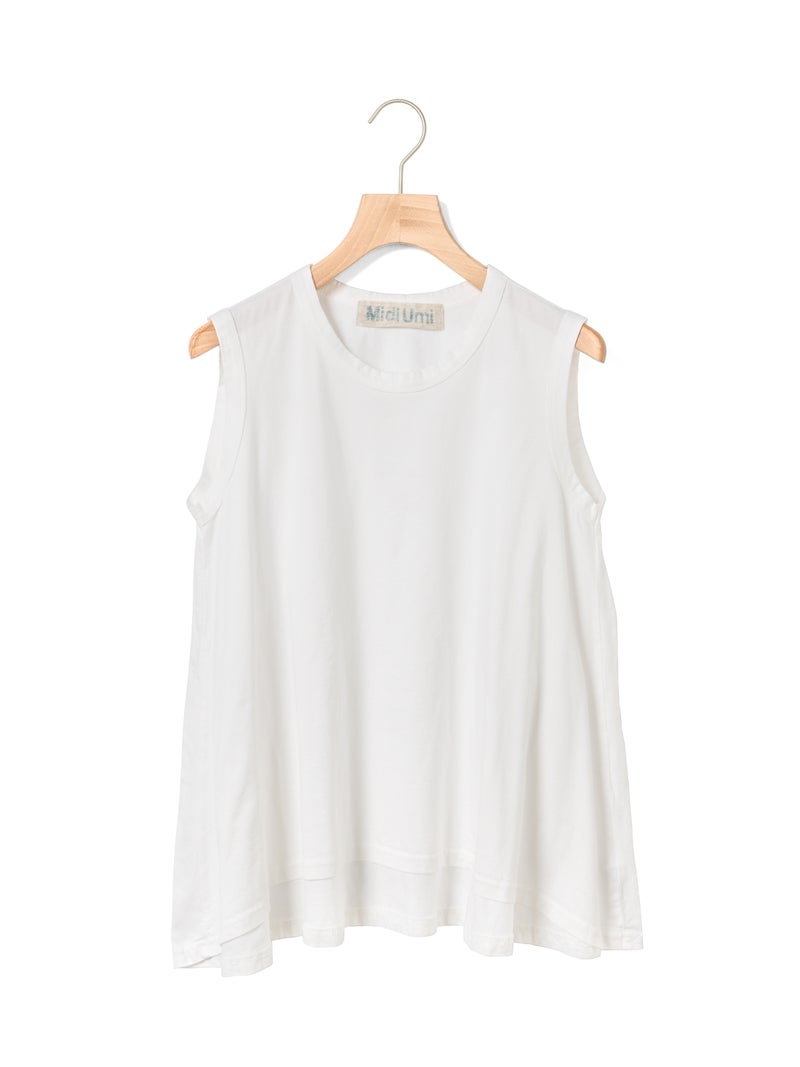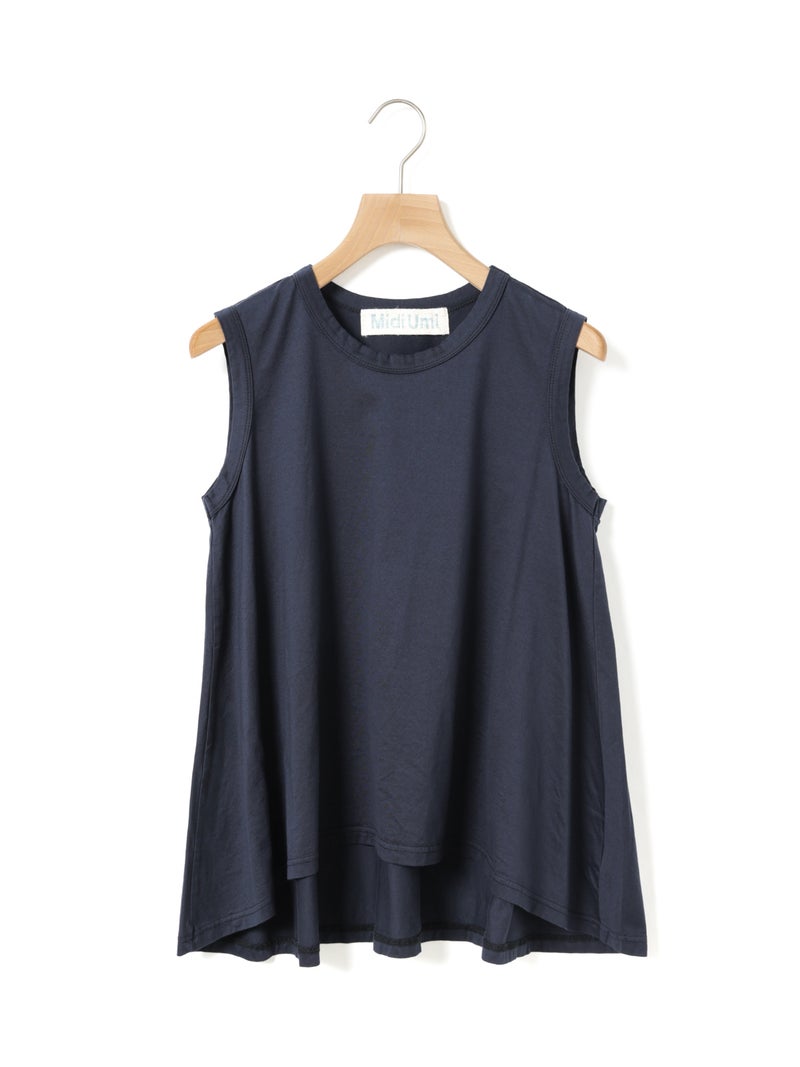 MIdiUmi定番のクルーネックフレアタンクトップです。重ね着したり、ノースリーブで涼しく着こなしてもよい着回しにお勧めの1枚。前後差が付いており、バックはヒップに掛かる丈感です。色展開は合わせやすいベーシックカラーのみ。上からベストやTシャツをレイヤードしてもOK。フレアラインの女性らしいシルエットが特徴のベーシックアイテムです。