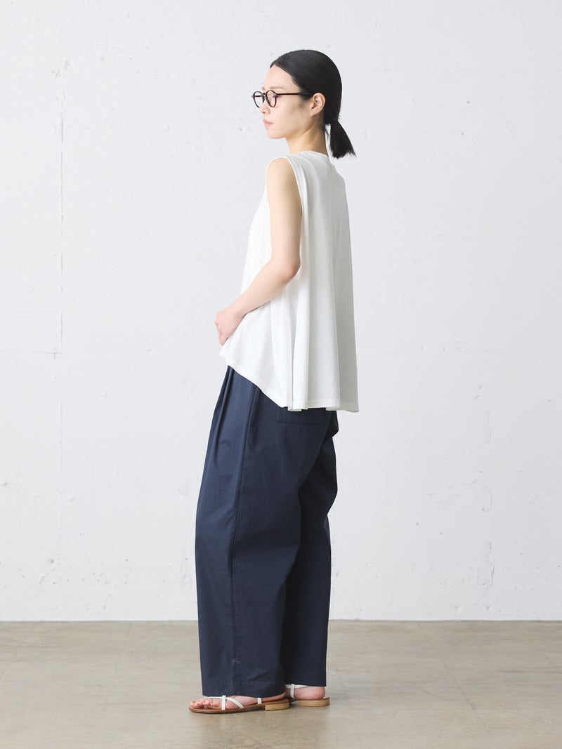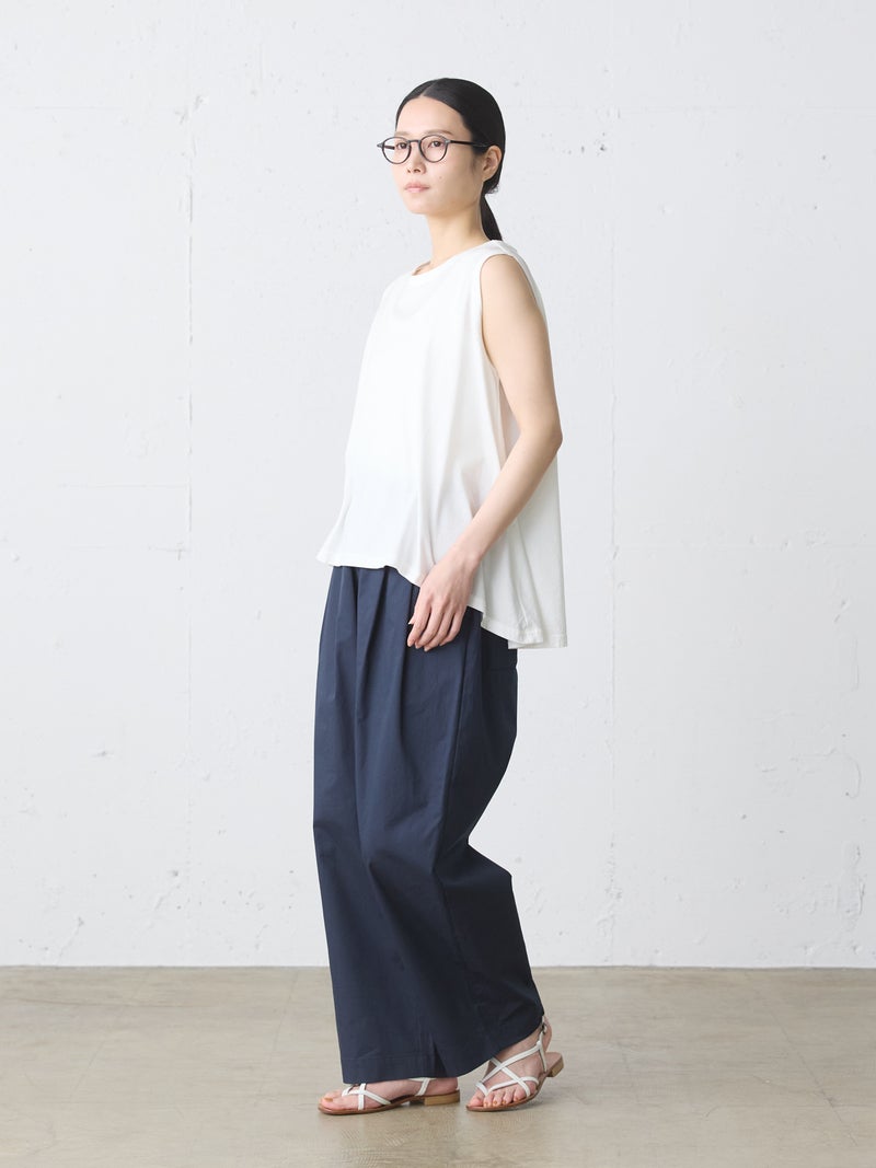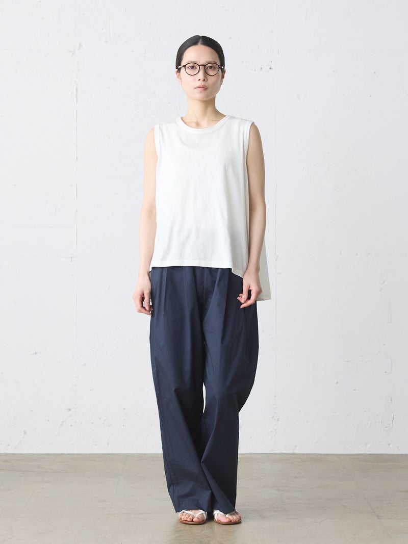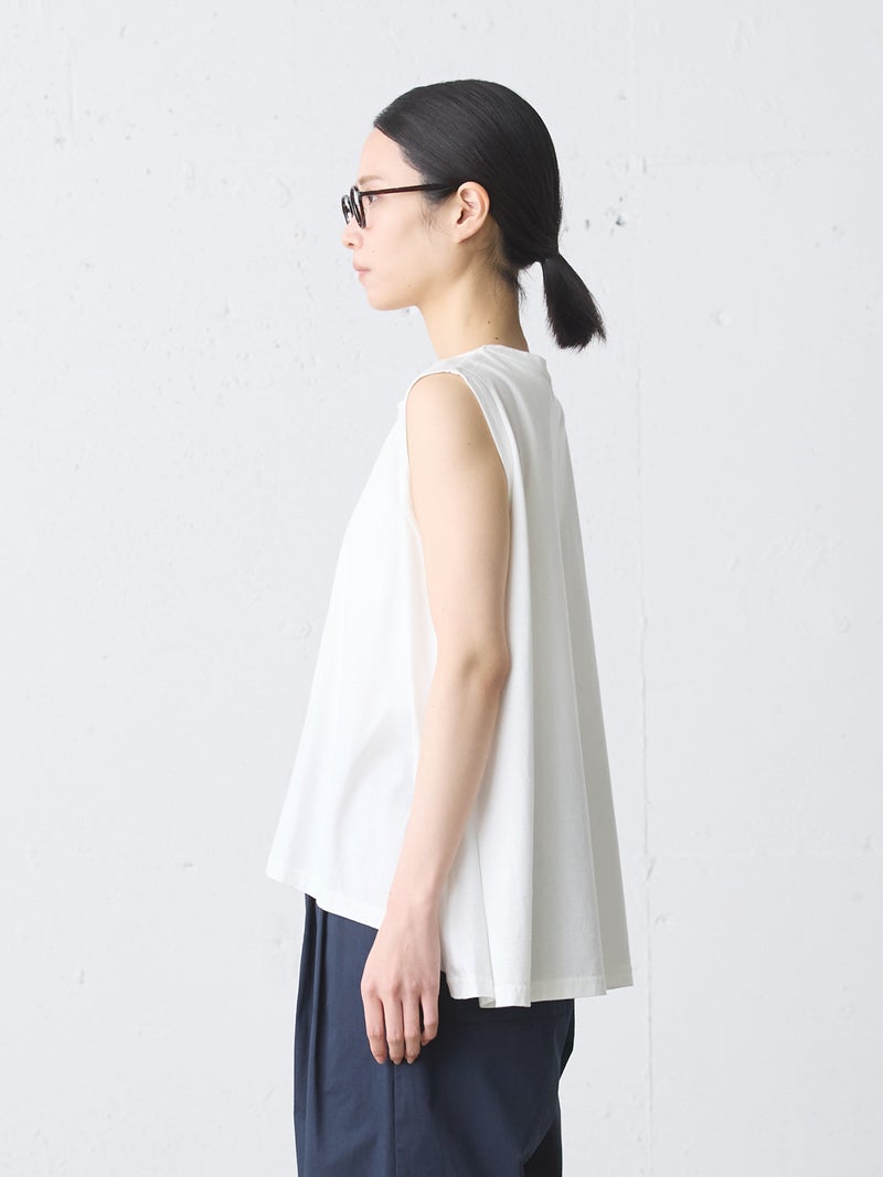 MIdiUmi定番のクルーネックフレアタンクトップです。重ね着したり、ノースリーブで涼しく着こなしてもよい着回しにお勧めの1枚。前後差が付いており、バックはヒップに掛かる丈感です。色展開は合わせやすいベーシックカラーのみ。上からベストやTシャツをレイヤードしてもOK。フレアラインの女性らしいシルエットが特徴のベーシックアイテムです。