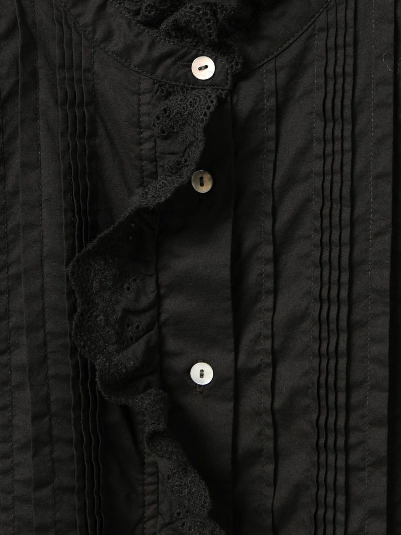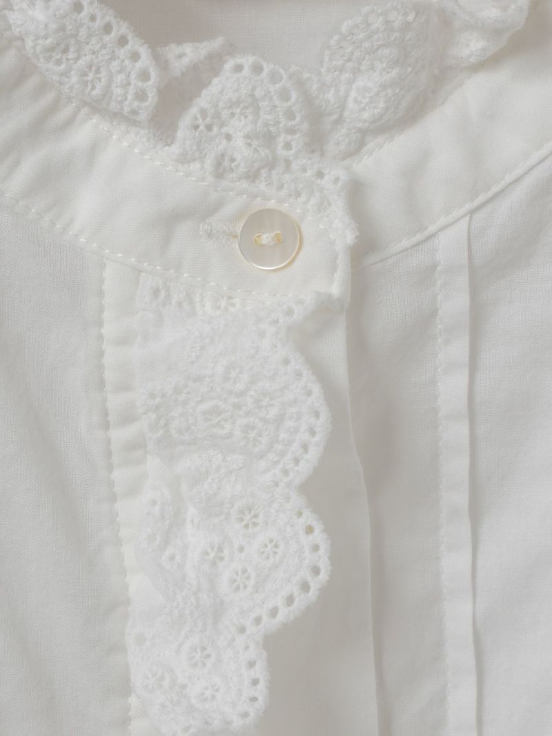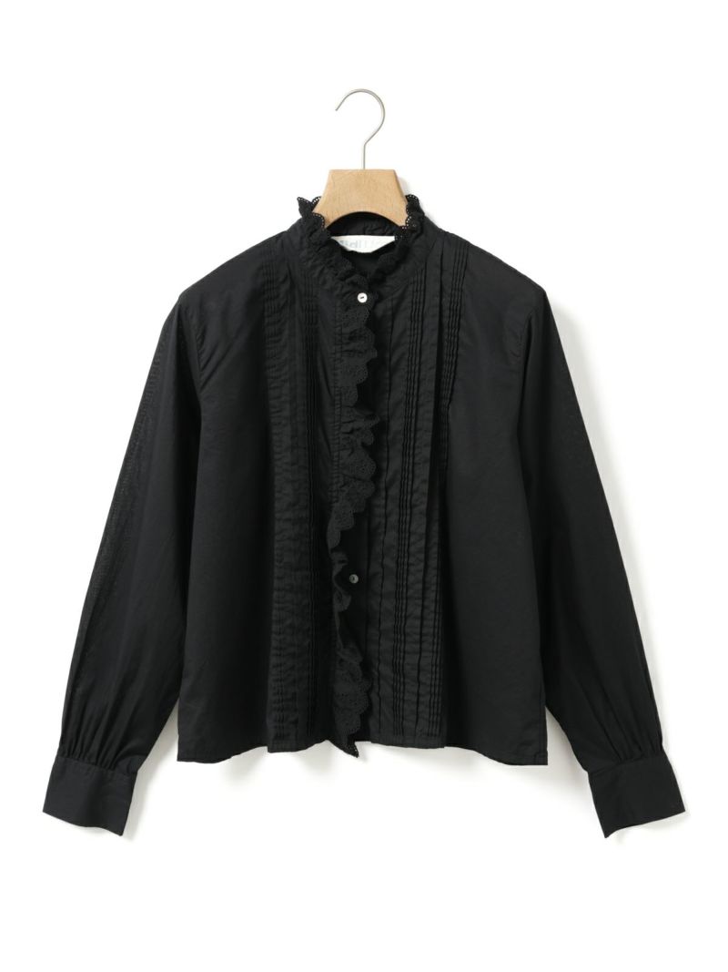 ローン×ヴィンテージライクエンブロイダリーレースで仕上げたピンタックレースシャツです。襟と前立てにレースをあしらい、ピンタックを組合わせた上品な1枚。透け感があるのでインナー使いで清楚にコーディネートするのがお勧め。首元のハイネックレースを魅せ、シャツ自体が重ね着アイテムとして役立つアイテムになってくれます。1枚でも素敵なシャツで、季節の変わりで軽装にしても印象的な着こなしを演出してくれます。同シリーズ1-730079/ピンタックレースベストも展開。