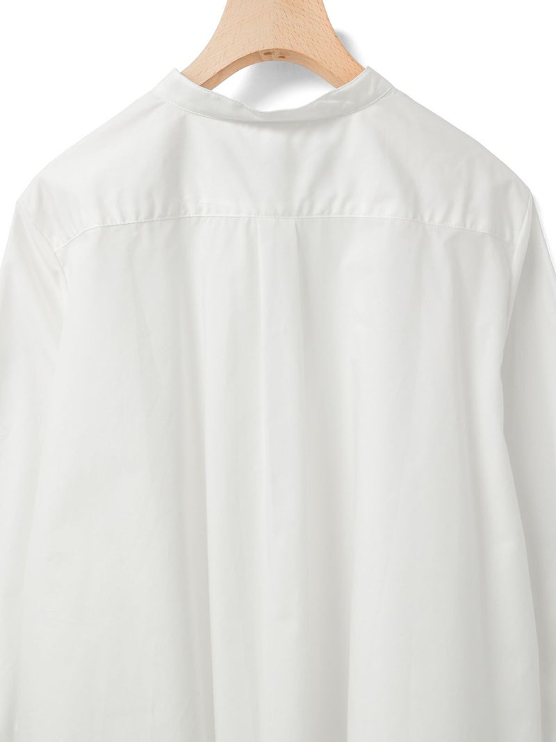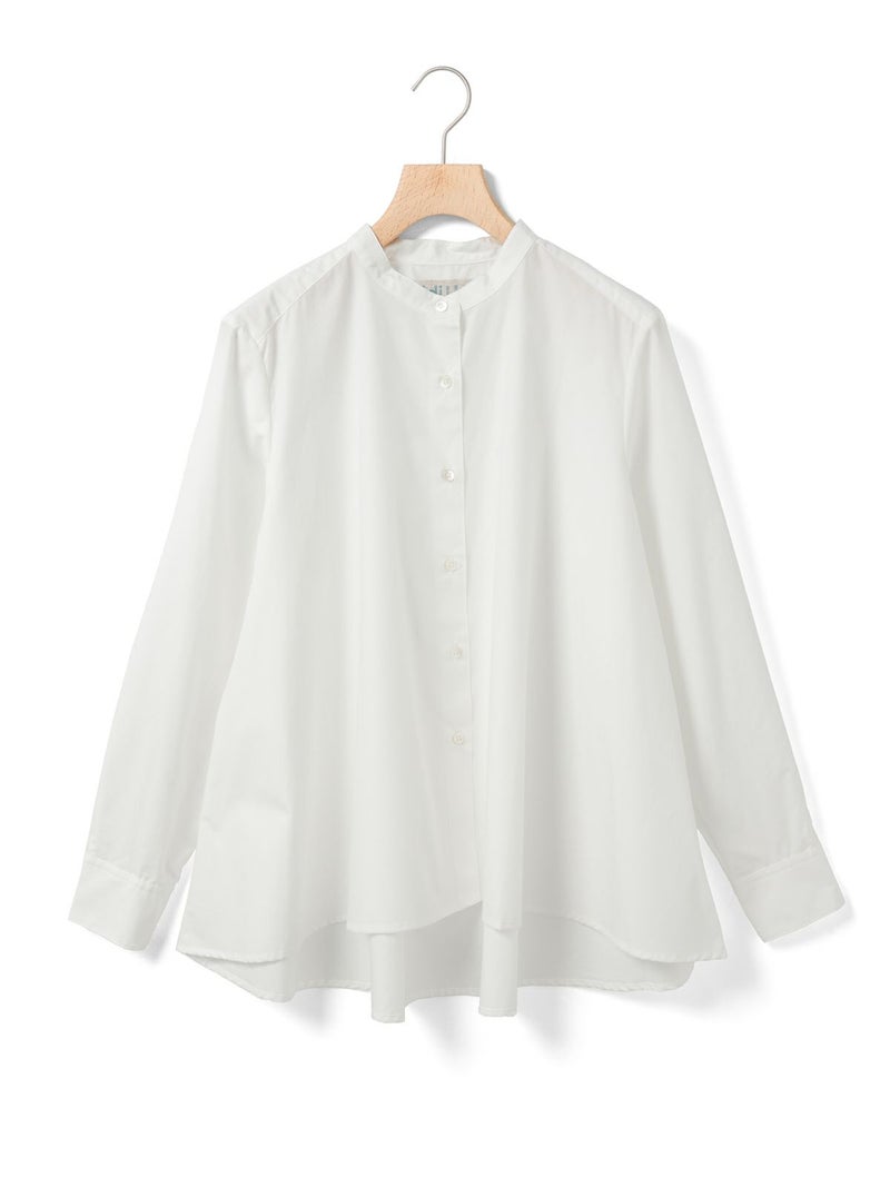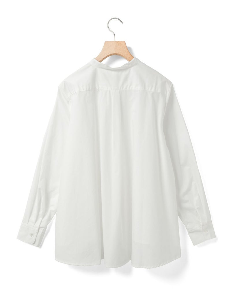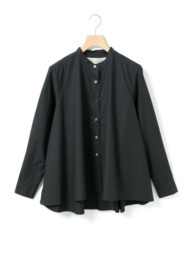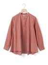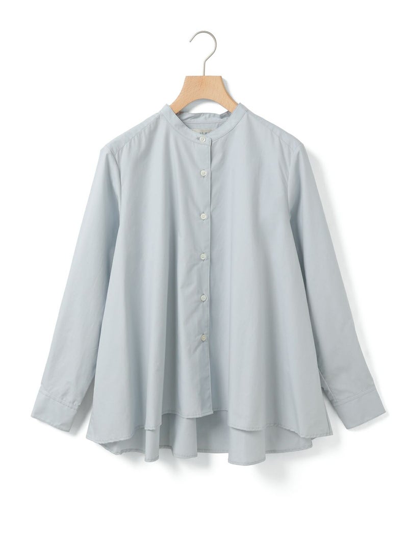 50タイプライターのMidiUmi定番のAラインバンドカラーシャツ。落ち着きのある秋色のピンクを取り入れた女性らしい清楚なシャツに仕上げました。前振りの肩ライン、狭めの細めヨークにすることで肩回りをすっきり見せ、華奢見えします。滑らかな裾ラインは前後差が付いておりしなやかなドレープラインを演出します。ベーシックに着こなせるシャツです。同シリーズの3-739996/Aラインバンドカラーシャツワンピ―スも展開。