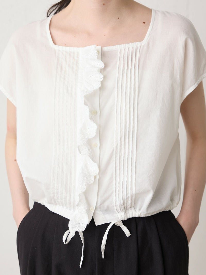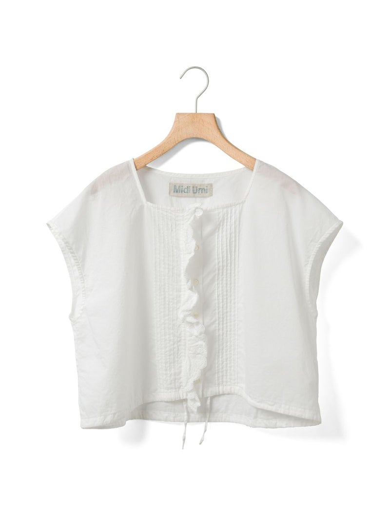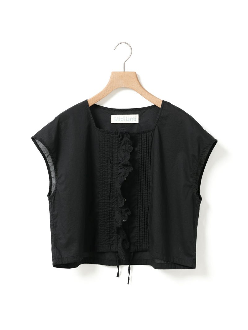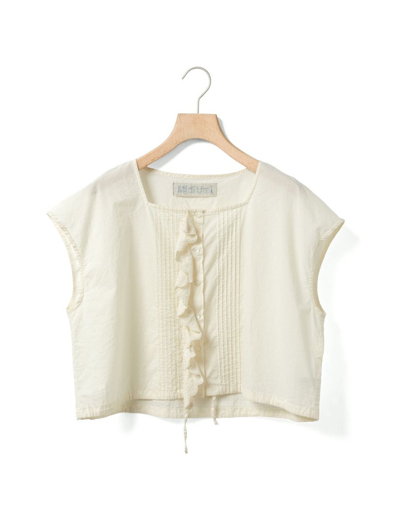 ローン×ヴィンテージライクエンブロイダリーレースで仕上げたピンタックレースベストです。前立てにレースをあしらったシャツベストで、ボーダーと着用したりノースリーブと合わせたりするのがお勧め。裾に施した紐を絞ってアレンジ可能。透け感があるのでインナー使いで重ね着を楽しんでいただけるアイテムです。季節の変化によって軽装にして印象的な着こなしを演出してくれるので長くコーディネートに取り込める1枚。同シリーズ1-730078/ピンタックレースシャツも展開。