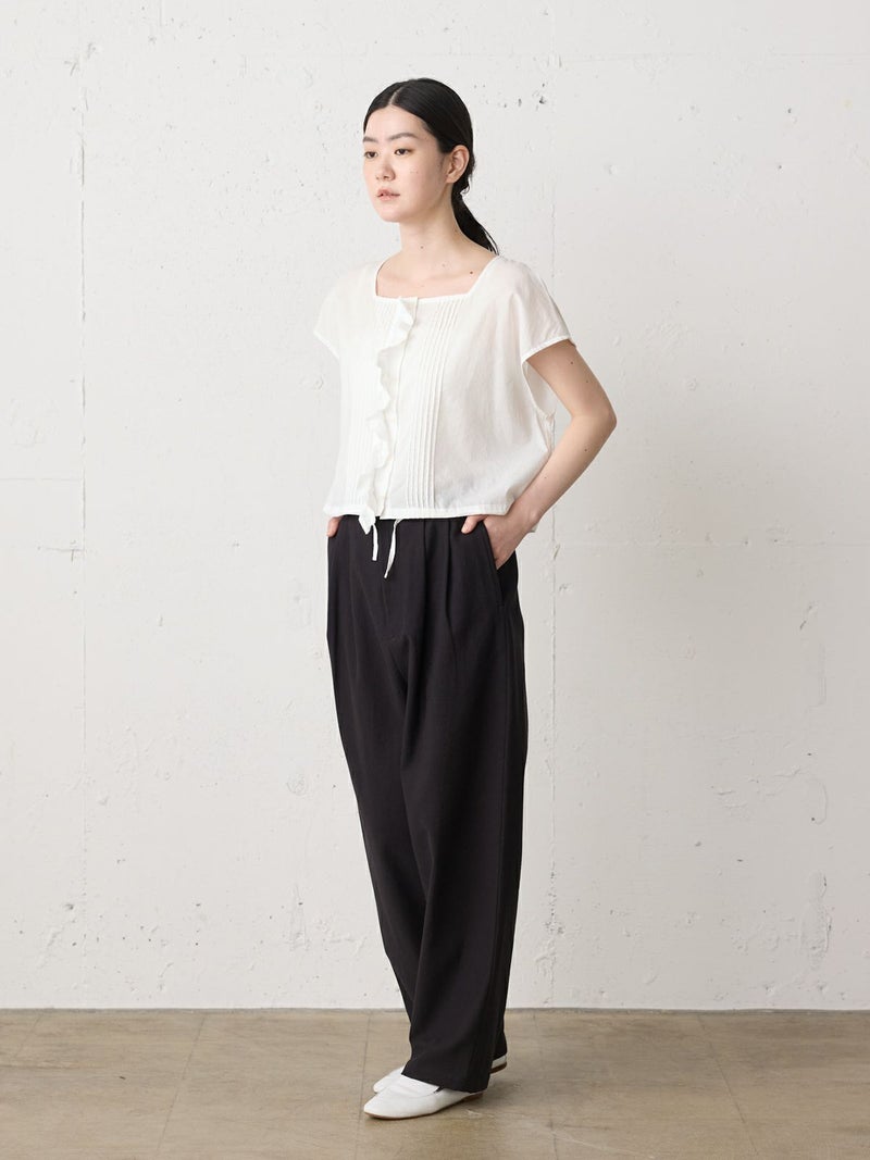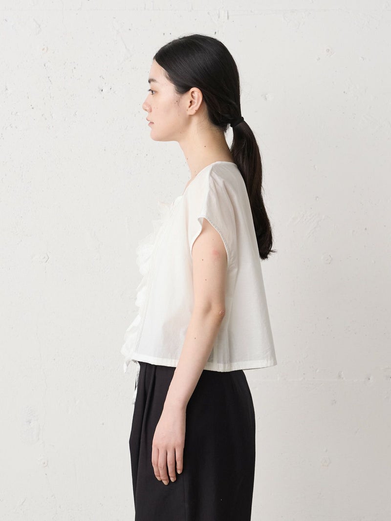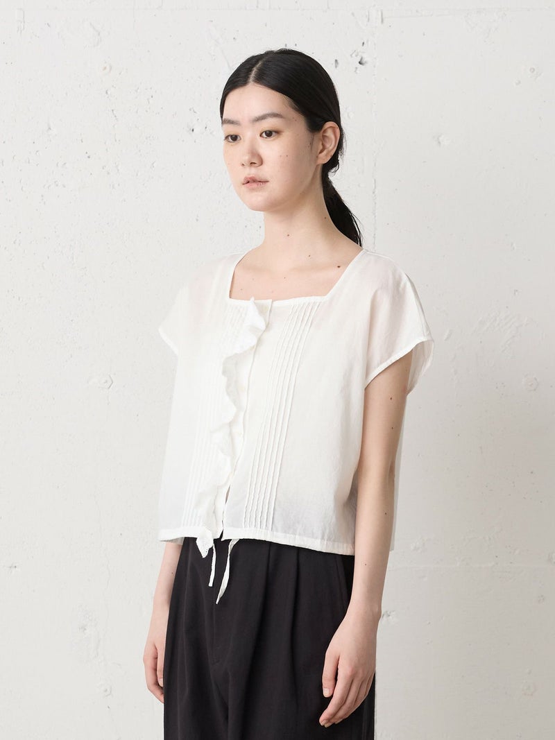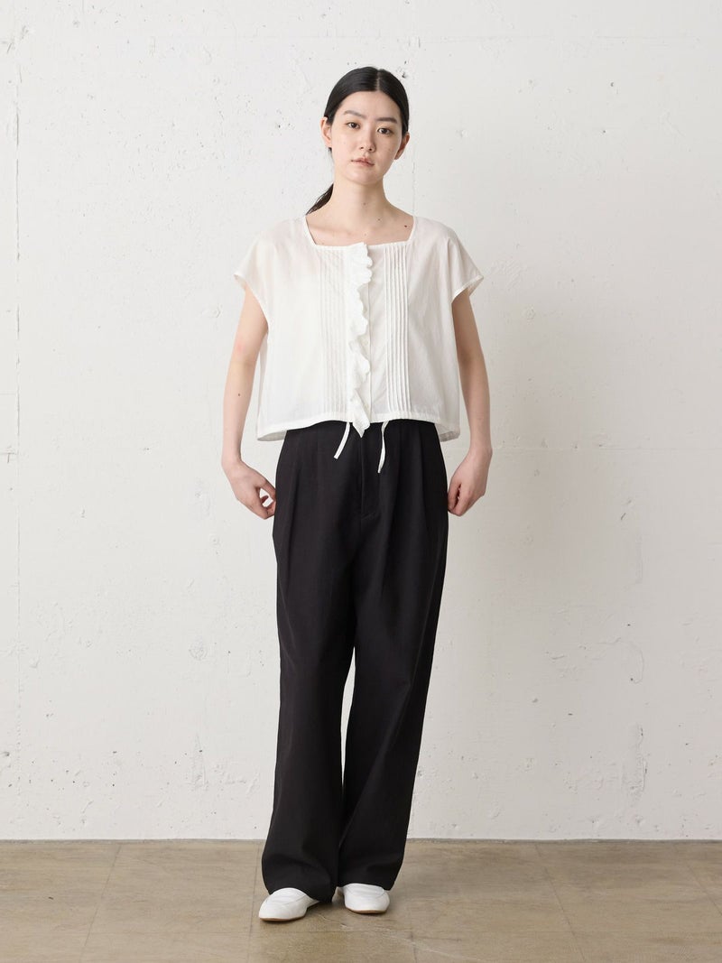 ローン×ヴィンテージライクエンブロイダリーレースで仕上げたピンタックレースベストです。前立てにレースをあしらったシャツベストで、ボーダーと着用したりノースリーブと合わせたりするのがお勧め。裾に施した紐を絞ってアレンジ可能。透け感があるのでインナー使いで重ね着を楽しんでいただけるアイテムです。季節の変化によって軽装にして印象的な着こなしを演出してくれるので長くコーディネートに取り込める1枚。同シリーズ1-730078/ピンタックレースシャツも展開。