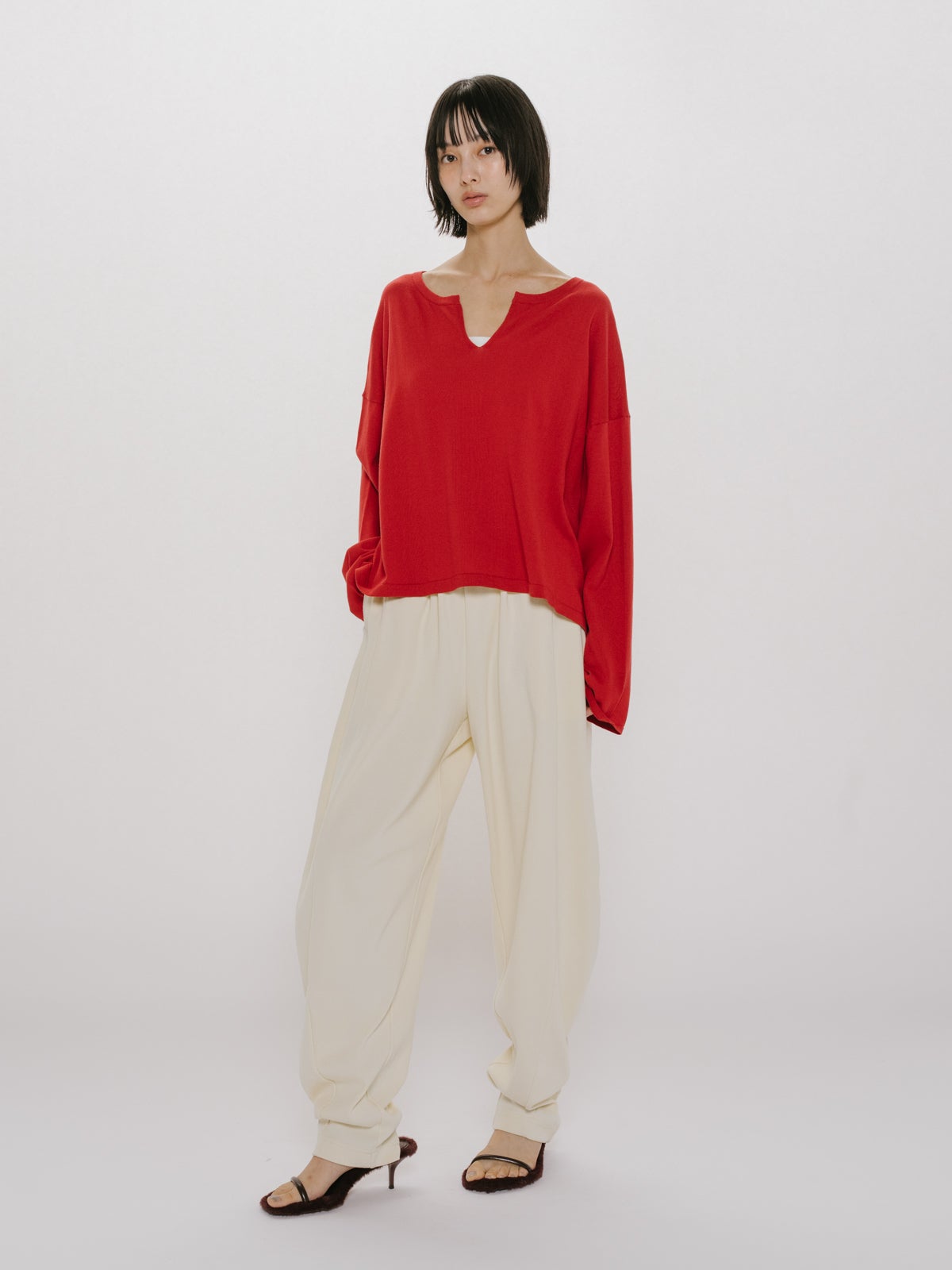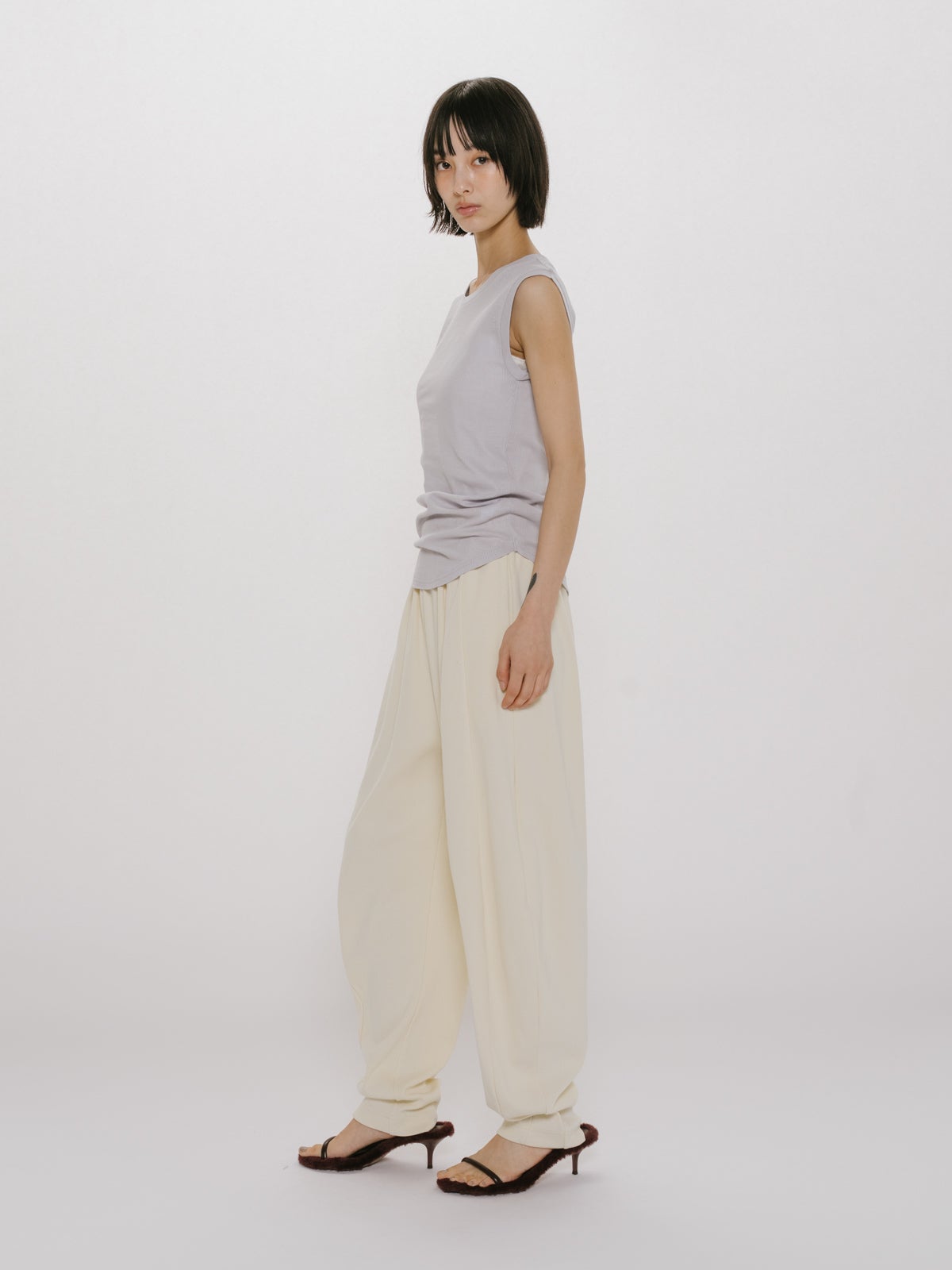 他の画像を見る MIDIUMISOLID for Ladies MIDIUMISOLID for Ladies リブイージーコクーンパンツ NEW 26SS price ¥ 16,280 税込 販売期間 2026/02/27 20:00 〜 カートに入れる お気に入りに登録する