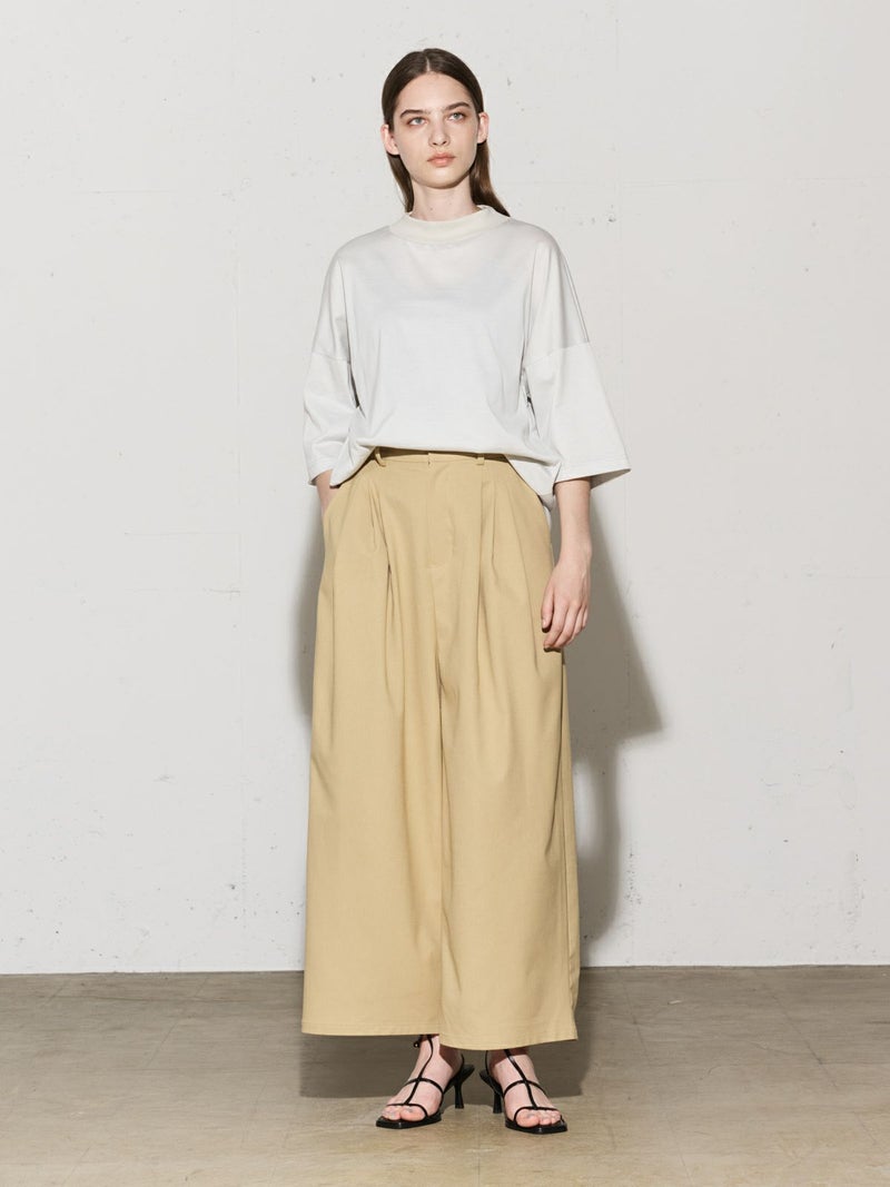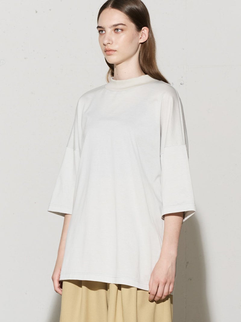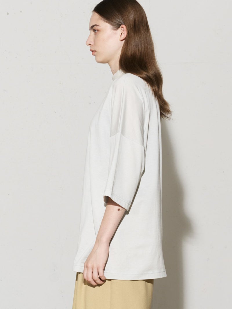 ギザコットンを使用したベーシックリラックスTシャツです。首回りの襟ぐりを太めにデザインした女性らしい1枚。七分袖のワイドな袖丈は切り替えを施したメリハリのあるデザインで通気性が良いのもポイント。ヒップの隠れる長めの着丈やゆとりの身幅を表現。シャツインにもおすすめでシンプルにコーディネートができるカットソーです。