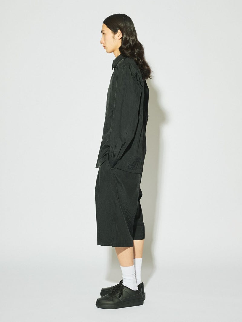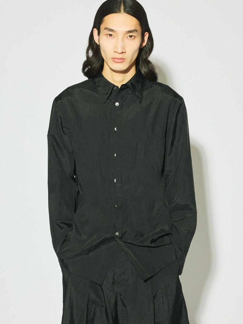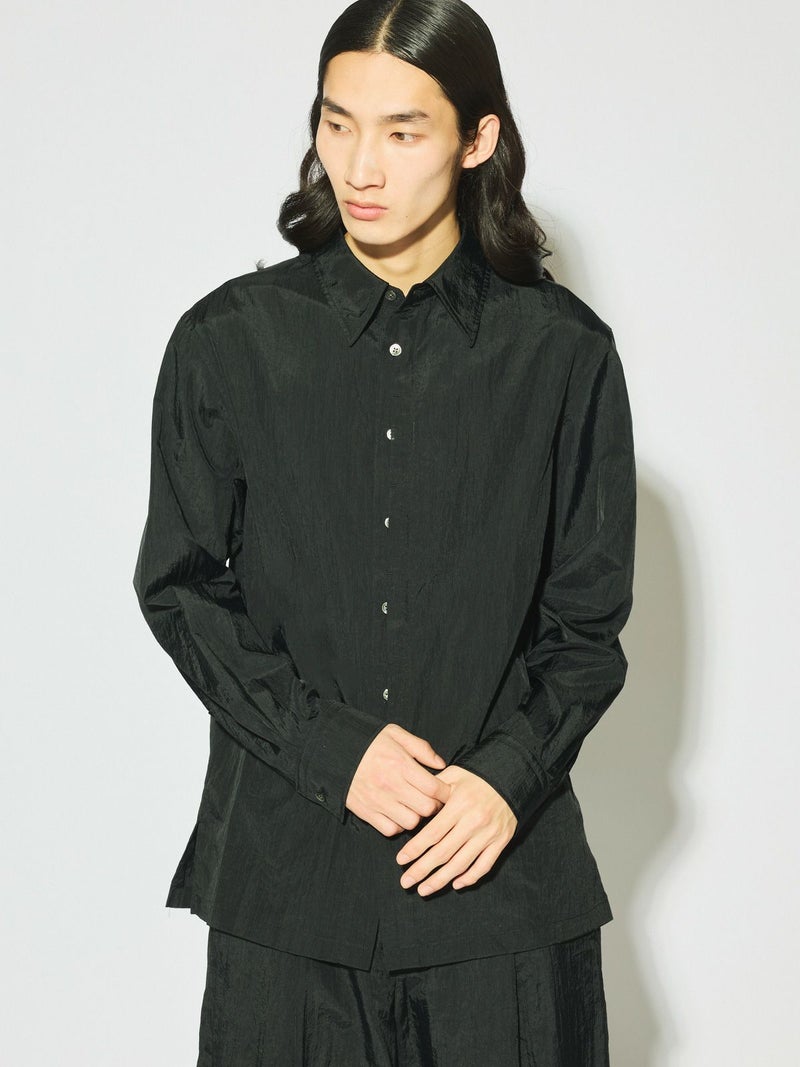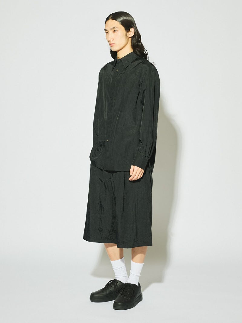驚くほど丈夫で耐摩耗性に優れ シワになりにくい特性を持っているフライフロントナイロンシャツです。レギュラーシルエットながらボタンが半分見える変形比翼が過度なデザインではなくワンポイントとして光る一着。インナーでも羽織としても優秀なシャツでシンプルに決まるコーディネートのしやすい1枚です。1-161013/ナイロンハーフパンツや1-161012/ナイロンカーゴパンツとセットアップで着用していただけます。