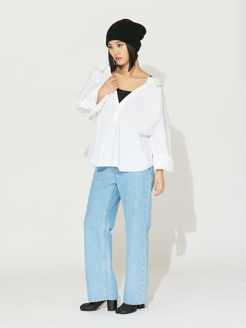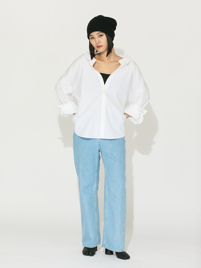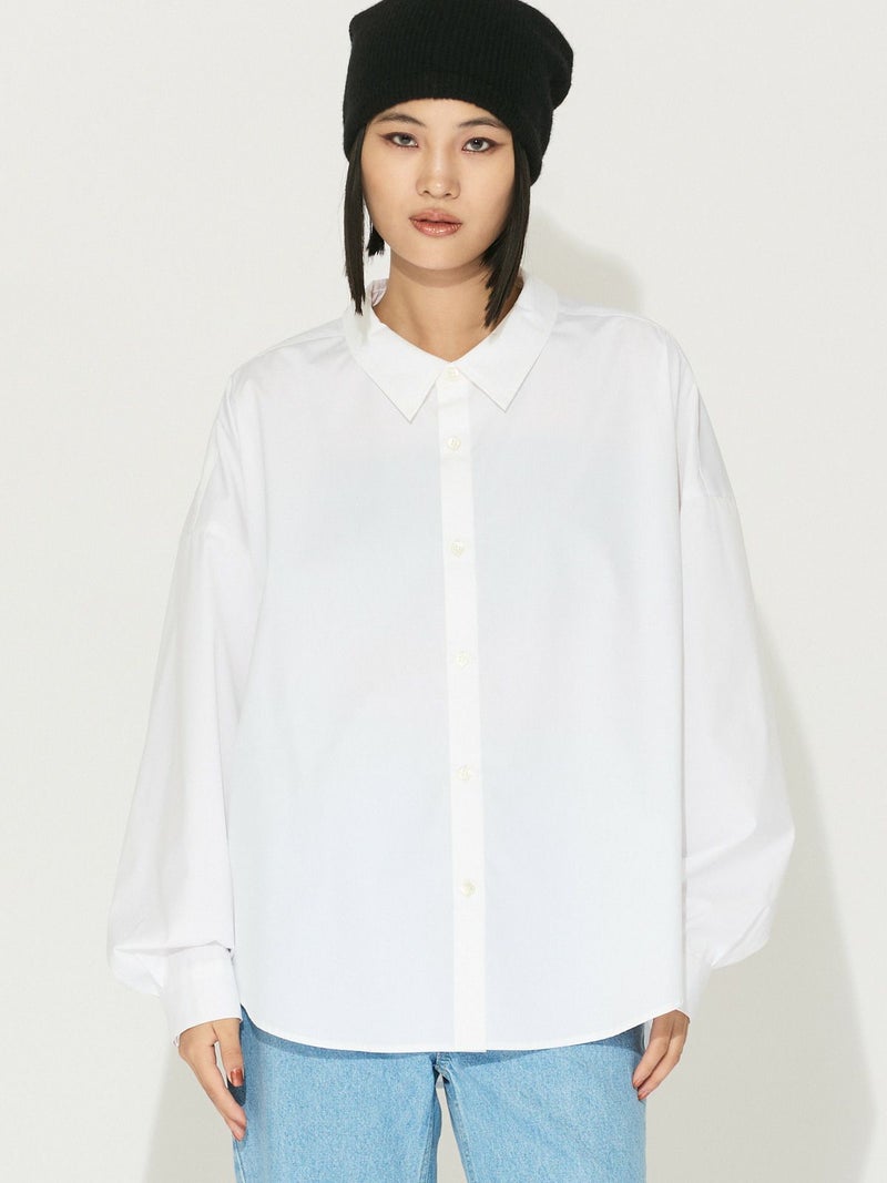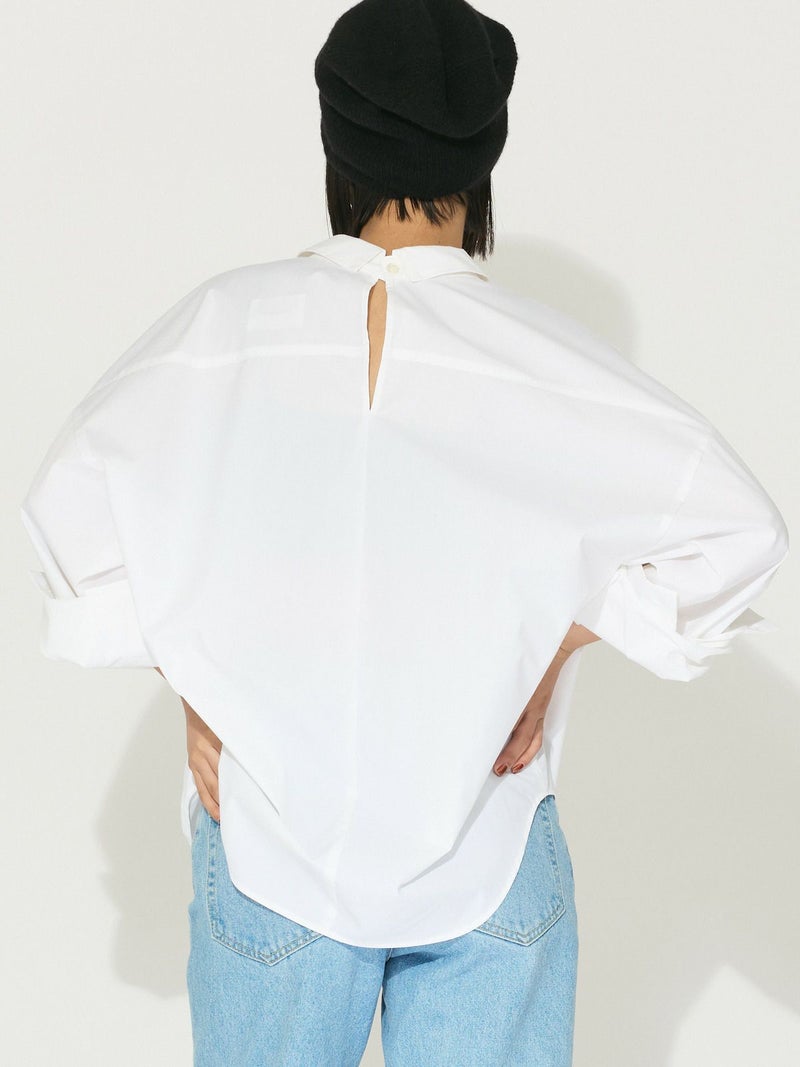 コットン×ポリエステルを使用したドロップショルダーワイドシャツです。接触冷感のサラッとした着心地が特徴。トラッドなデザインでシンプルに着用していただけます。背中ボタンを外して後ろをスリットも可能。抜きのある軽快さもポイントです。袖も曲げ、フロントを開けて羽織って着こなしていただける爽やかな1枚です。無地とストライプの3色で1-132190/バルーンシャツプルオーバーも展開。
