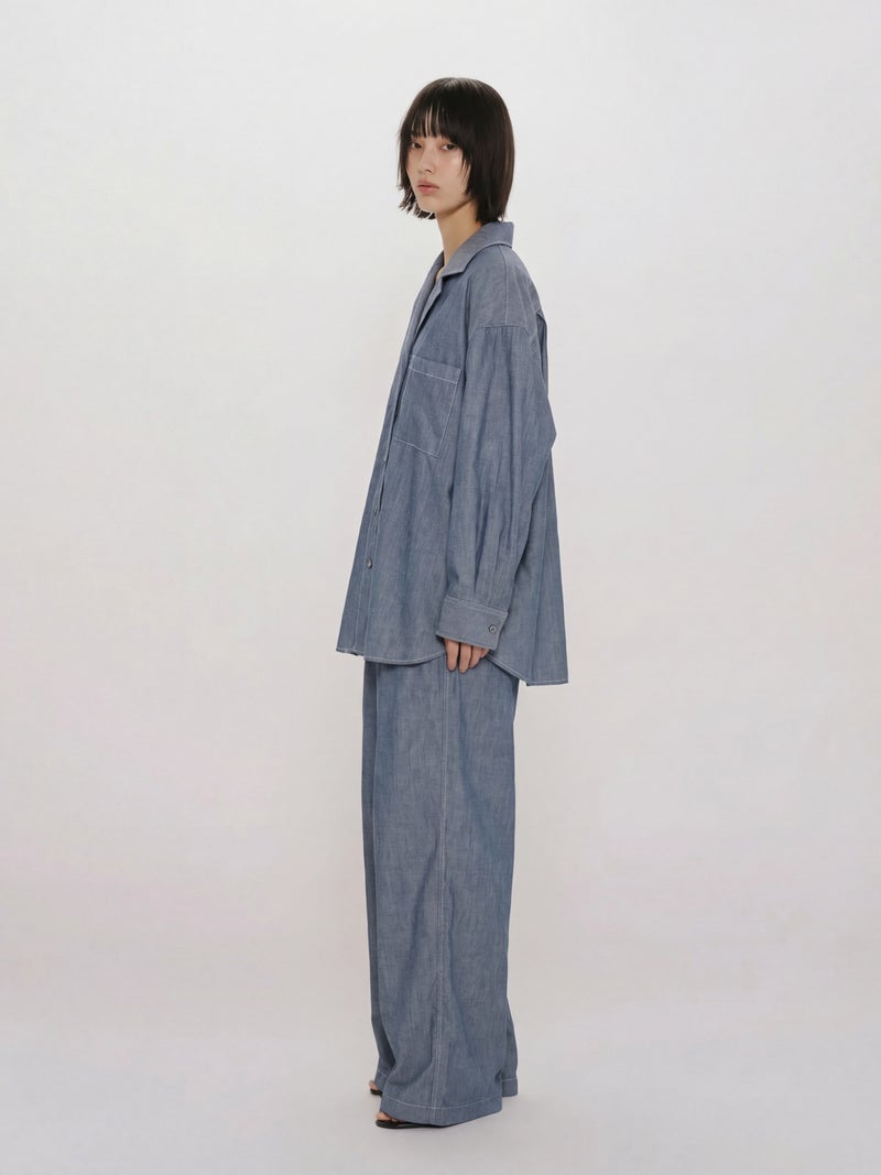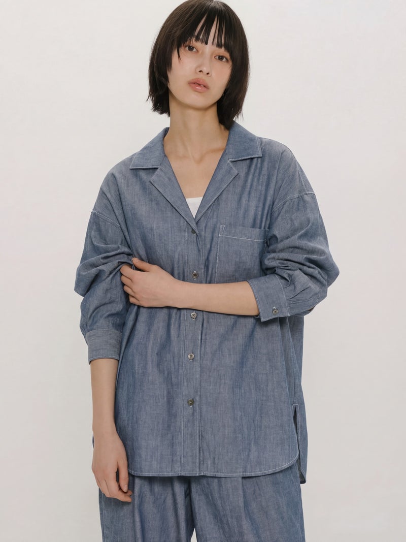 MIDIUMISOLID for Ladies MIDIUMISOLID for Ladies シアーデニムオープンカラーシャツ