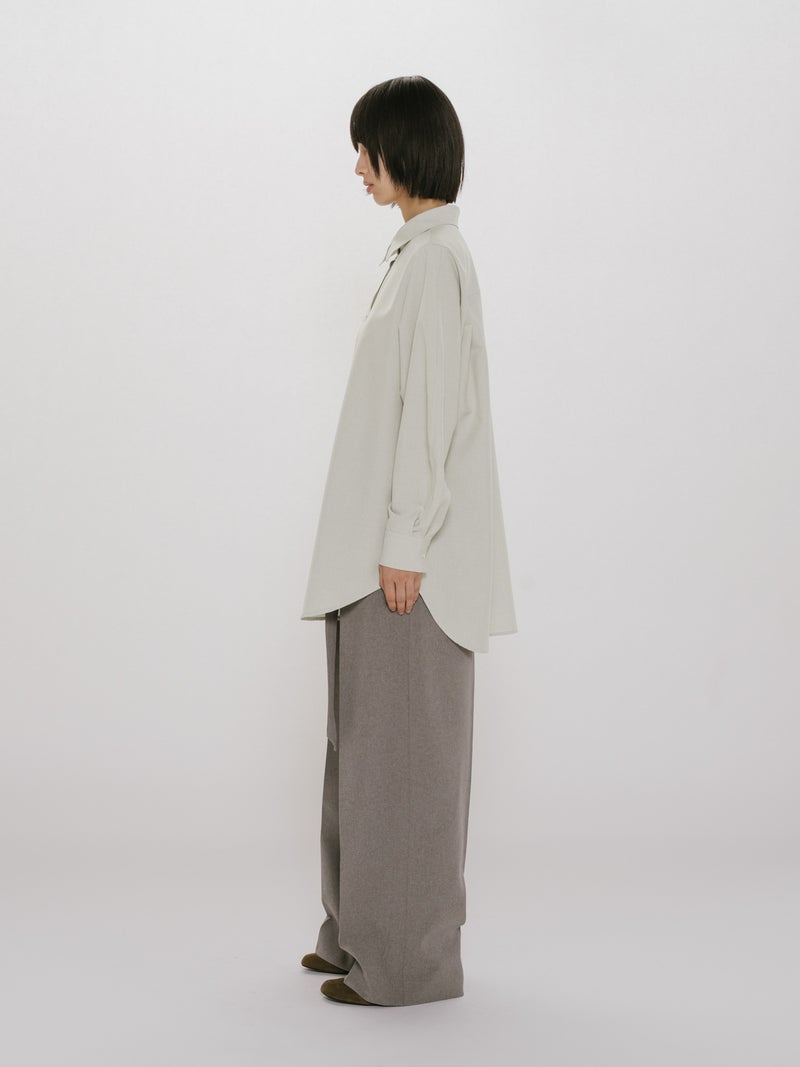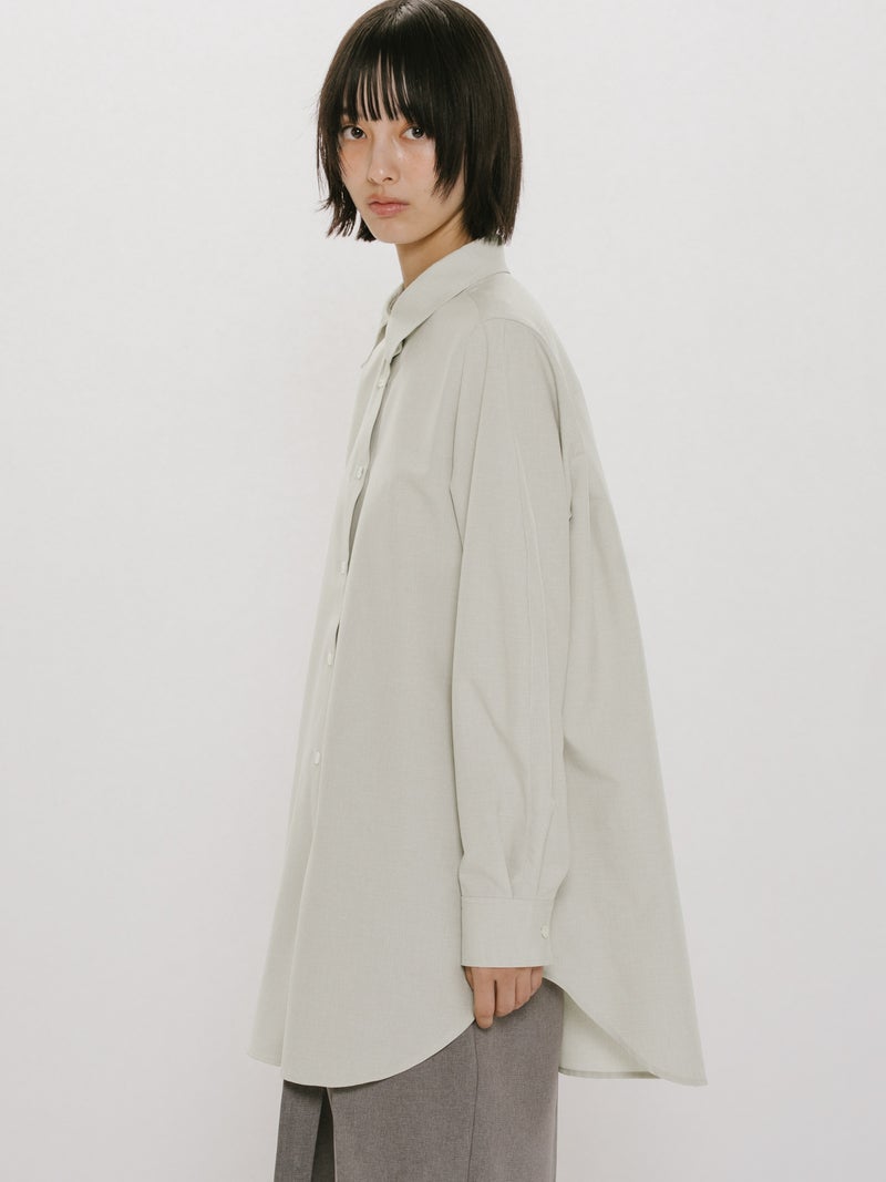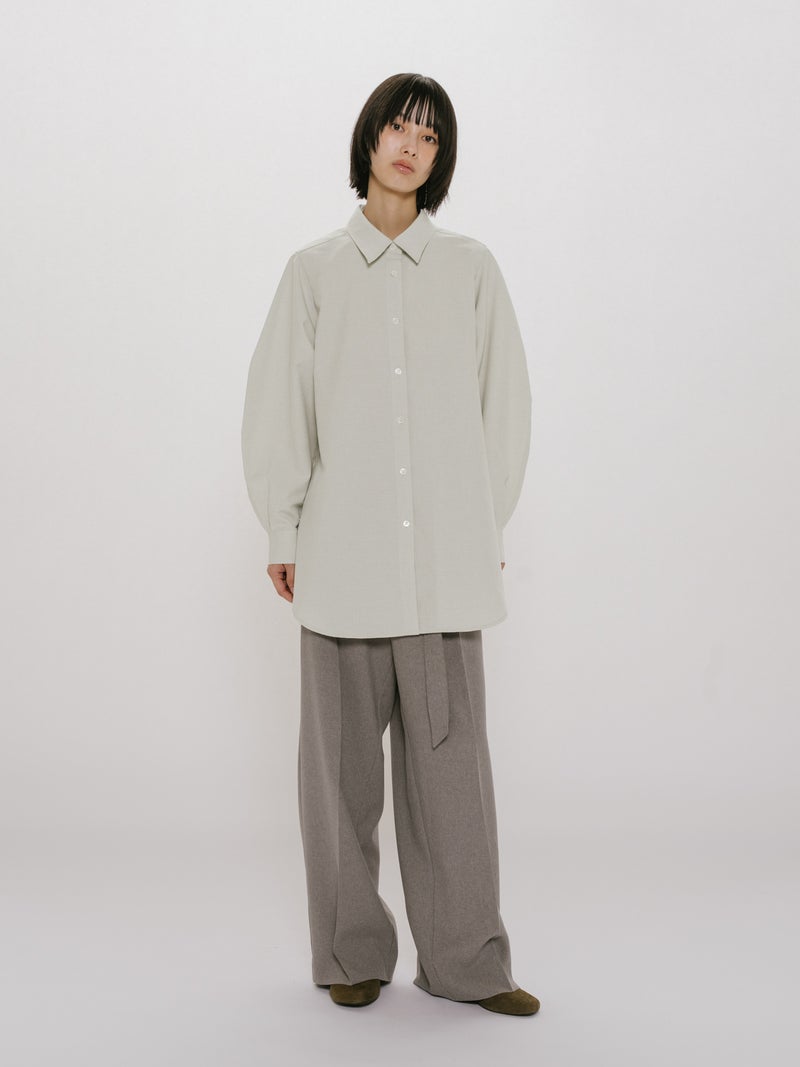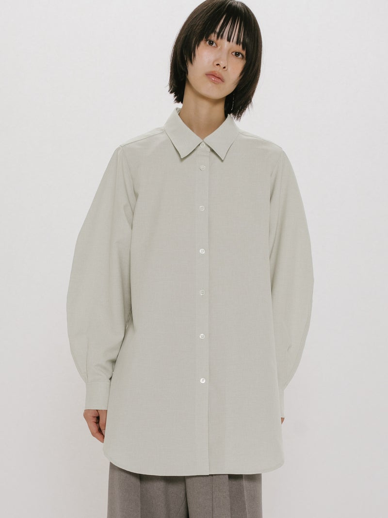 春の季節に合わせてシンプルなシャツコーデを演出できるボリュームスリーブシャツチュニックです。MIDIUMISOLIDの実績のある素材を使用しました。着心地のよいサラッとした肌触りで春の心地よさを体感していただける1枚。ボディーはスッキリした縦長のシルエットですが、袖を丸みのあるデザインに仕上げました。たくさんのシャツをお持ちの方にも他のシャツとは違うデザインを楽しんでいただけます。カラーは定番のグレージュ/チャコールグレーに加え春夏らしい爽やかなサックスの3色展開になっています。落ち着きのある上品なシャツチュニックです。同シリーズ1-152171/レイヤードキャミソールワンピースも展開。