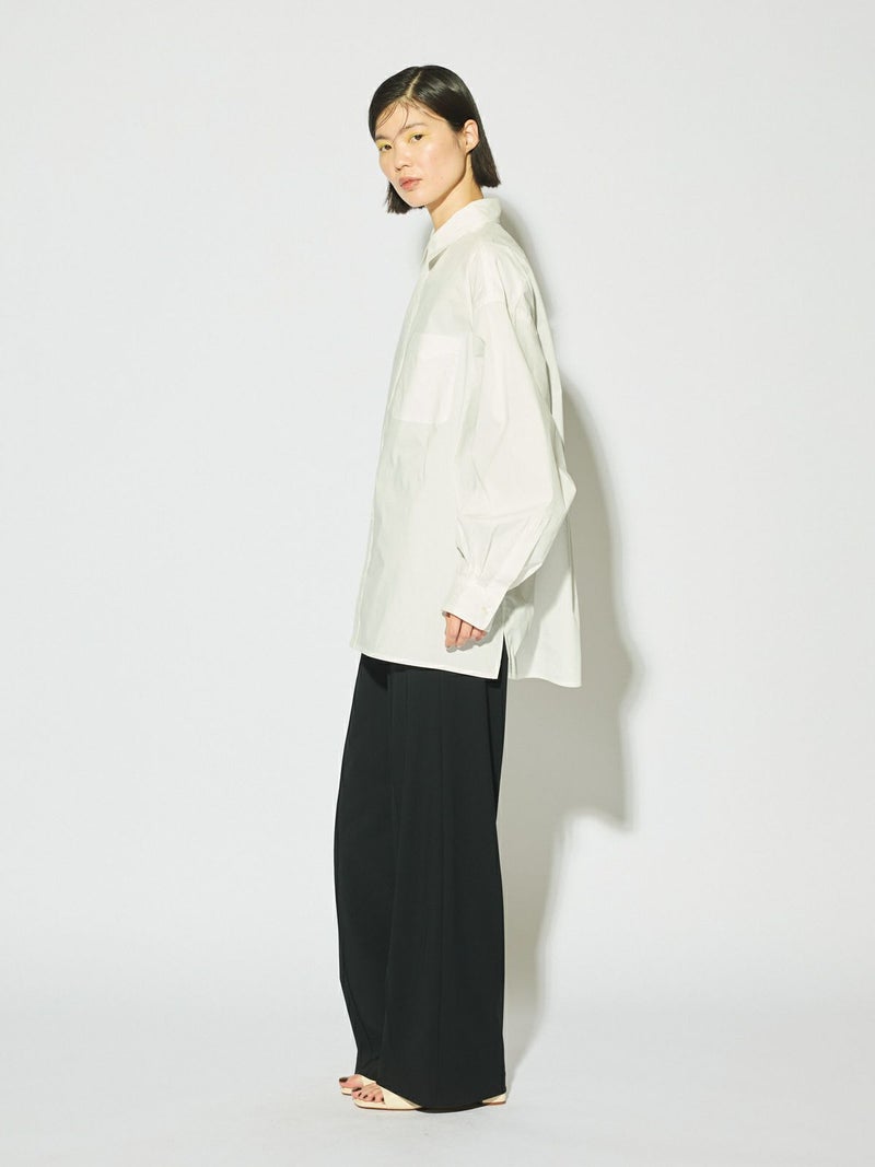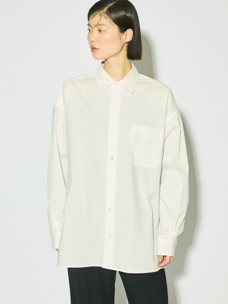 ドライタッチなボイル素材を使用したレギュラーカラービッグシャツです。薄手ながらコシがありしなやかな風合が特徴。通年使える素材なので長く愛用していただける1枚です。ゆとりのあるビッグサイズですがレギュラーサイズに落とし込み着用していただきやすいデザインに仕上げました。シンプルでベーシックに着こなせる今春お勧めのシャツです。