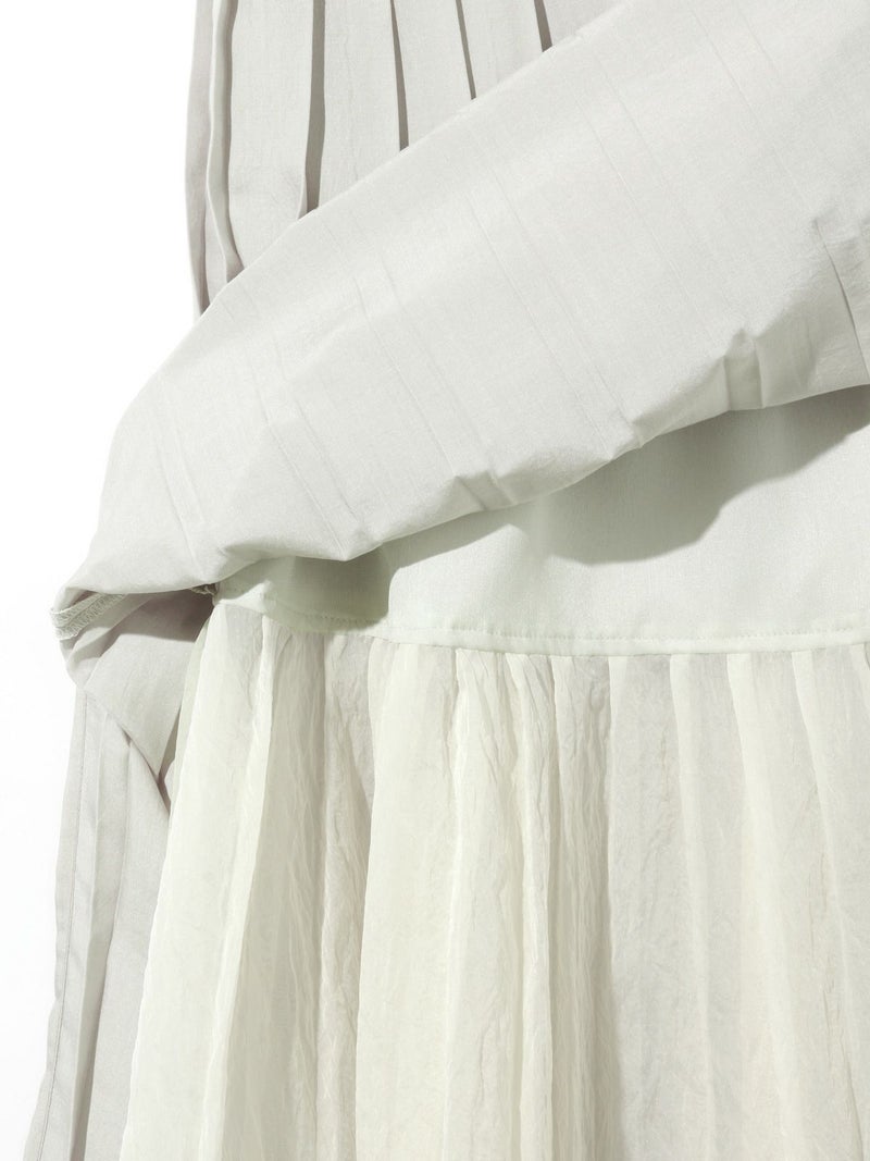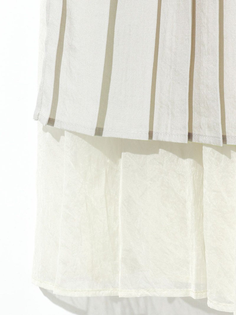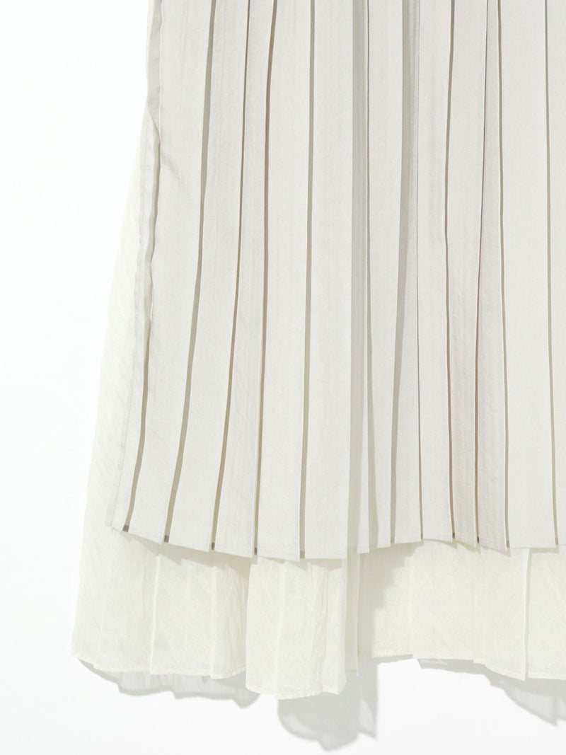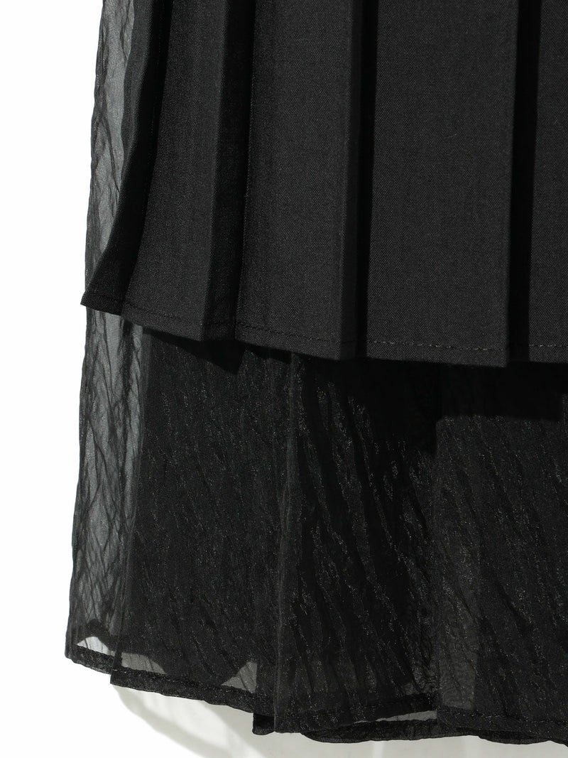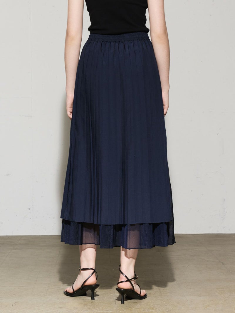 ストレートプリーツスカート×フレアオーガンジープリーツのデザインが魅力のチュールレイヤードプリーツスカートです。二重に重なった裾のデザインは透け感のある上品な大人の雰囲気を印象付けた清楚な1枚。歩いた時の揺れ感がきれいで女性らしい着こなしを演出します。ウエストはリラックス感のあるゴム使用。裏地付なので透け感を気にすることなく安心してコーディネートしていただけます。着回しのしやすい3色の落ち着きのある3色で展開。