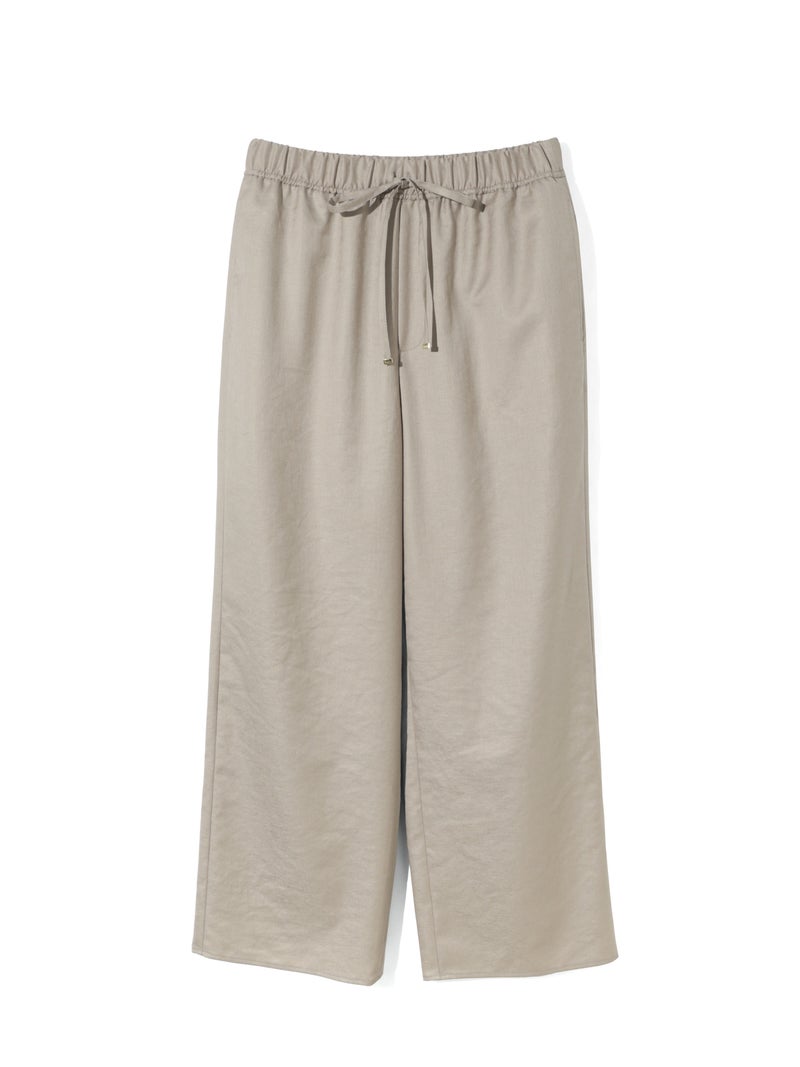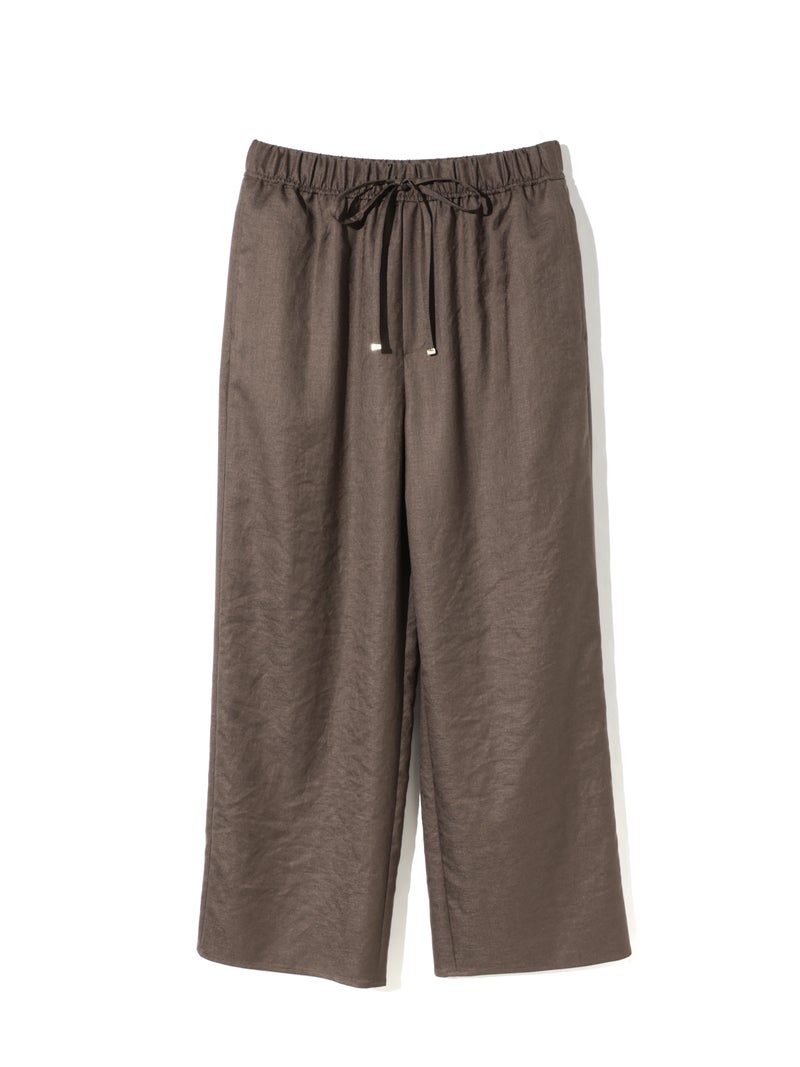 ベーシックなシルエットとデザインで幅広い方にコーディネートしていただきやすいストレートイージーパンツです。足元まですっきりとしたフルレングスのシルエットを表現しており足長効果のある1枚。オフホワイトのみ裏地付きで全色透け感なく安心して着用できます。ウエストゴムに加え調整紐が付いたデザインなのでキープしやすく、リラックス感のあるところもポイント。サラッとした着心地と落ち着きのある女性らしいパンツスタイルを印象付けたボトムアイテムです。