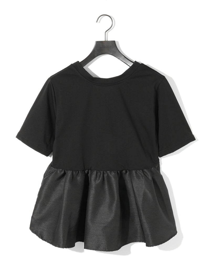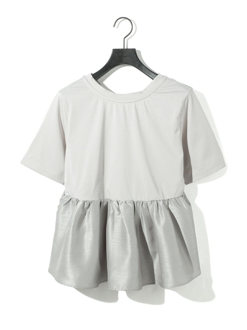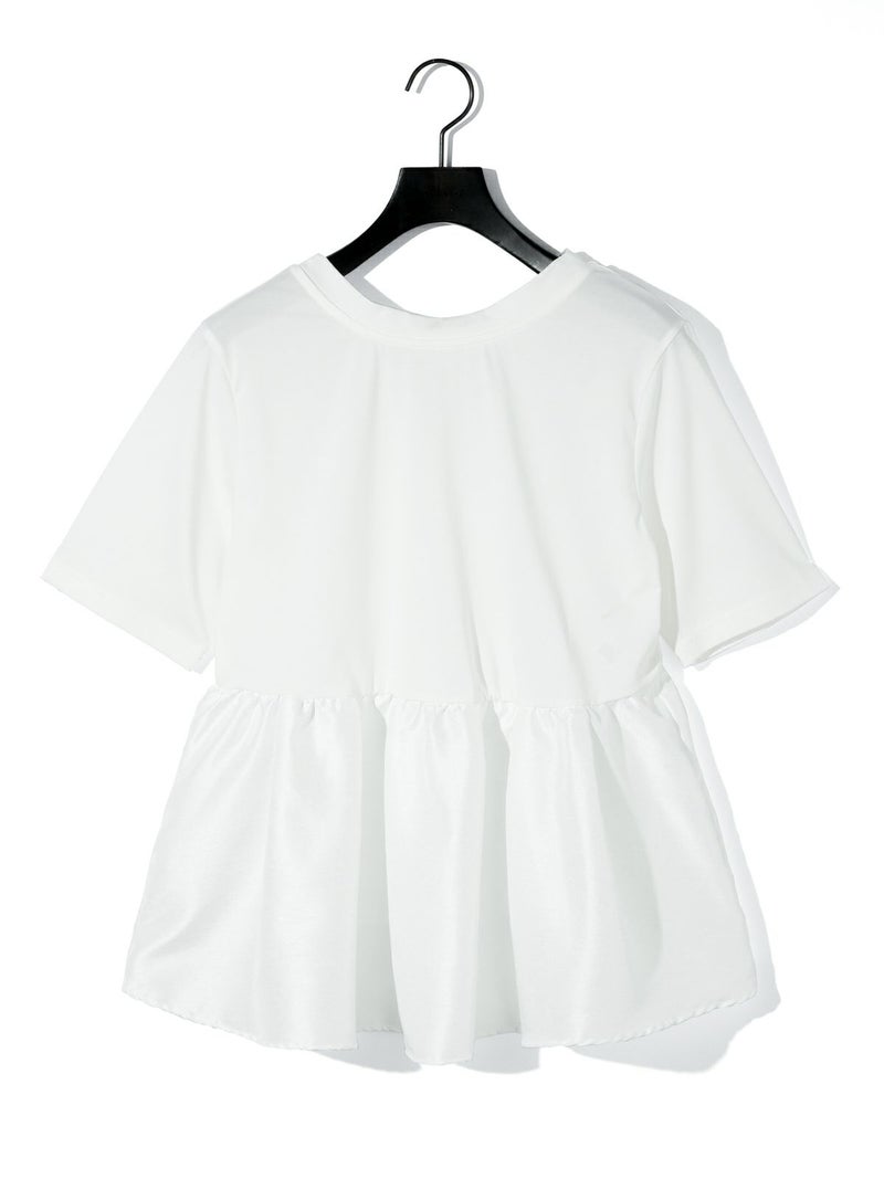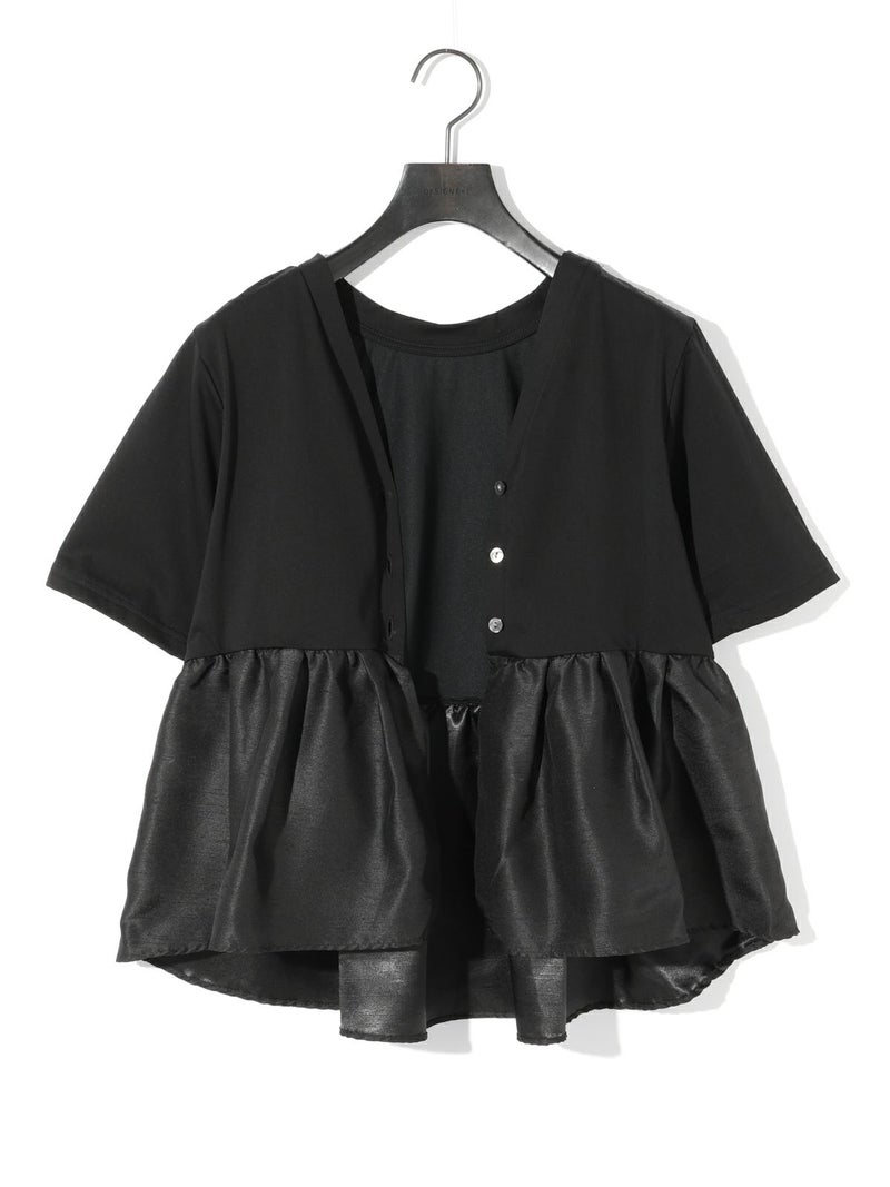 2WAYの着こなしが可能なウーブン切り替え2WAYペプラムが再入荷しました。トップはキレイ目カットソーと胸下からサテン生地に切り替えを施したモード感のあるギャザーをフレア風に工夫した女性らしいデザインを演出。前開きでカーディガン使用にできる着こなしとプルオーバーシルエットを表現しており、オシャレの幅が広いアイテムになっています。着回しのきく3色展開です。