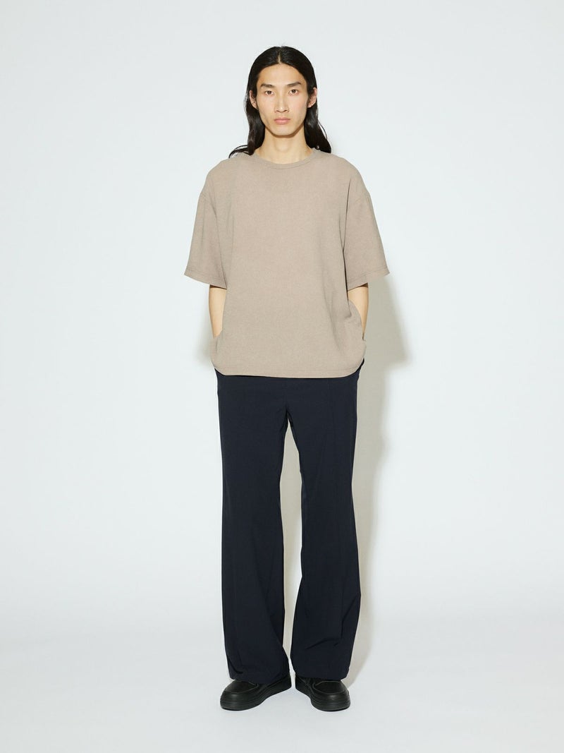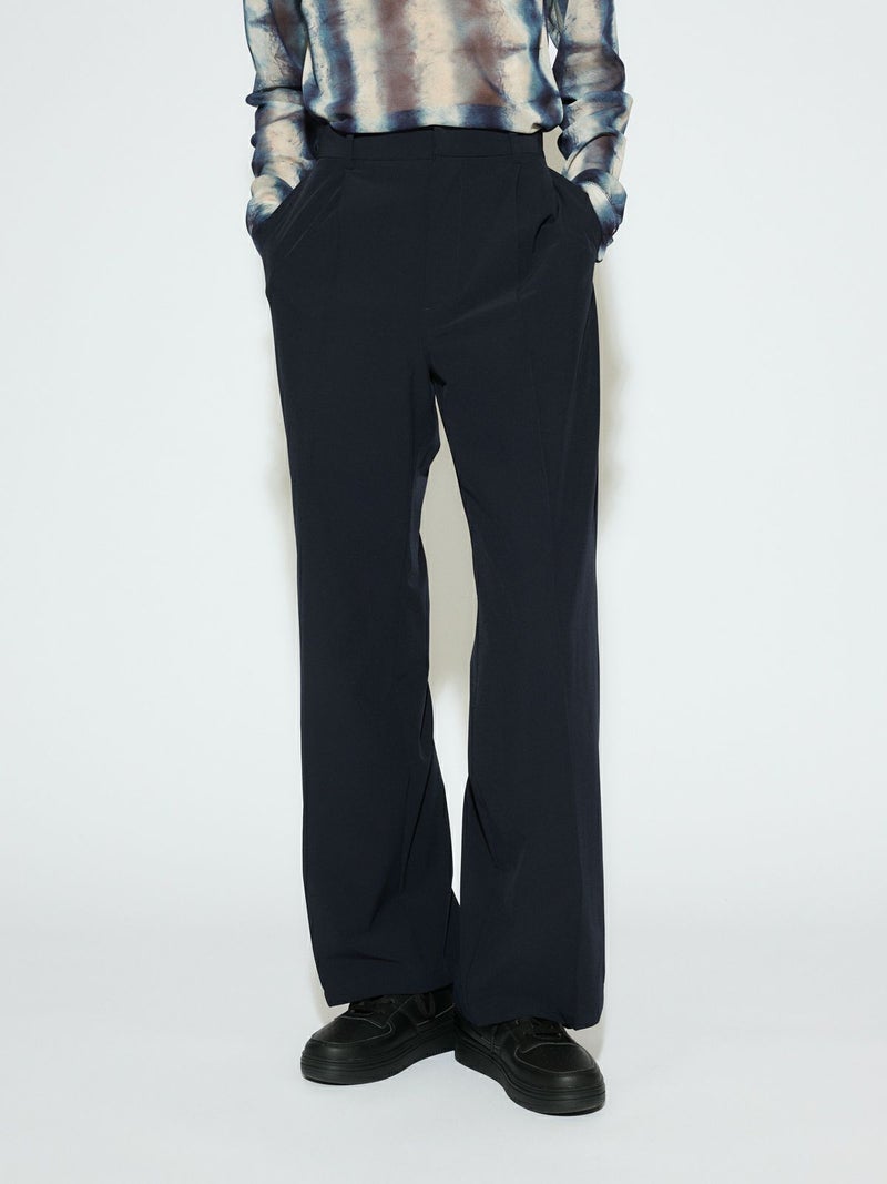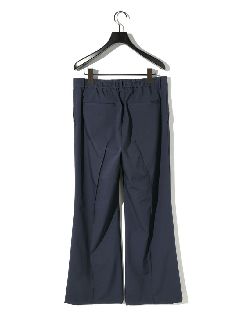 4WAYストレッチ素材(吸水速乾性、撥水機能性素材)を使用したストレッチフレアパンツです。ややフレアなシルエットでスポーティさもありつつきれいに穿ける1枚です。ウエストはバックゴムを入れベルト使いのできるデザイン。シャツインも素敵でシンプルに決まるパンツです。着回しのきくネイビーとブラックの2色展開。同シリーズ2-135020/ストレッチジップシャツとセットアップも可能。