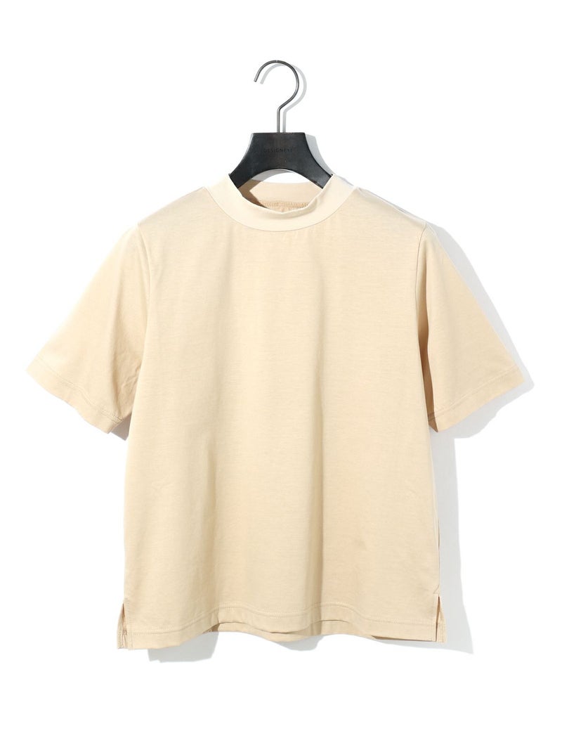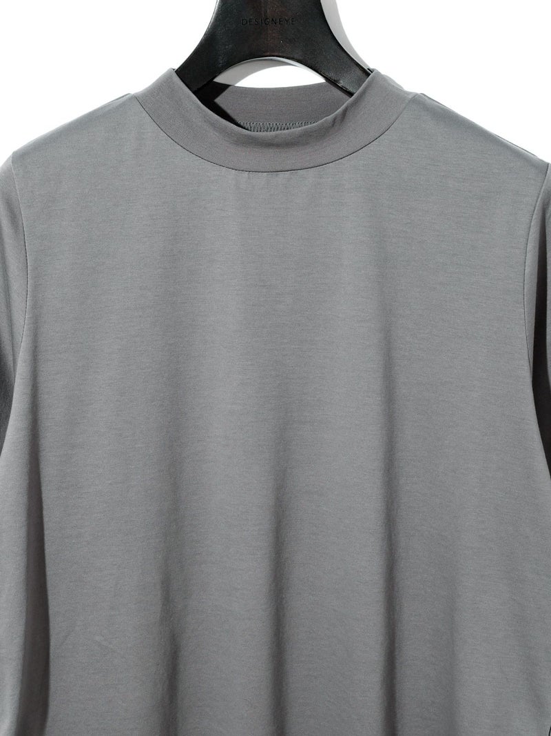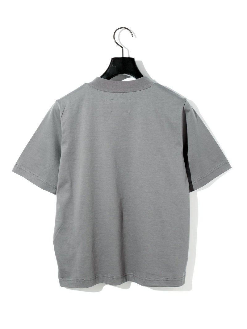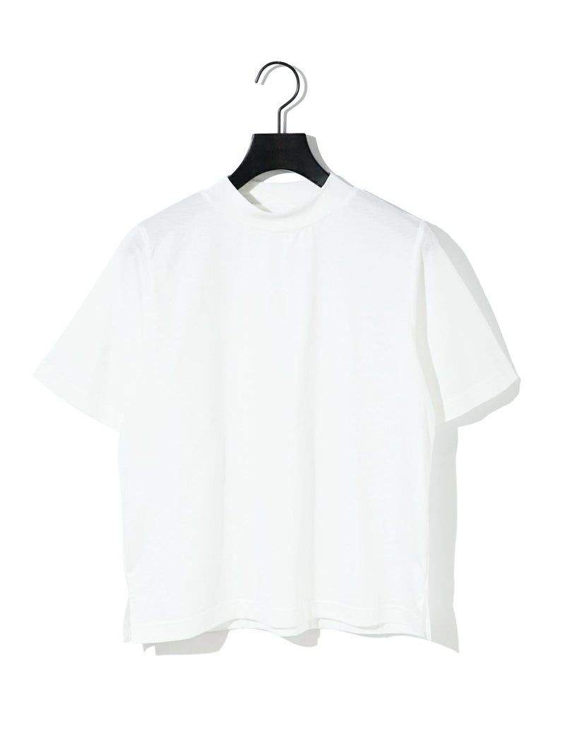 MIDIUMISOLID実績のあるコンパクトTシャツが今季も新色と取り入れ再入荷しました。高級綿である超長綿のコンパクトヤーンを使用。毛羽が少ないシルクのような光沢の天竺で、洗濯耐久性に優れたイージーケア素材です。接触冷感性も有るので夏の暑い時期にお勧めの1枚。伸びっぱなしにならないよう、襟にはキックバックのあるPU混のリブを使用。素材の特性を活かしたボトルネックのシンプルで着やすいTシャツです。
