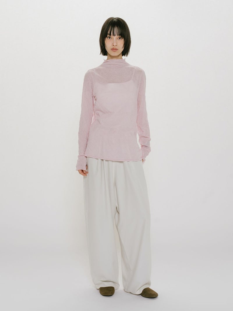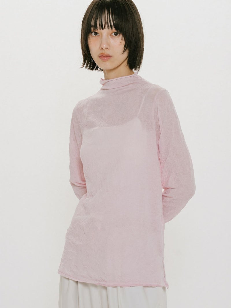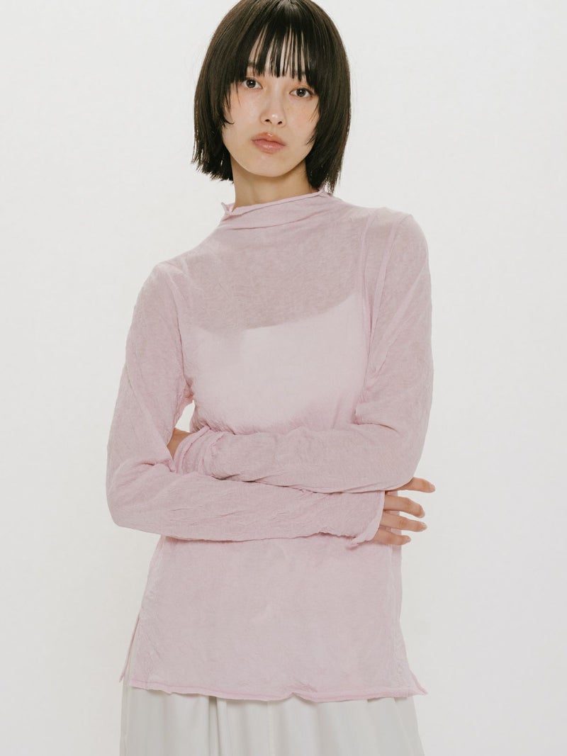 定番商品でもあるシアーハイネックインナーが色展開を春カラーにして入荷しました。MIDIUMISOLIDではリピート率が高いアイテムでインナーとしても非常に優秀。天然ジワの様なワッシャー天竺が特徴。大人の雰囲気を表現したちょうどいい透け感でしっかりテンションもあるので非常に着心地の良いのもポイント。色味のアクセントもきいたコーディネートを表現できる1枚です。