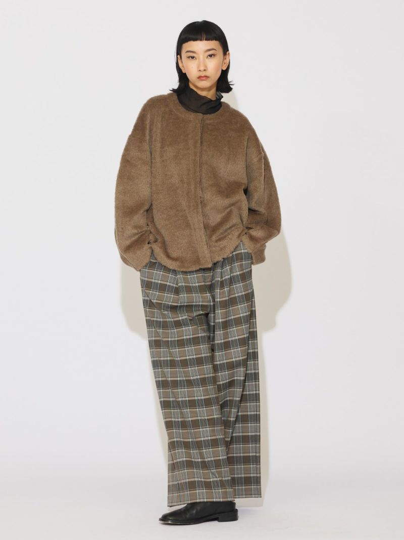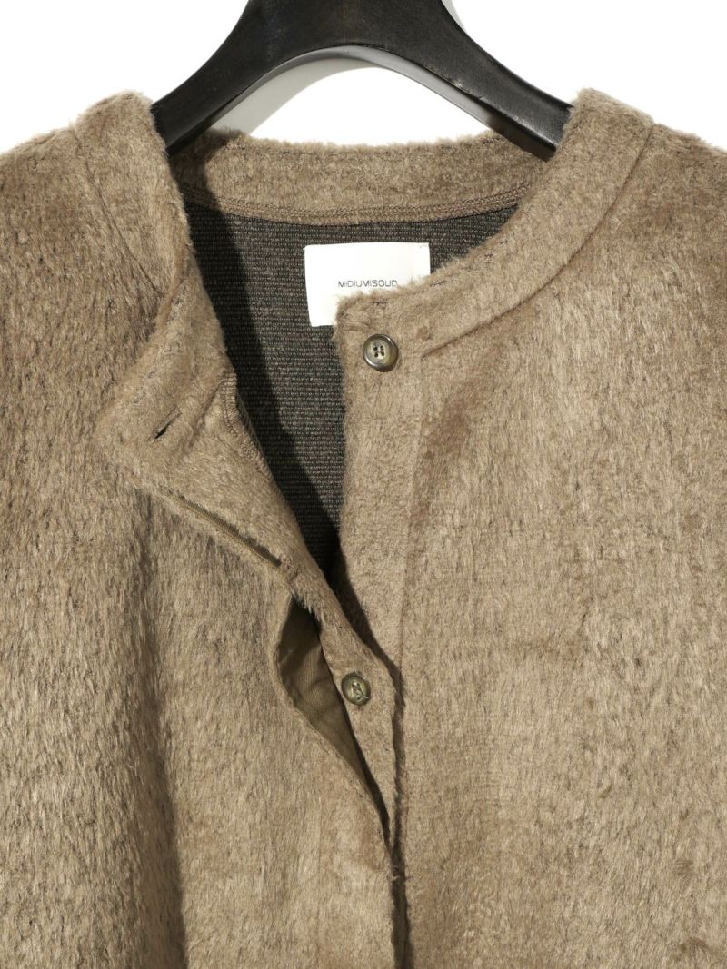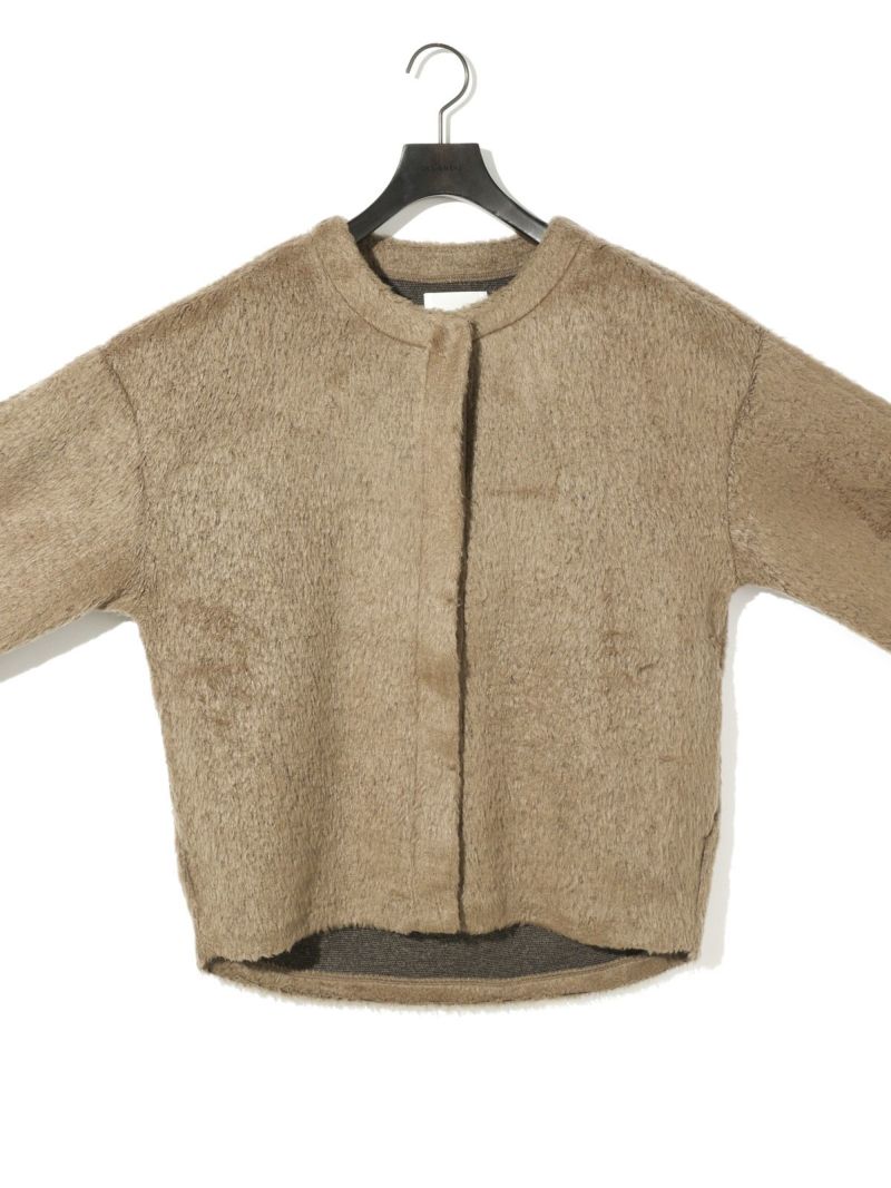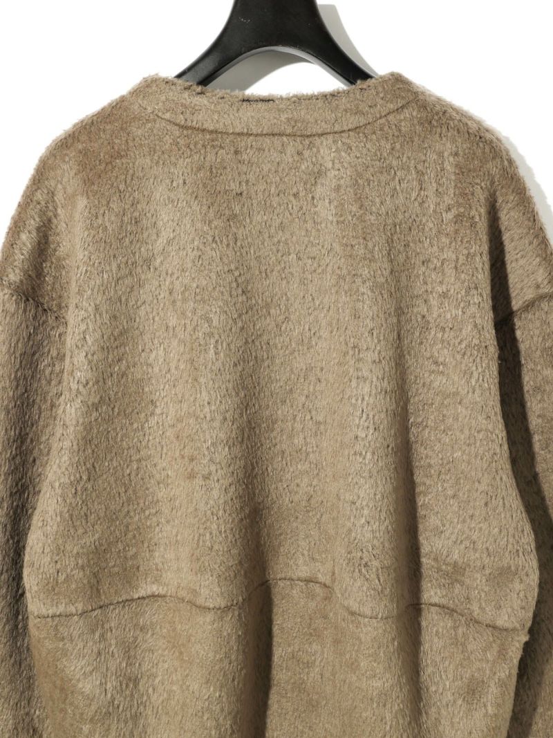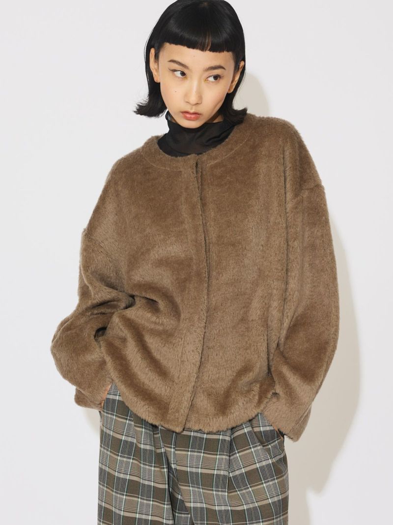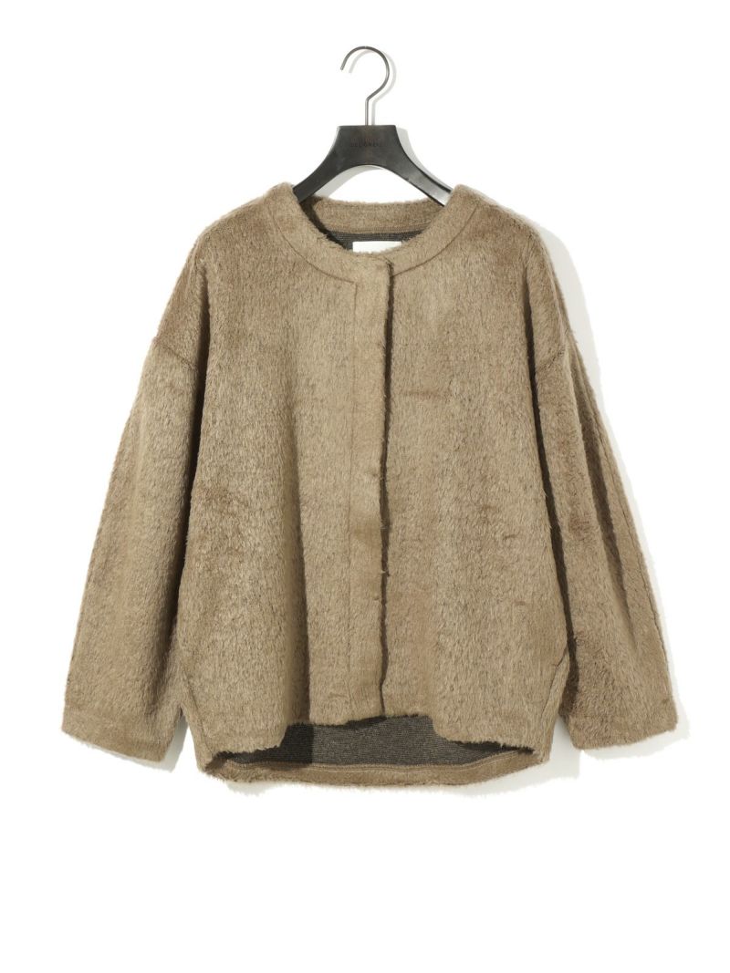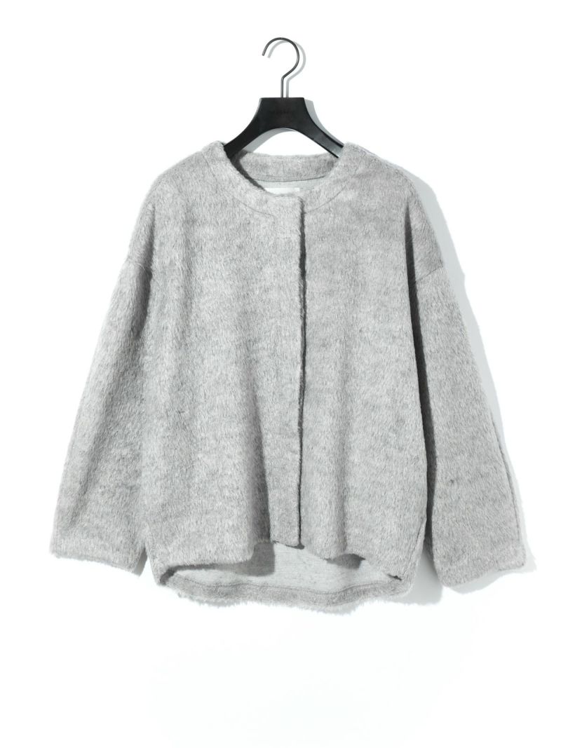 毛足の長いシャギーニット、スライバーニット素材を使用したコクーンラウンドカーディガンです。すっきり感のある比翼ボタンのデザインが上品な雰囲気を演出した温かな羽織りアイテムです。昨年から展開しているデザインで、今季はコンパクトにスタイルチェンジをしました。前後差を付けた裾ラインはバックが長く丸みのあるシルエットを表現。ゆとりのあるサイズ感なので中にも着こめるサイズ感です。ふんわりとした優しいぬくもりが魅力の1枚です。