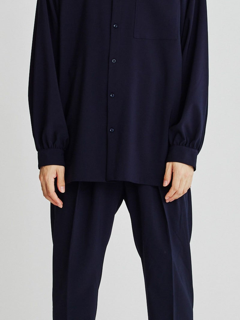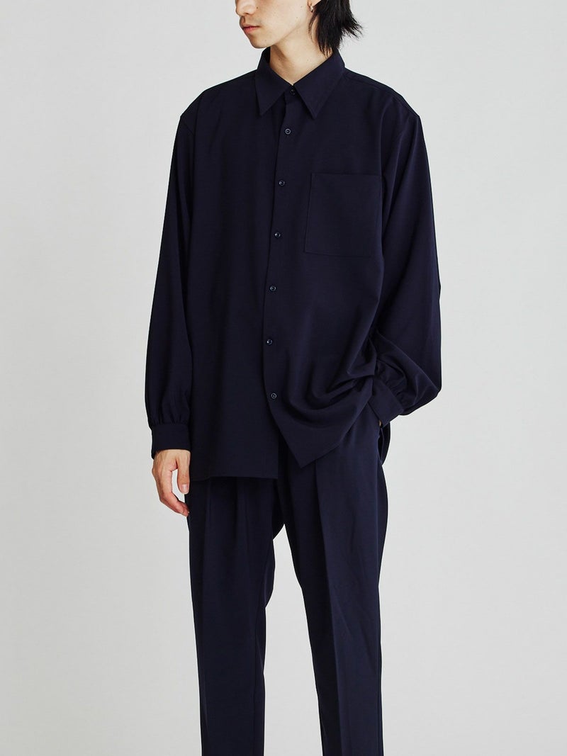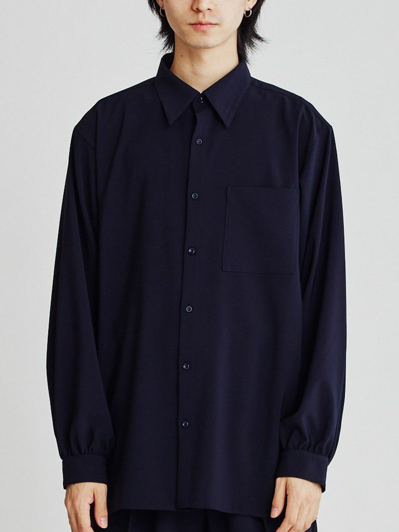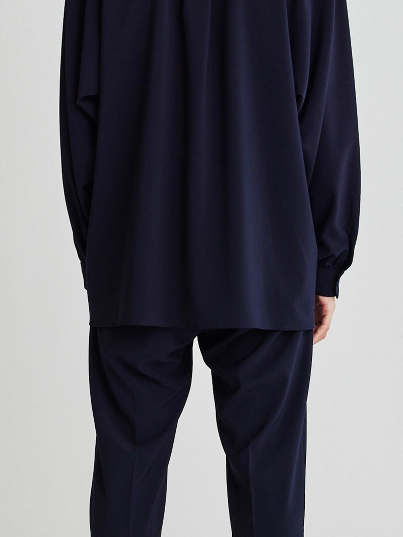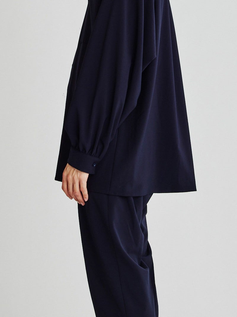 アームホールを広く取り、ボリュームのあるギャザースリーブが特長。テロンとした光沢感のある上品な素材です。