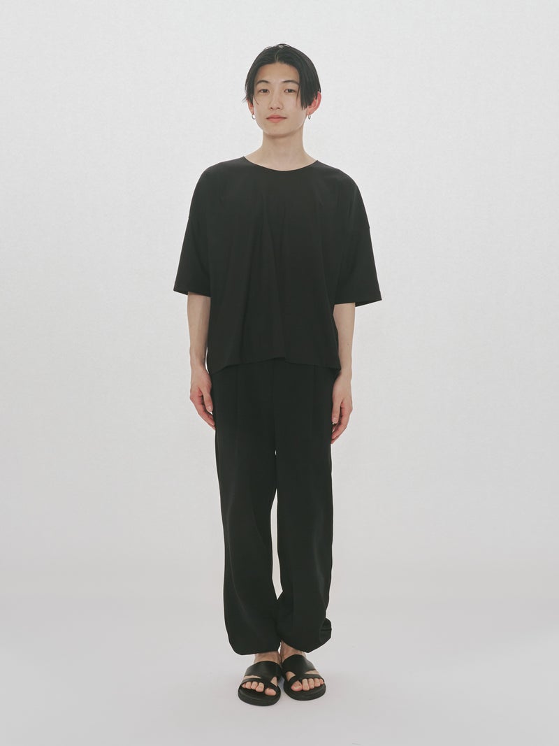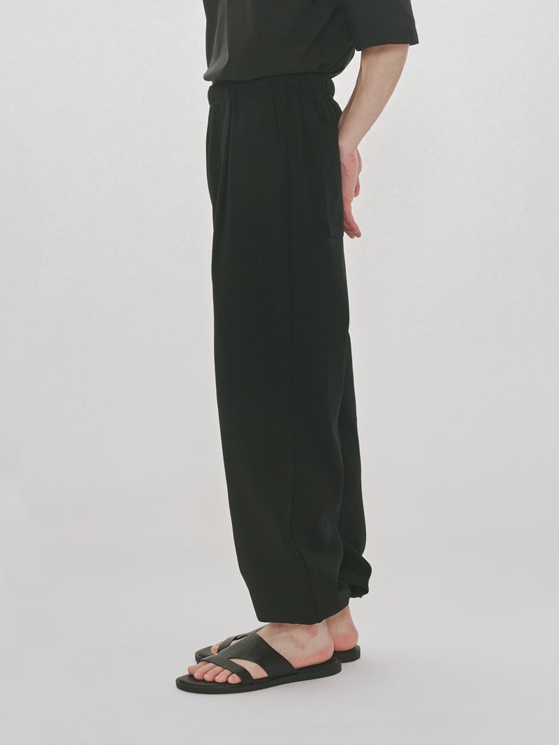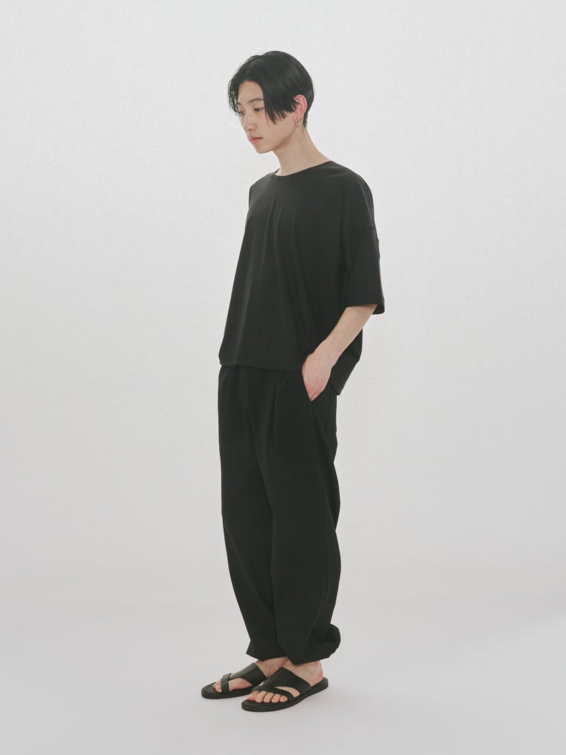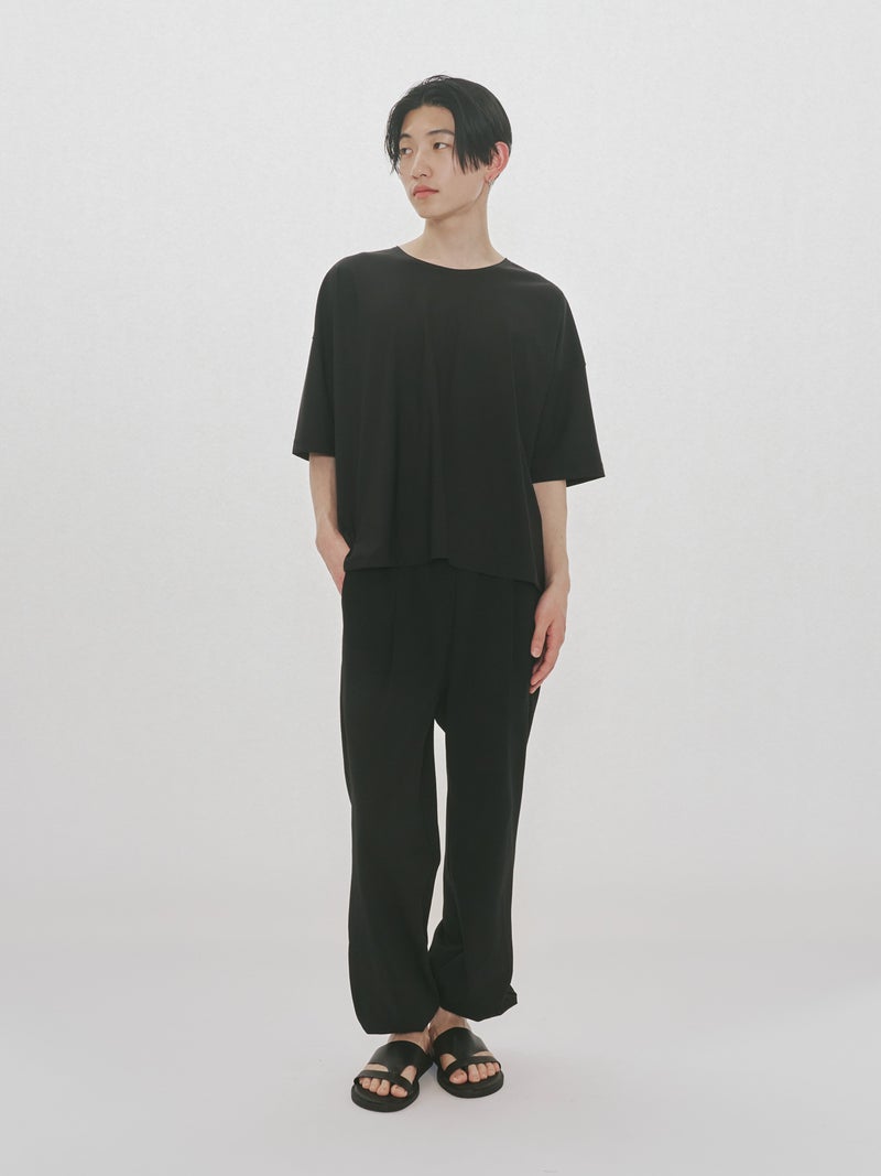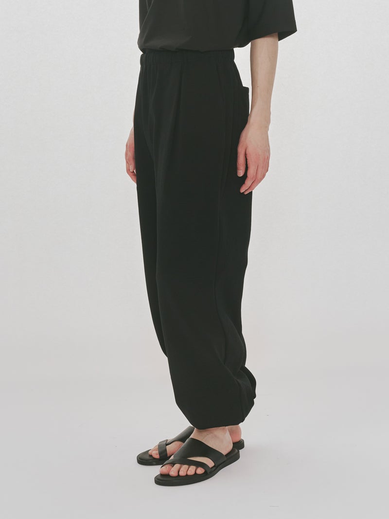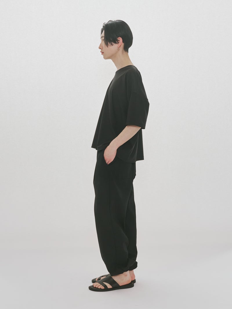 スポーティにコーディネートができるジャージーイージーパンツです。太すぎず細すぎないシルエットが特徴。裾口はゴム使用になっておりワンクッション靴にかかる丈でもよく、メンズアイテムにはなりますが、女性の方にも着用可能。ウエストはゴムに加え中紐が付いているのでウエストキープのしやすい調整可能なデザインです。メッシュ生地の裏地付きになっているので通気性が良いのもポイント。サイドとバックポケットが付いています。気軽にオシャレに穿きこなせる1枚です。