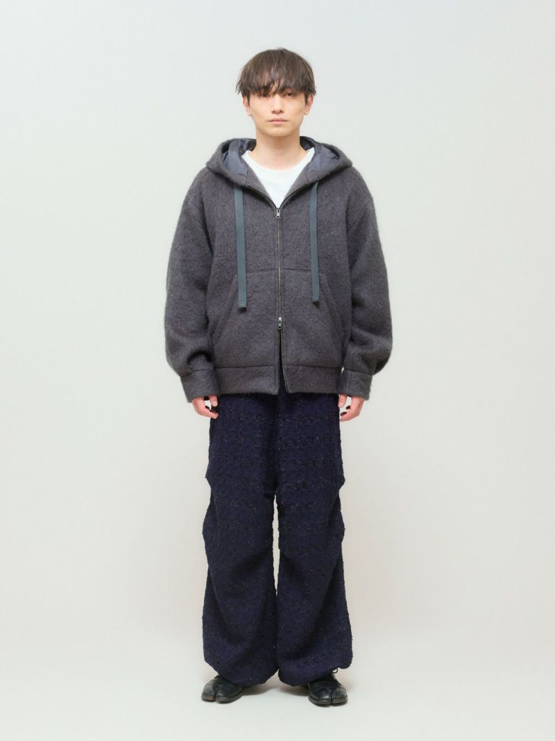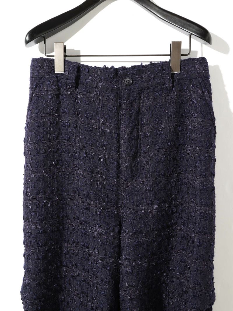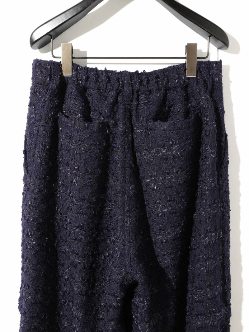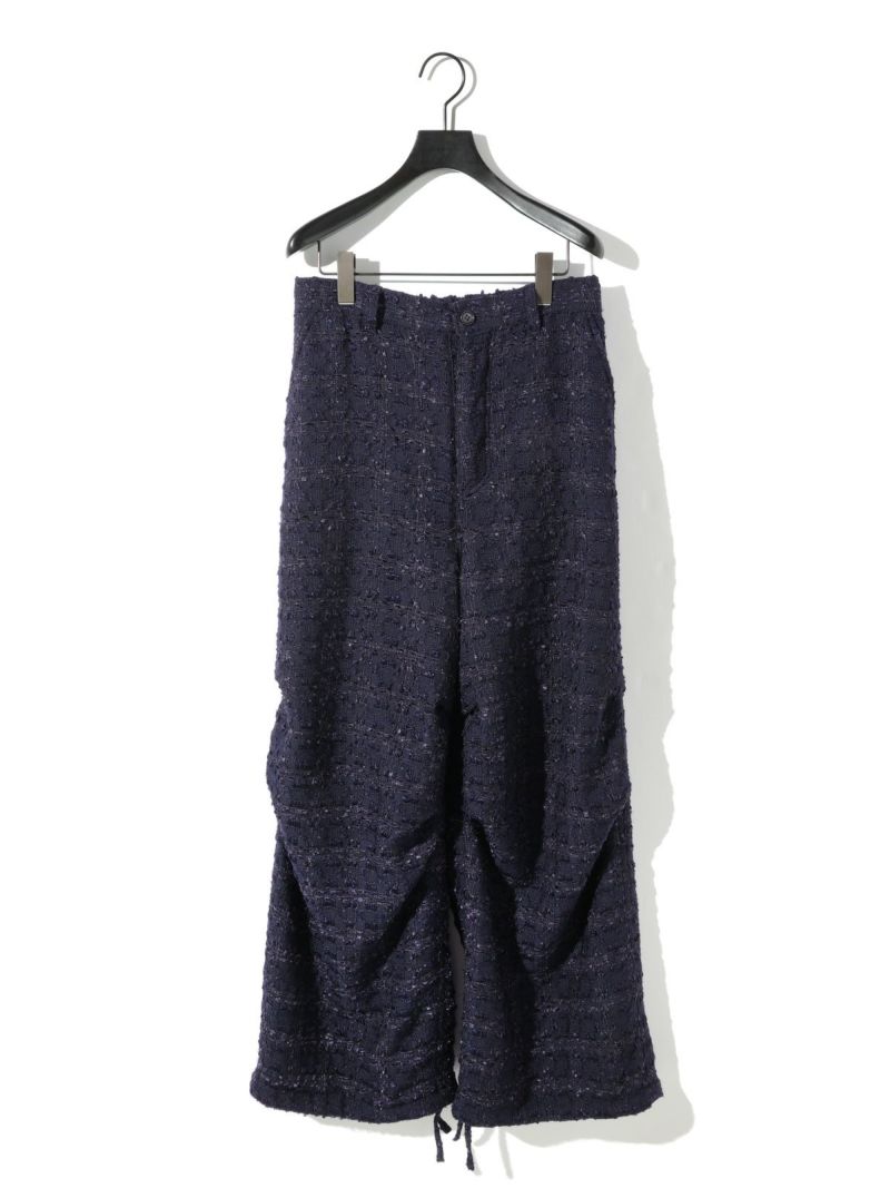 温か味のあるツイード素材を使用したブライトツイードパラシュートパンツです。膝にタックを施した動きのあるデザインパンツ。ウエストは後ろゴム使用、ベルト使いが可能のデザイン仕上げ。裾にドロストコードが付いているので好みで絞りをきかせることができます。総裏地付き。秋冬定番のツイード素材なので長く愛用していただけます。印象の異なる2色のカラー展開。同シリーズ3-131024/ブライトツイードブルゾンも展開。
