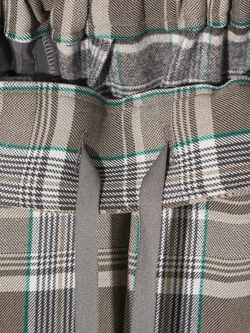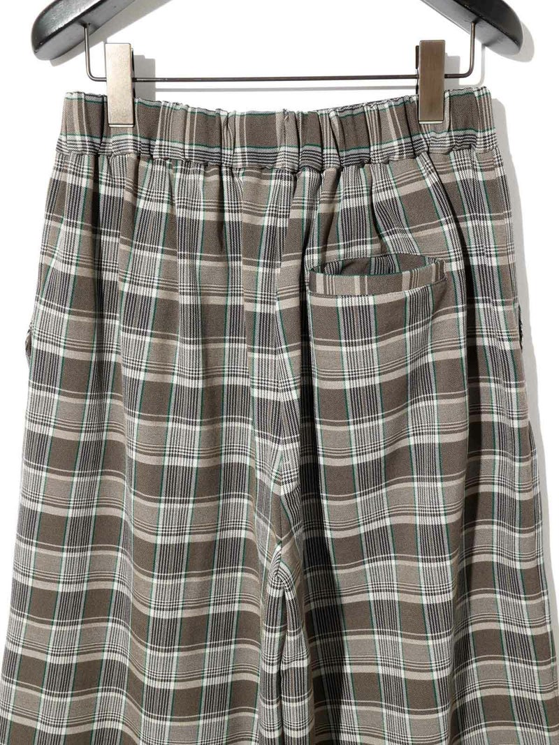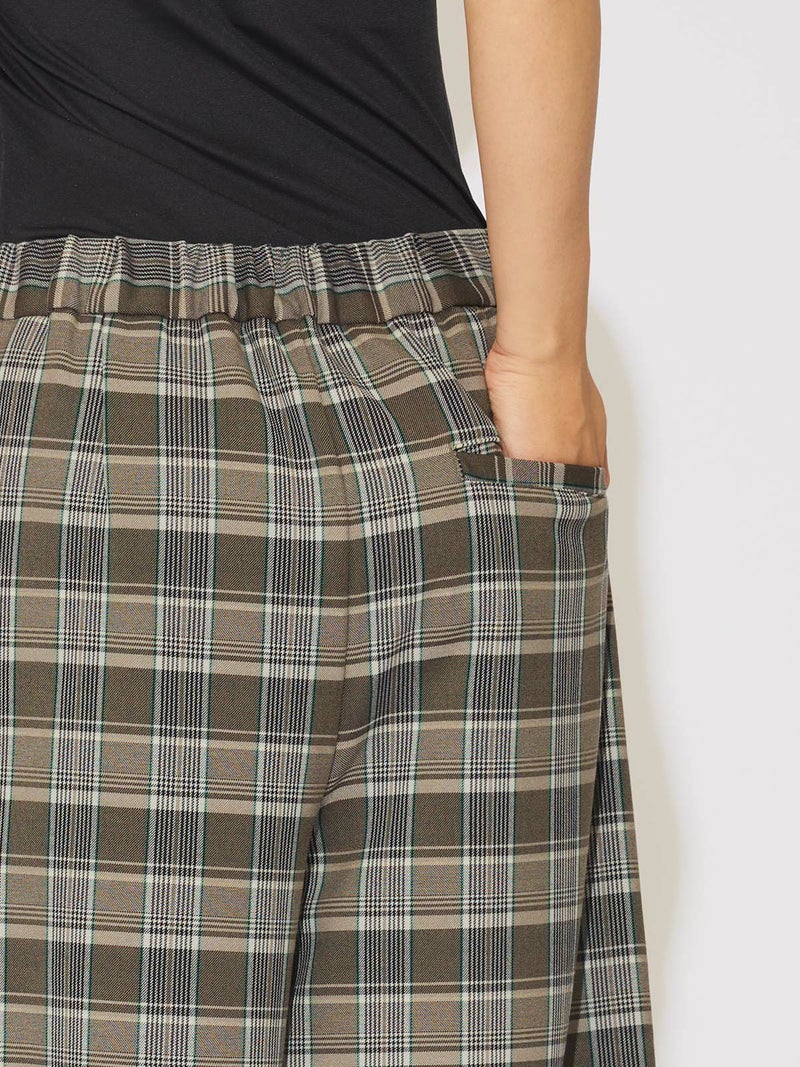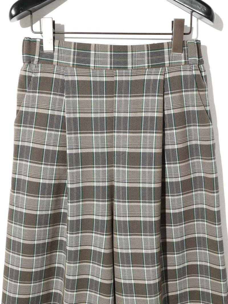 MIDIUMISOLIDの人気のパンツ(3-16215043)をチェック柄の生地を使用してデザインしたチェックストレートパンツです。カーキオンリーで展開した秋らしい1枚です。裏微起毛で暖かな生地感がポイント。インパクトのあるボリュームシルエットを表現。ウエストはシャツインにもおすすめでフロントフラットに、サイドからバックにかけてゴム使用に仕上げました。調整紐付きなのでウエストキープがしやすいデザインです。