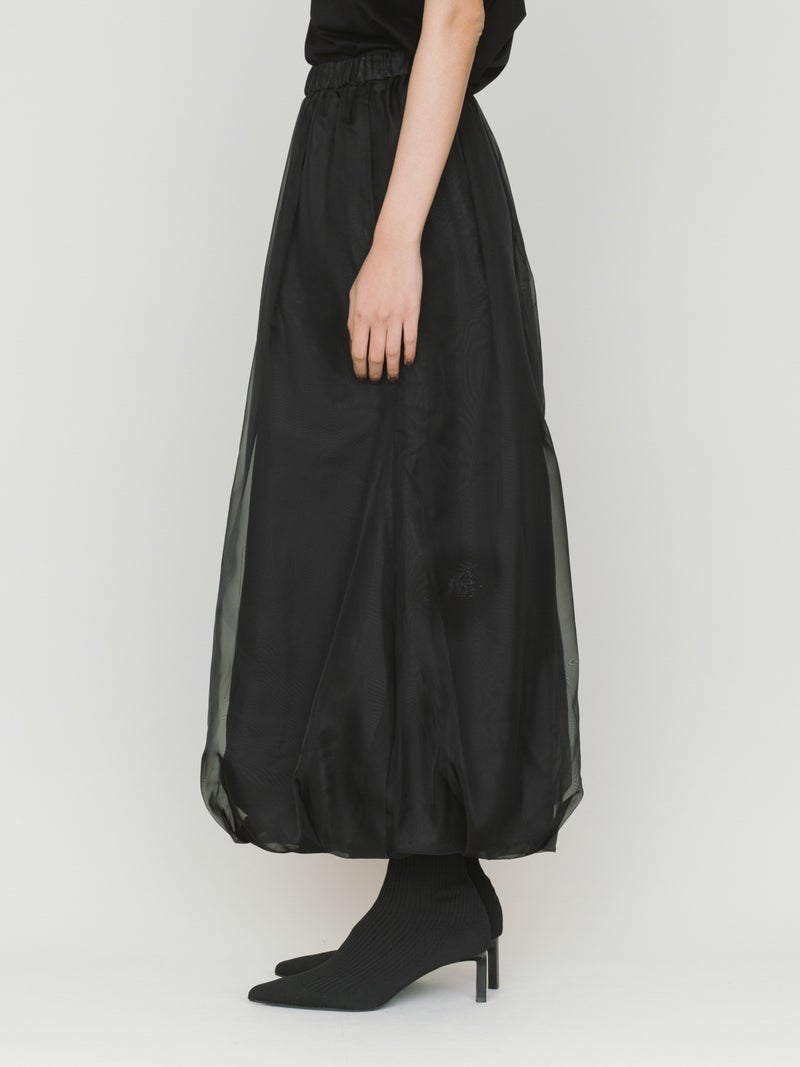 MIDIUMISOLID実績のあるバルーンスカートをベースにデザインしたシアーロングバルーンスカートが再入荷しました。今季は色展開を追加し、ピンクが新登場。マットな質感が特徴的で甘さを控えた上品な雰囲気も。優しくふんわり感のあるシフォンとオーガンジーを使用した大人のバルーンスカートを表現。ウエストはゴム使用に加え調整紐が付いています。オケージョン対応にもお勧めで、季節を選ばずロングシーズン着こなせるアイテムとなっています。