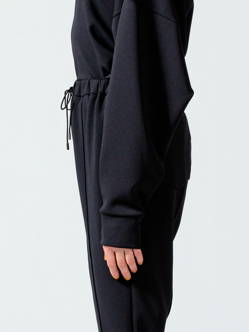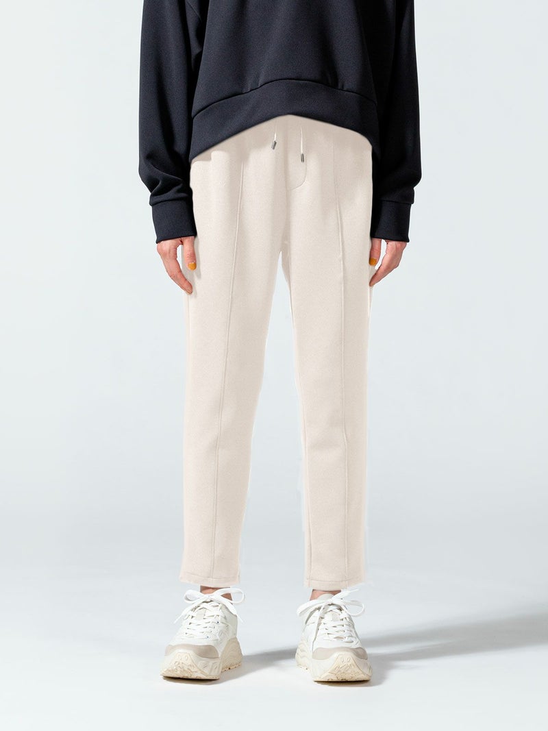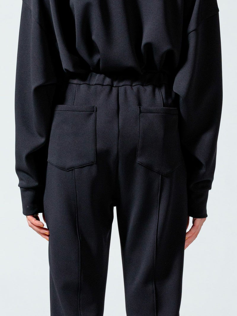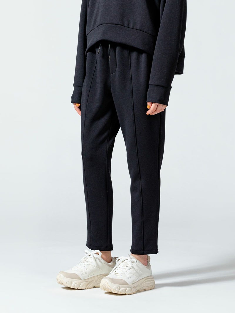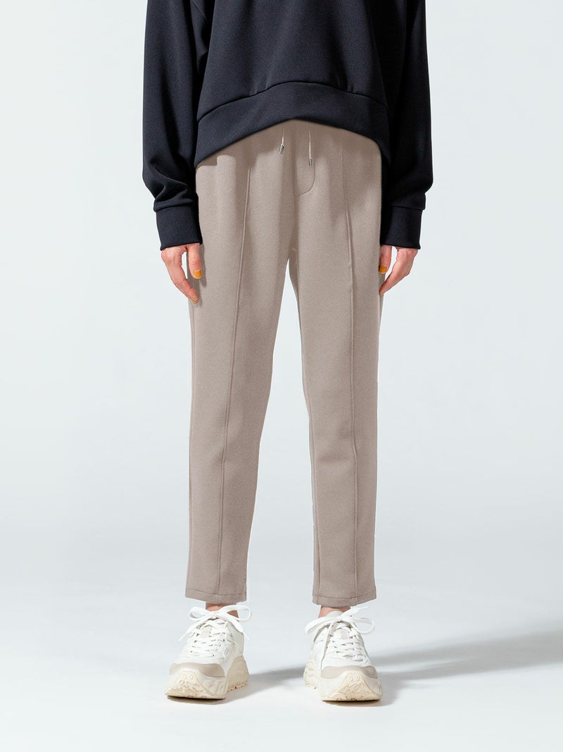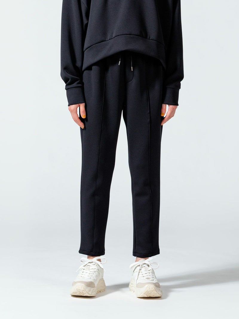 ストレッチ感と膨らみのあるダンボール素材を使用したセンターストレッチイージーパンツです。マットな質感とカラーでスポーティになり過ぎず、きれい目に着て頂ける大人のカジュアルアイテムです。厚みがありながら軽量でシワにもなりにくいのでケアしやすいのがポイントです。穿きやすいゴム使用のウエストは紐付で調整可能。センターにステッチを施した細身効果のあるデザインになっています。動きやすさ抜群なので自宅でのリラックスタイムにもお勧めなパンツアイテムです。