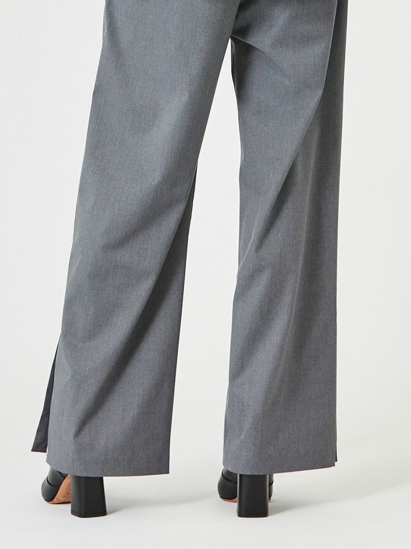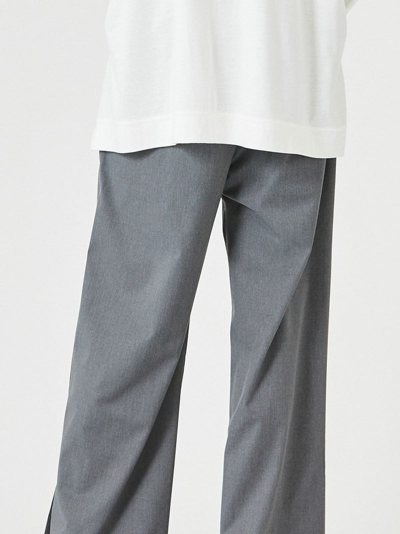 ピンタックのセンタープリーツパンツ。ストーレートのかっこいいシルエットで足長効果のある1枚。カジュアル感もある裾スリットを施したジップ付き。動きやすいストレッチのきいたパンツは、リラックス感のあるウエストのデザインに仕上げたことでよりらくに穿きやすさ抜群です。