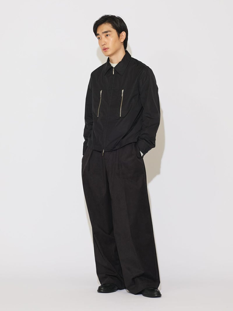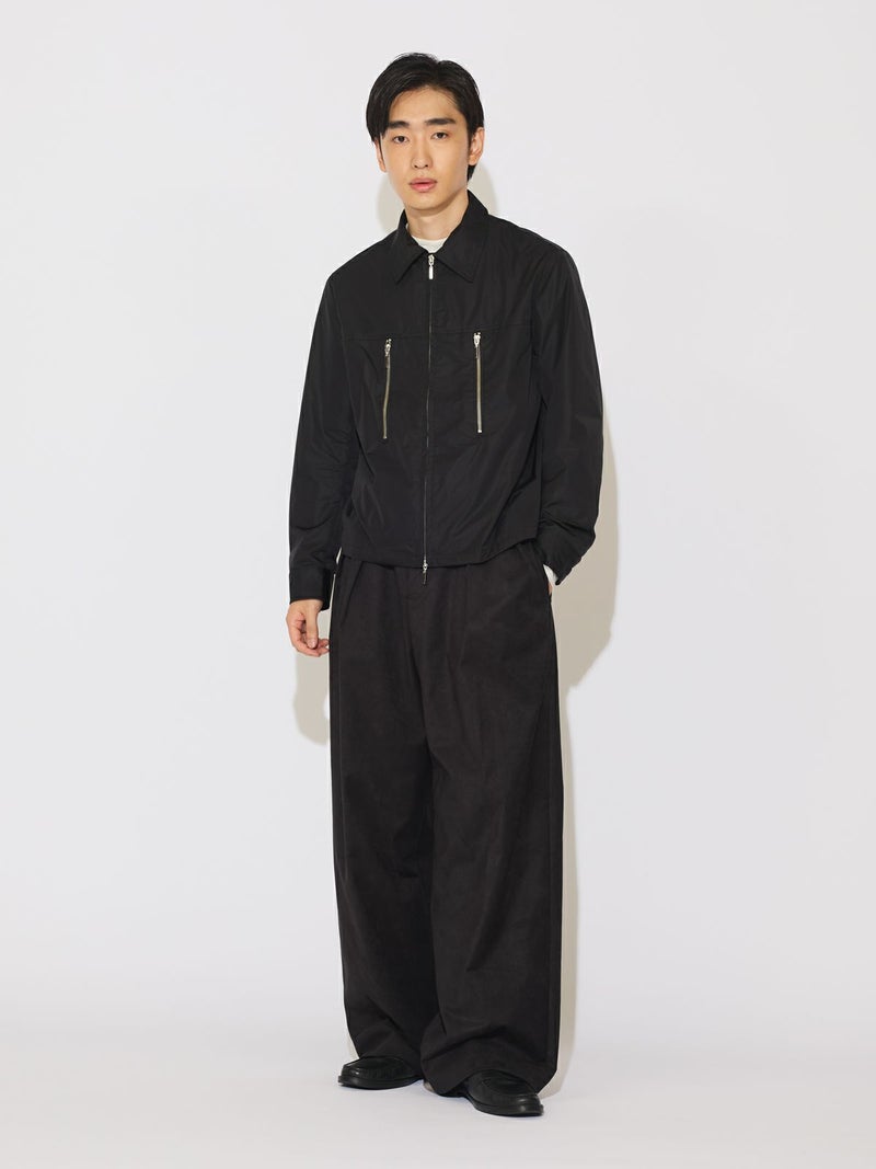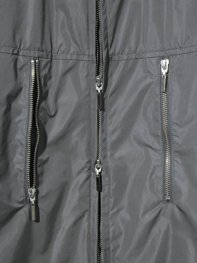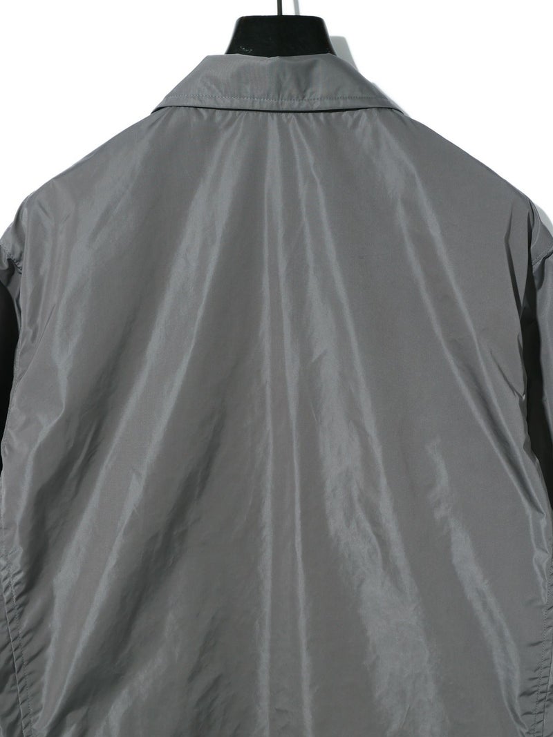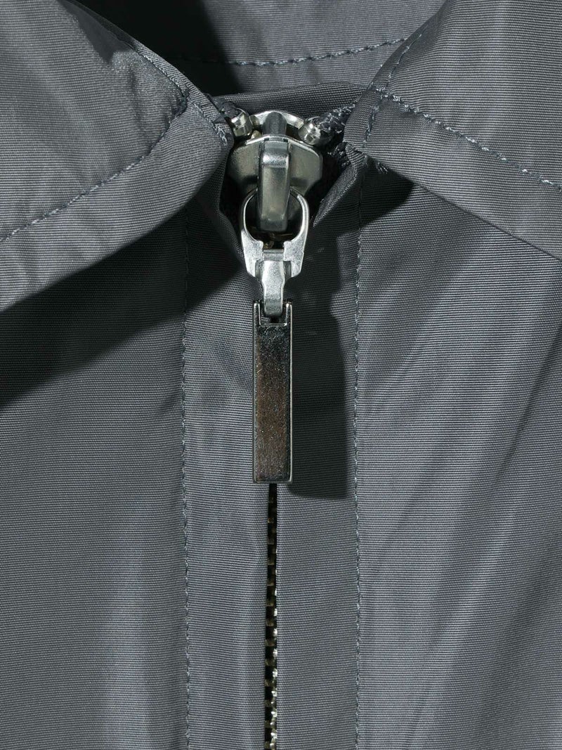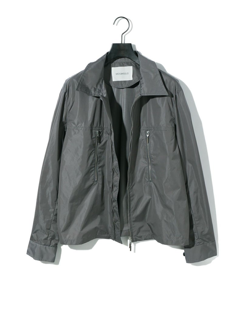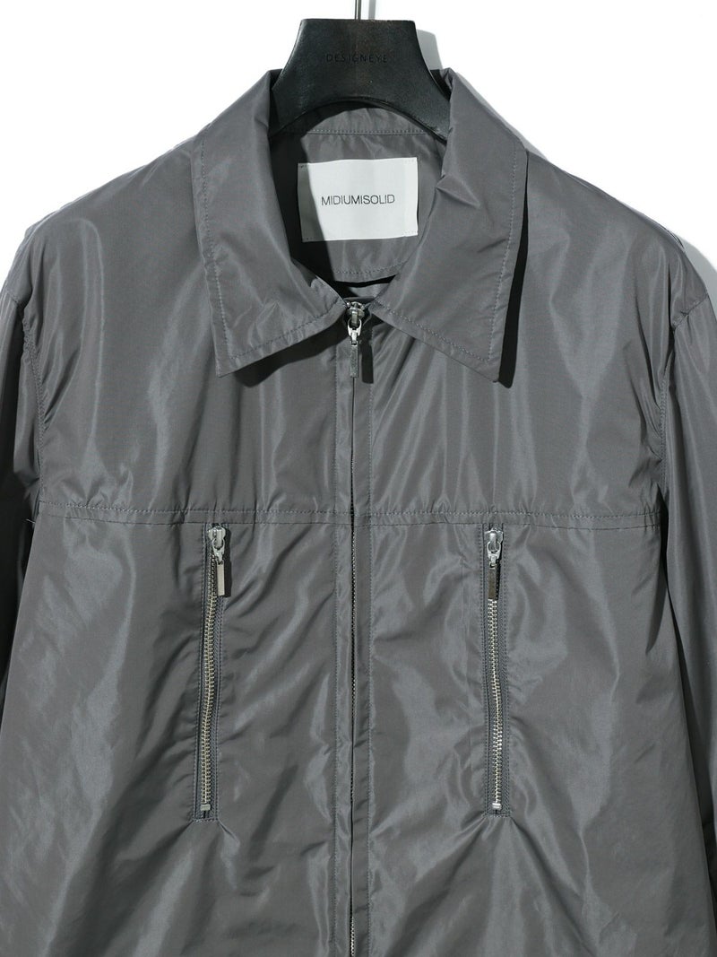 ハードなファスナーのデザインがポイントのナイロンシャツブルゾンです。合繊を使用した着やすい1枚となっています。冬はシャツとしても使えるコンパクトなシルエットを表現。軽さがあるので気軽に羽織っていただけ風通しのない1枚。グレーとブラックの着回しのしやすいシンプルなアウターです。