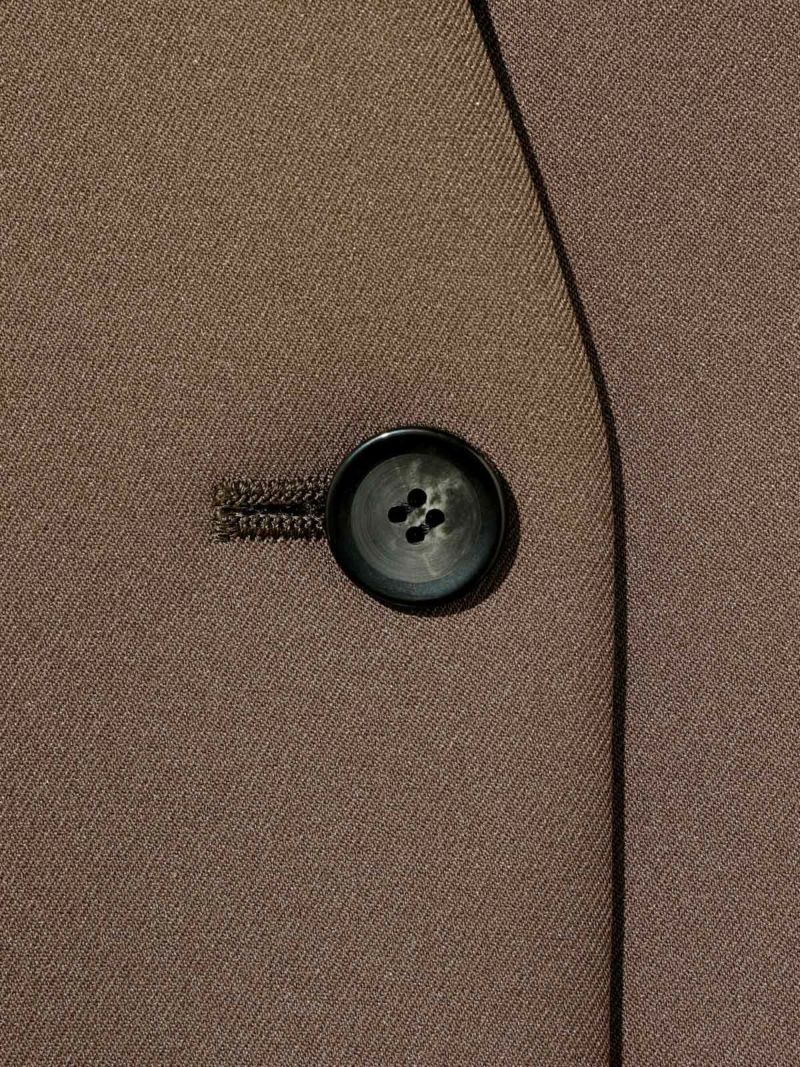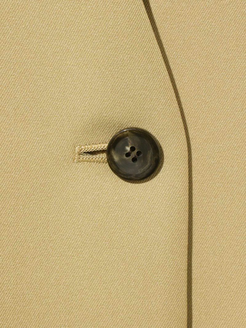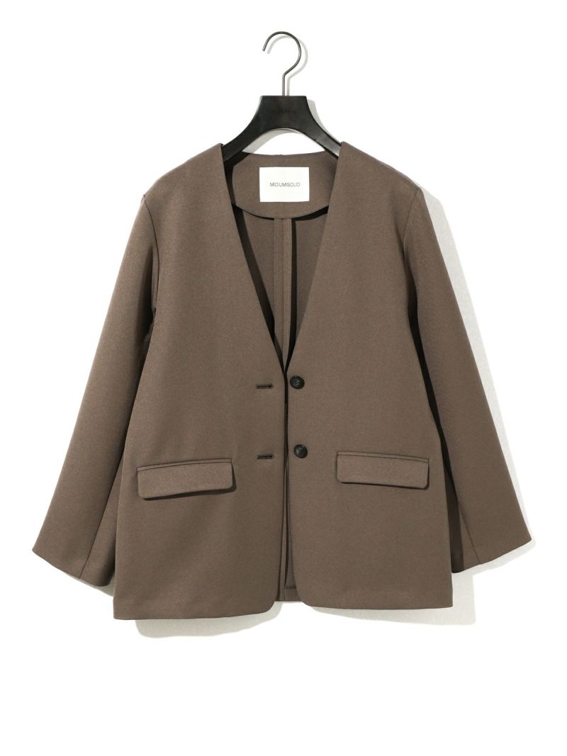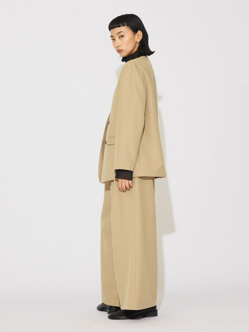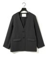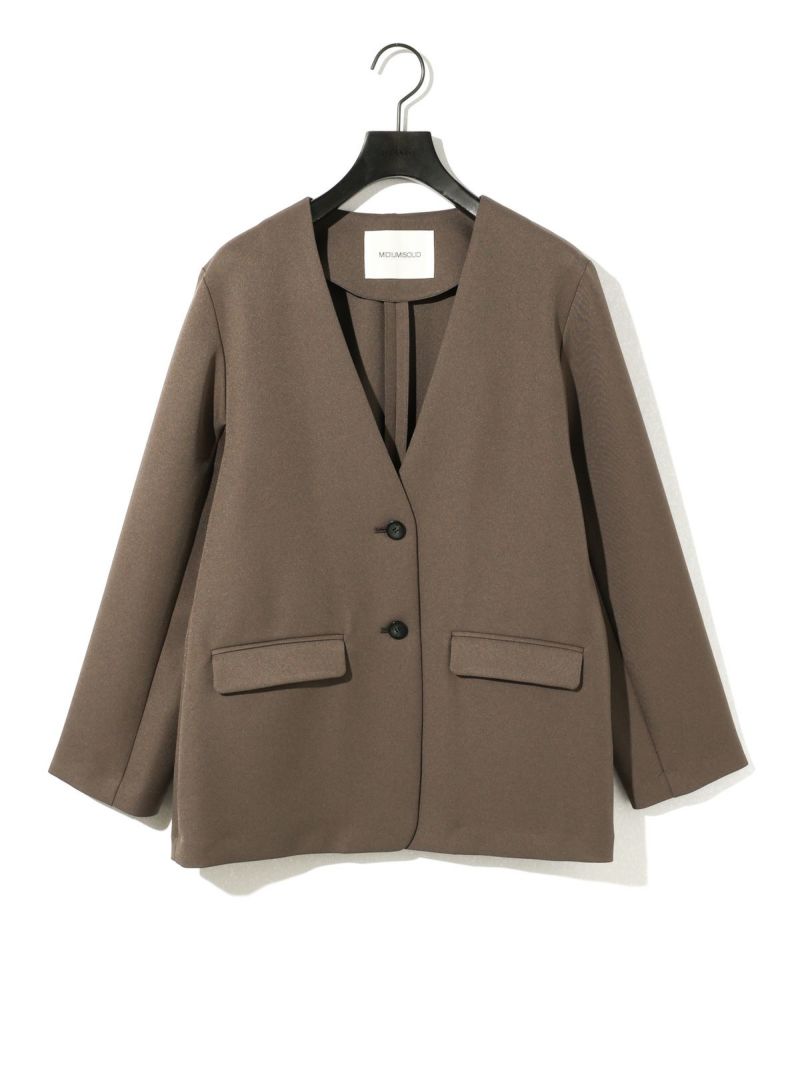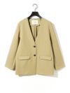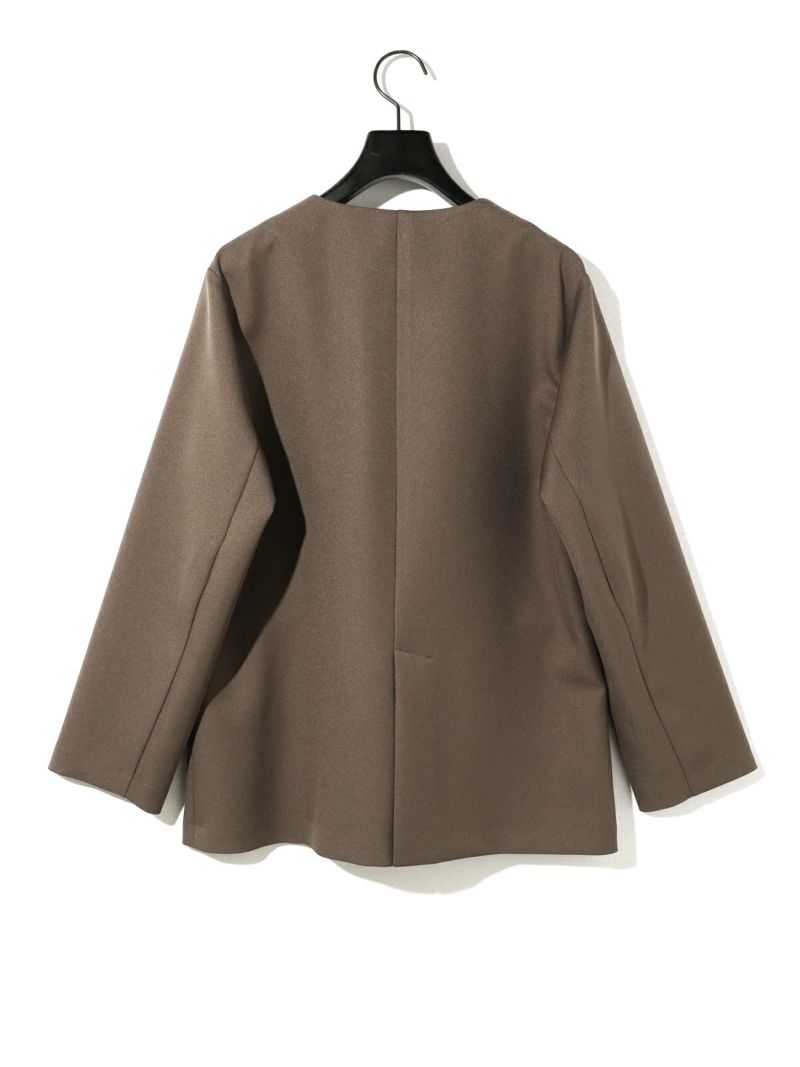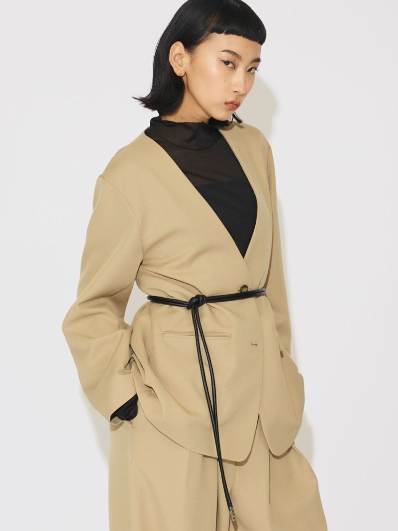 中肉ツイル素材を使用したベルト付ノーカラージャケットです。ツルッとした生地感は光沢があるので上品さも。ウエストを少しシェイプしたリラックス感のあるジャケットです。ノーカラーの深く開いたVネックの首元は重ねたインナーがすっきりと見えるのもポイント。合皮レザーベルト付なのでメリハリのあるスタイルチェンジが可能。同シリーズ3-162146/ハイウエストタックストレートパンツとのセットアップがお勧めです。