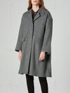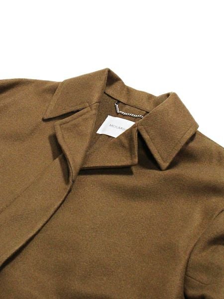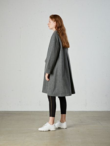 Aラインのテントラインのシルエットにデザインしました。 特徴的な襟の形状がポイントです。衿とポケットフラップ 裏がチェック柄になっています。背中のタックからの フレアが女性らしい印象が魅力のコートです。