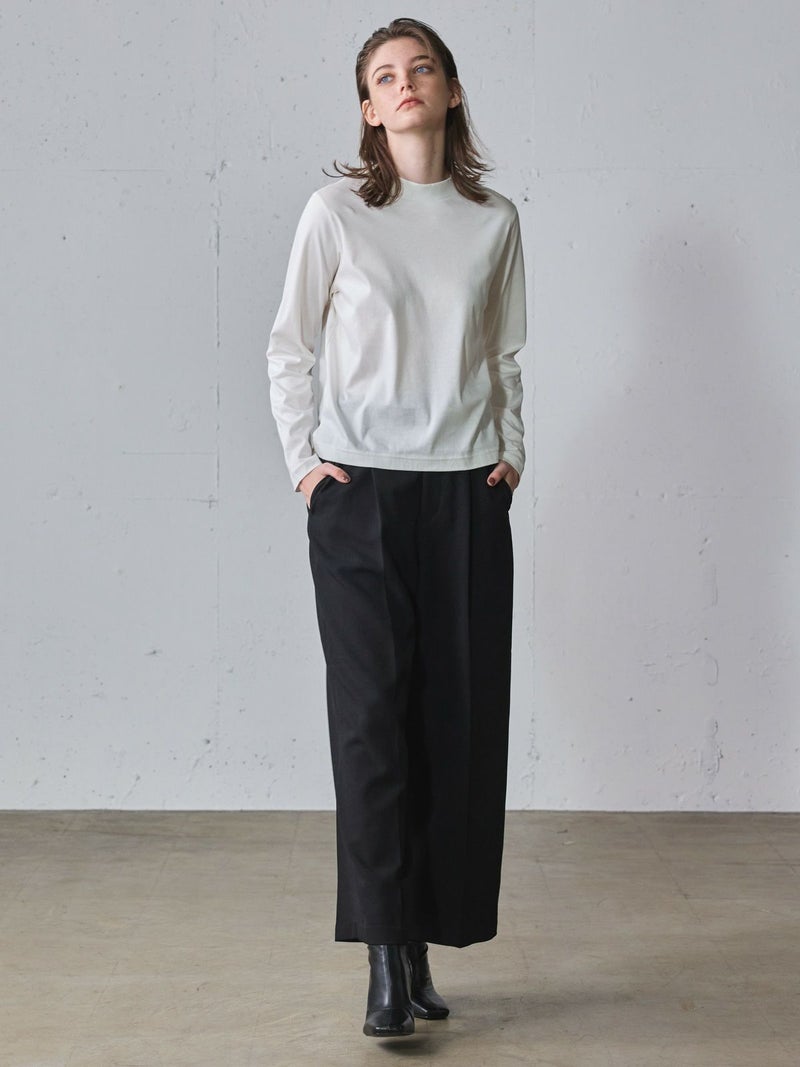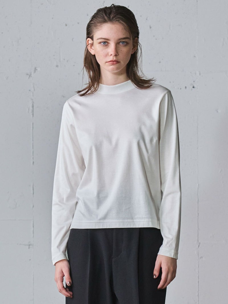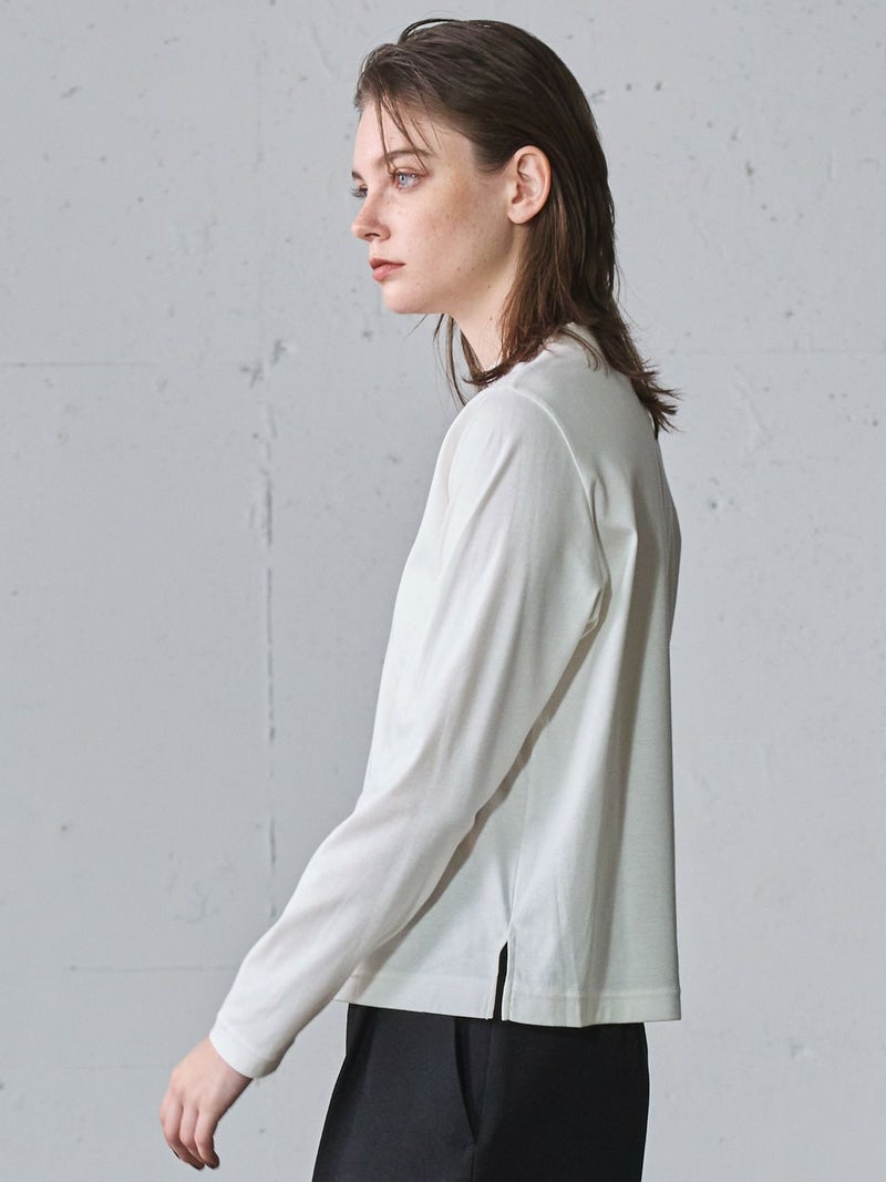 コットンの優しい着心地が特徴のコンパクトロングスリーブTです。コンパクトなサイズ感と首に沿うクルーネックは風通しもなくインナー使いにお勧め。長めの袖丈で手首まで暖かく着用できるデザインです。シャツやニットなどこれからの寒い季節のレイヤードに重宝できる1枚です。