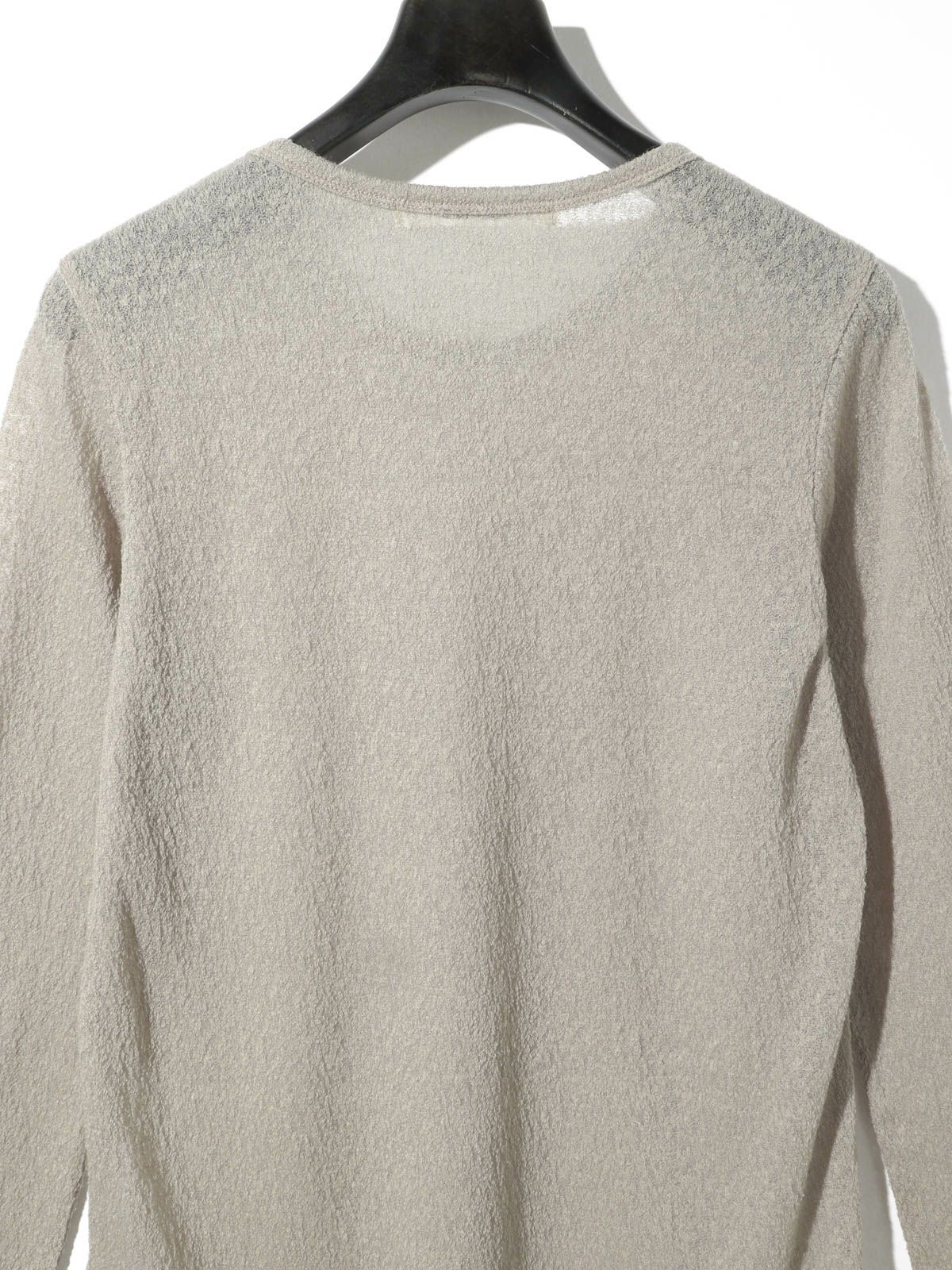 メリノウール混素材を使用したウールシアープルオーバーです。チクチクしないインナーとして着用していただけるカットソーです。クルーネックのシンプルなシルエットが特徴。ジャカード生地で雰囲気がありすっきりとした着こなしを演出します。透け感がありますが温かみがあるので寒い時期でも人気のシアーを取り入れやすい1枚です。