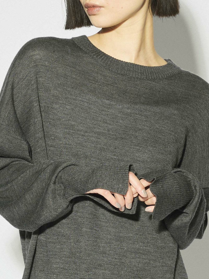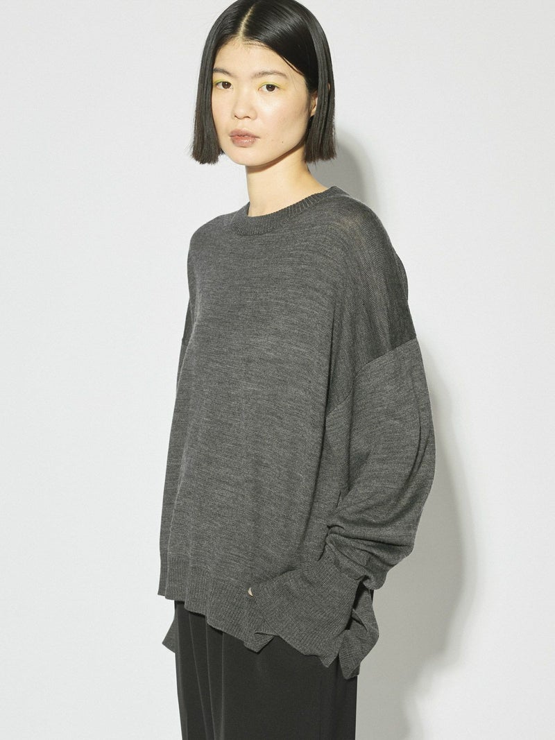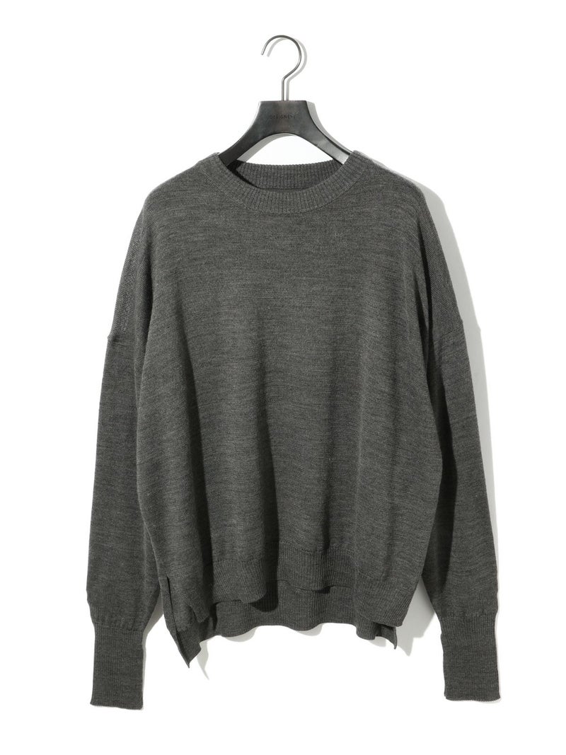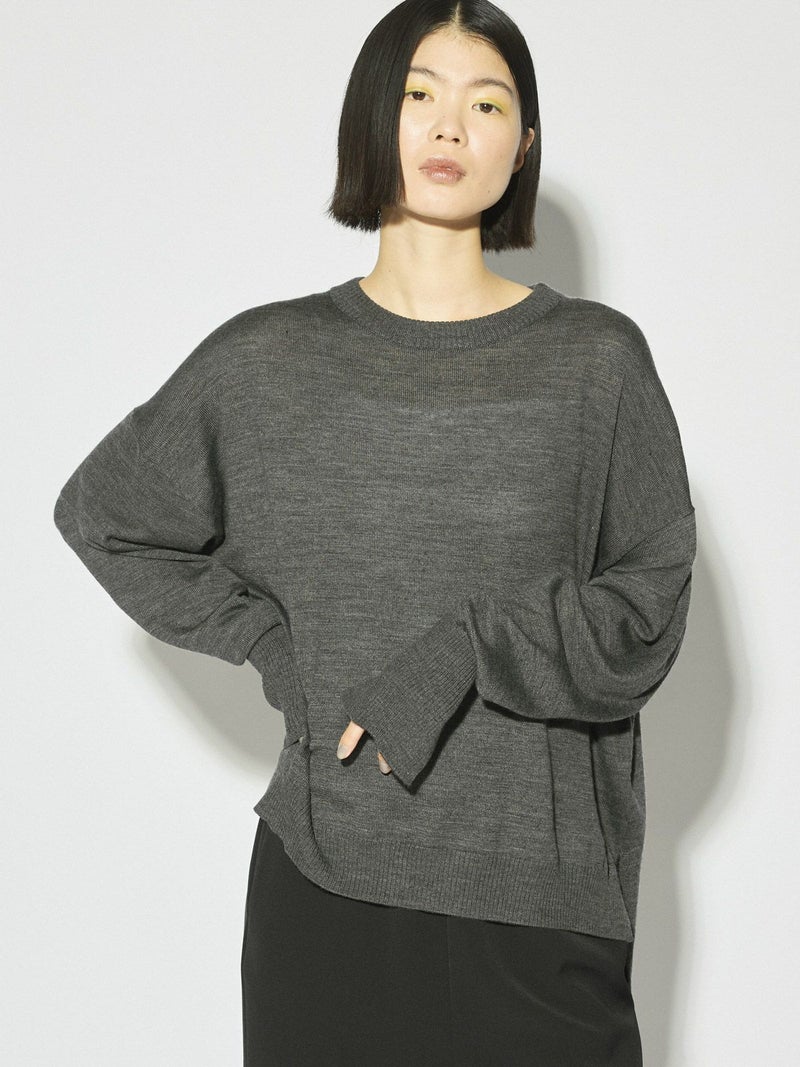 シンプルにコーディネートができるベーシックニットプルオーバーが今季も再入荷しました。クルーネックの薄手のニット生地で大変着回しの幅が広いスリットスリーブベーシックプルオーバーです。前後差をつけサイドスリットを施した自然な動きを表現しました。清楚にまとまりのあるコーディネートができる1枚です。袖口は長めのリブ使いでスリット仕立てなので折り曲げて短め丈にも可能。手の甲まで隠れても指先を動かしやすいのもポイントです。