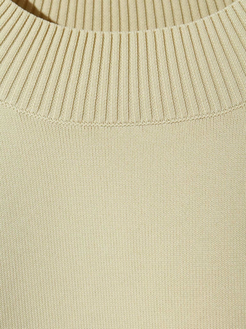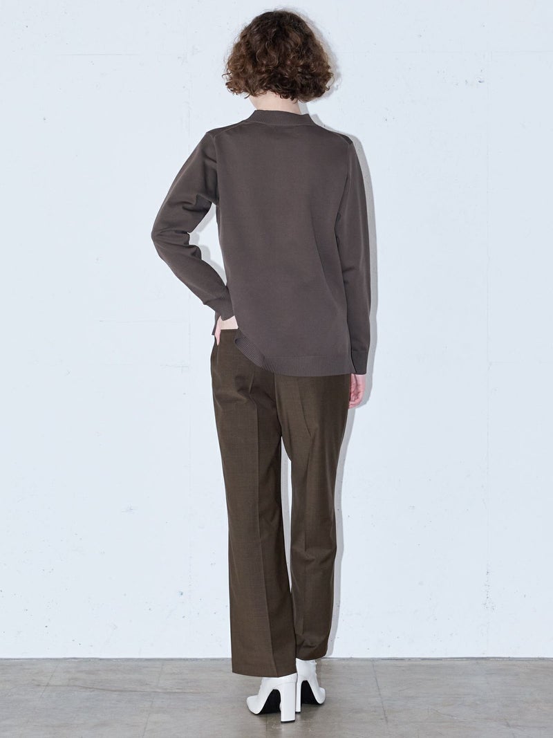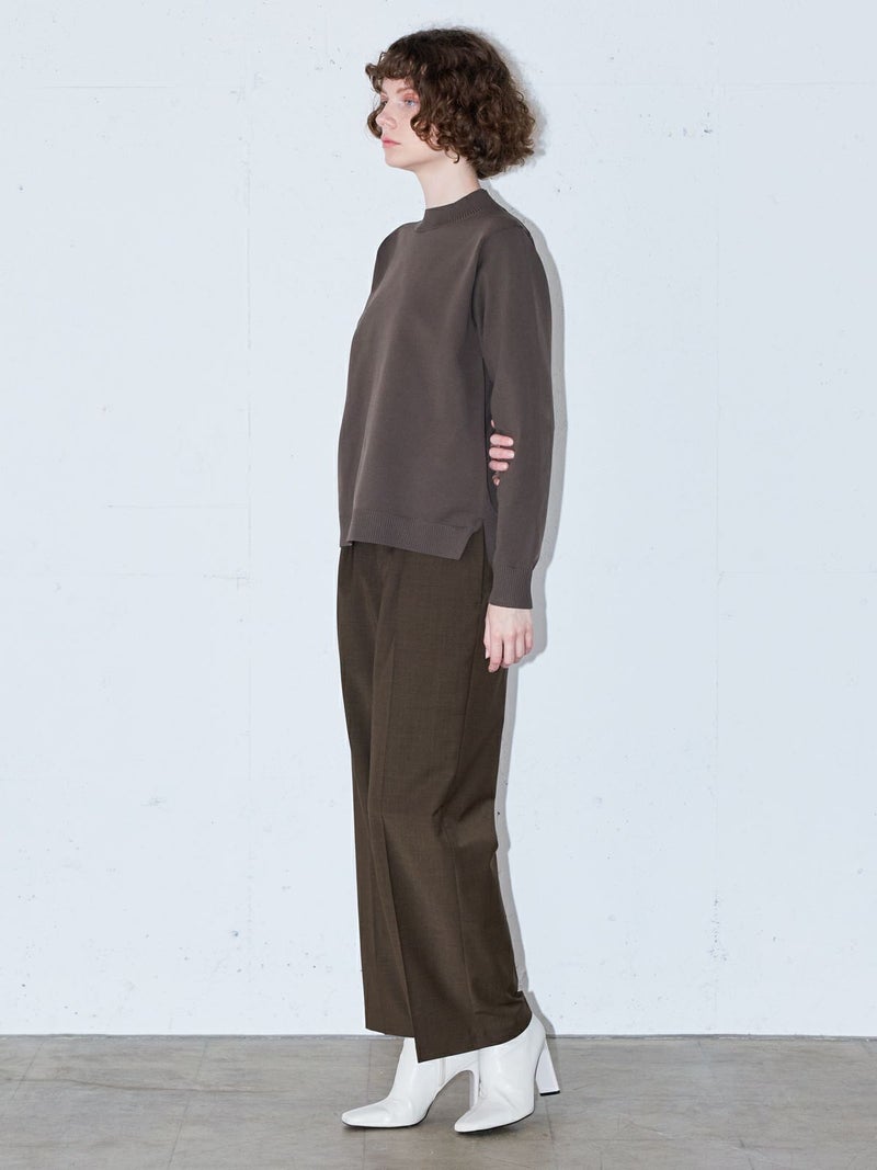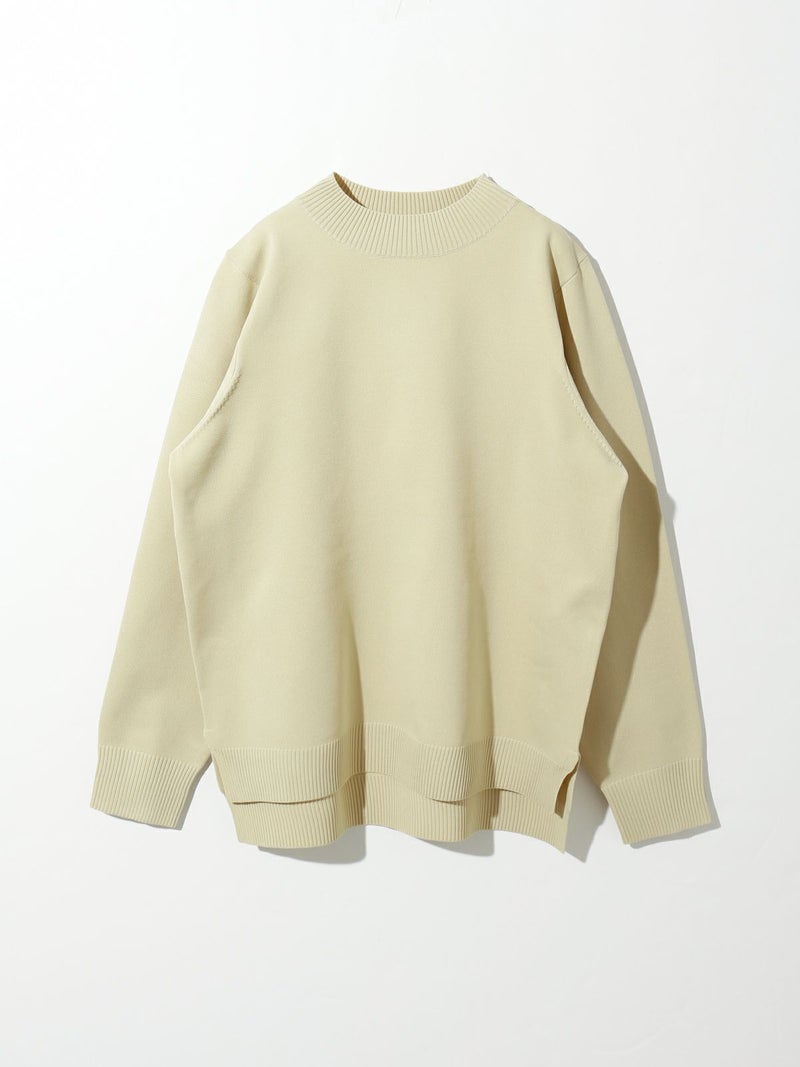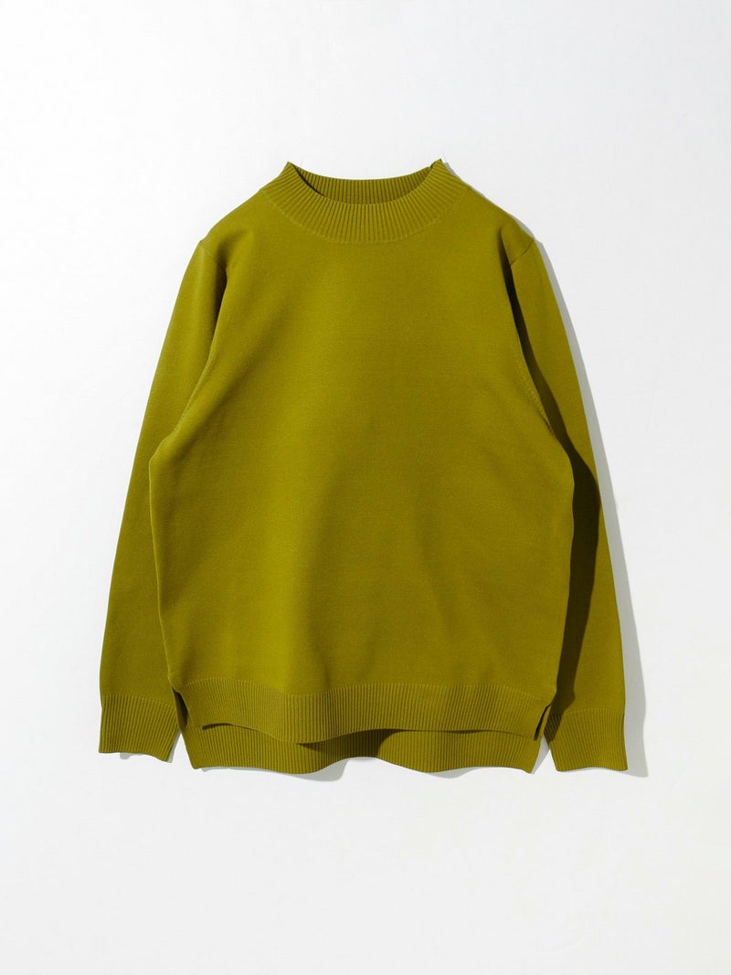 14Gのポリエステルニットを使用したモックネックプルオーバーです。立体的に感じ取れるハリのある素材感でニットが苦手な方でも着心地の良さを体感していただけます。前後差を付けたスタンダードなシルエットでサイドスリットを施したヒップの隠れるスッキリとしたサイズ感が特長。シンプルで着回しがきき、カジュアル過ぎずベーシックにコーディネートができる1枚。お洗濯にも強くシルエットをキープできるので長く愛用していただけます。