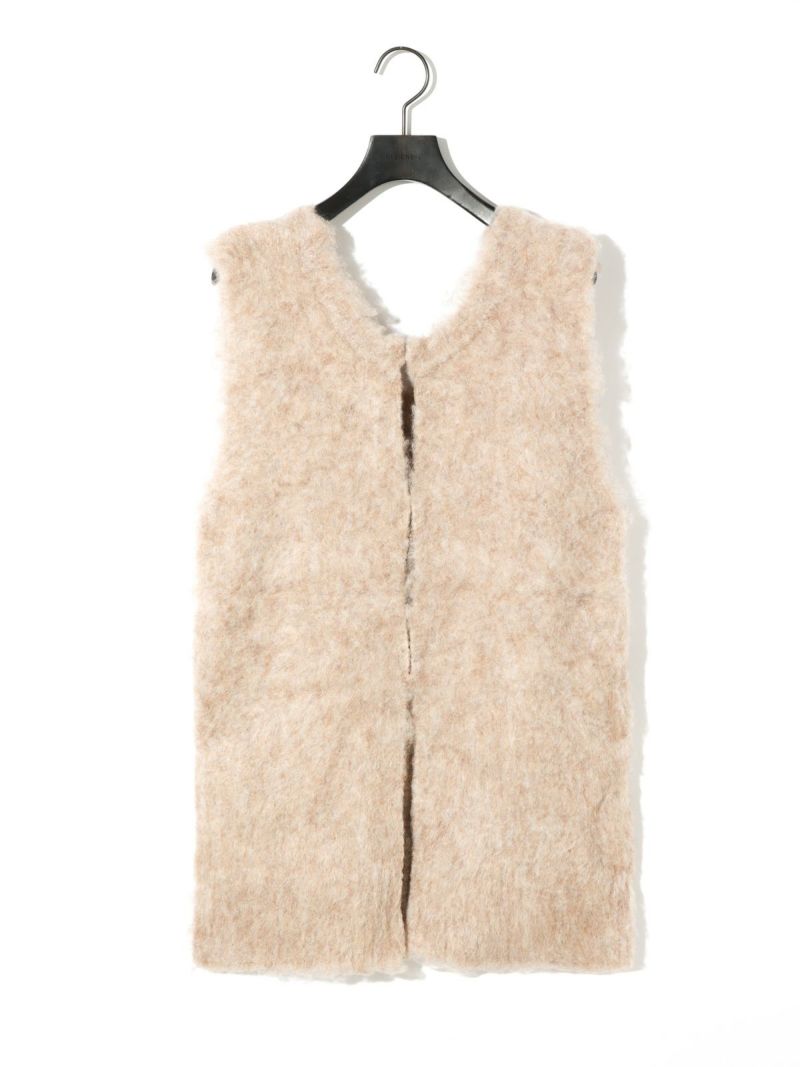 前後逆にしてもどちらでも着用できる起毛ニットVネックベストです。羽織としてもプルオーバーとしても着用可能。脇もしっかり開いているのでレイヤードスタイルもしっかり対応できる1枚です。ふわふわとした温かな見た目と優しい色合いが魅力的。色々なアイテムに重ね着ができるベストアイテムです。