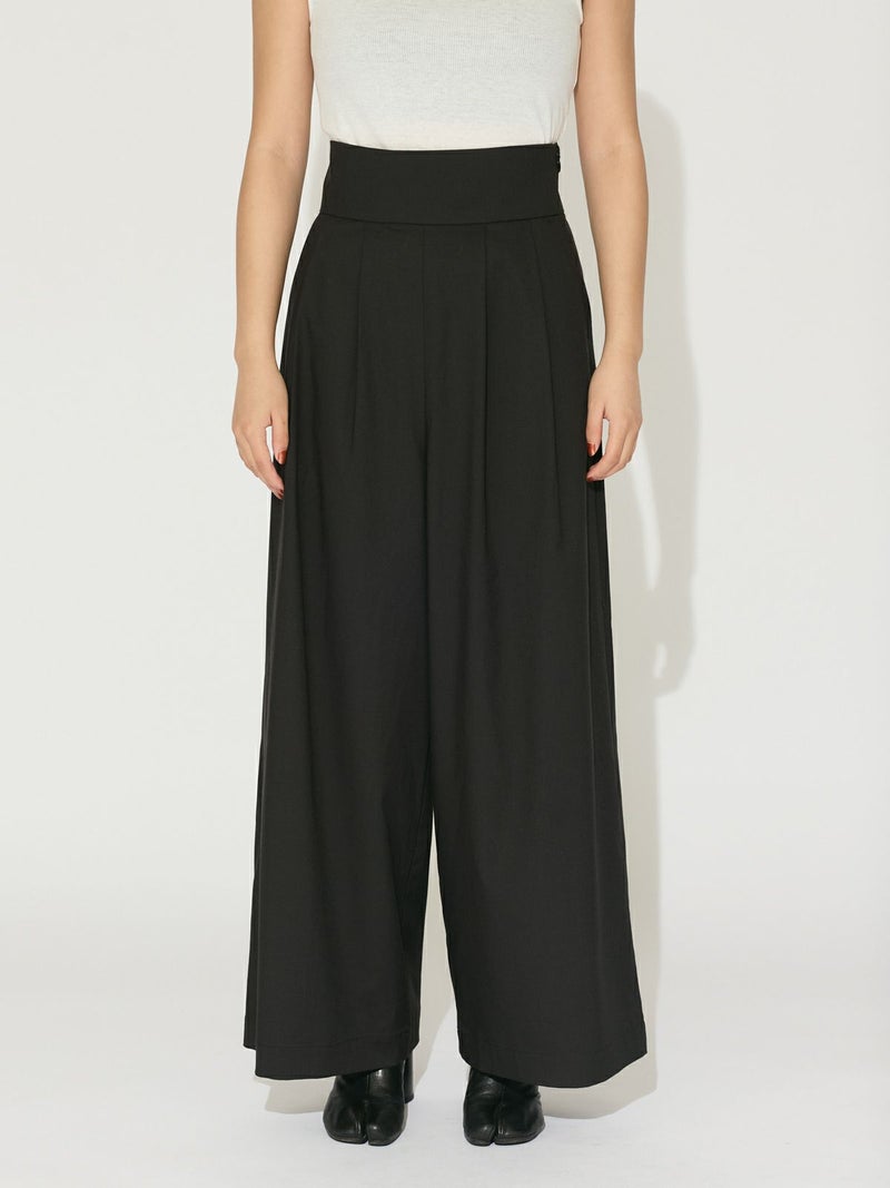 TRツイル素材を使用したハイウエストワイドパンツです。クリアな表面、上質な素材、程よい厚みでオールシーズン着用可能。ハイウエストのデザインですっきりとした腰回しが特徴。ワイドに広がる上品なシルエットが魅力のワイドパンツです。ウォッシャブル対応、ストレッチがきいて穿きやすい1枚です。4-152137/バックスリットオーバーフレアワンピースも展開。